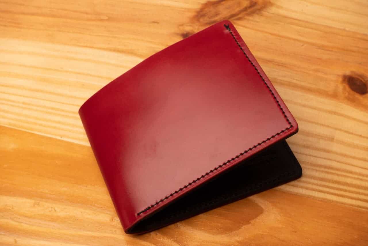 This is a special bifold wallet, with the outer layer made of Red shell cordovan leather from the Shinki Hikaku tannery in Japan.