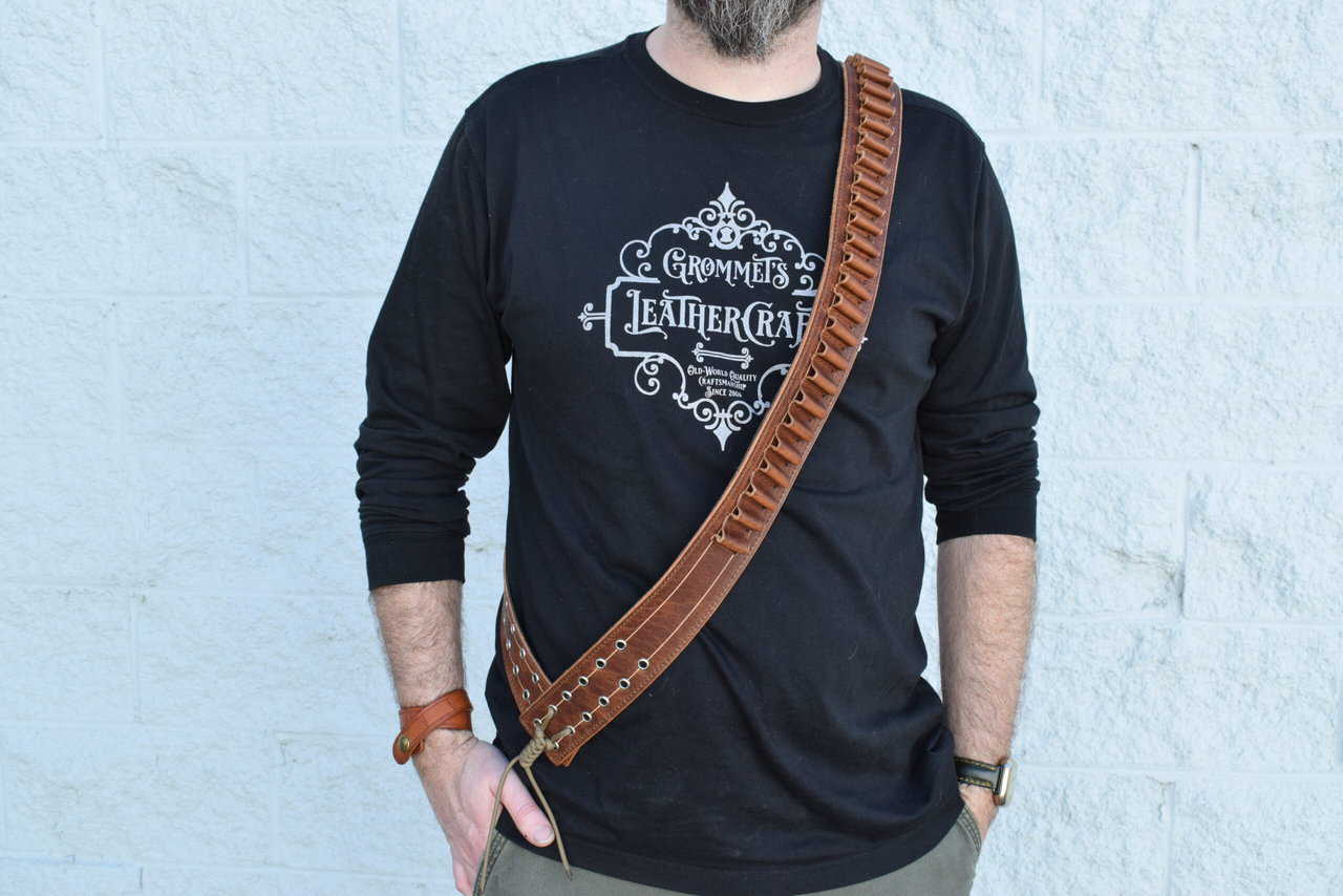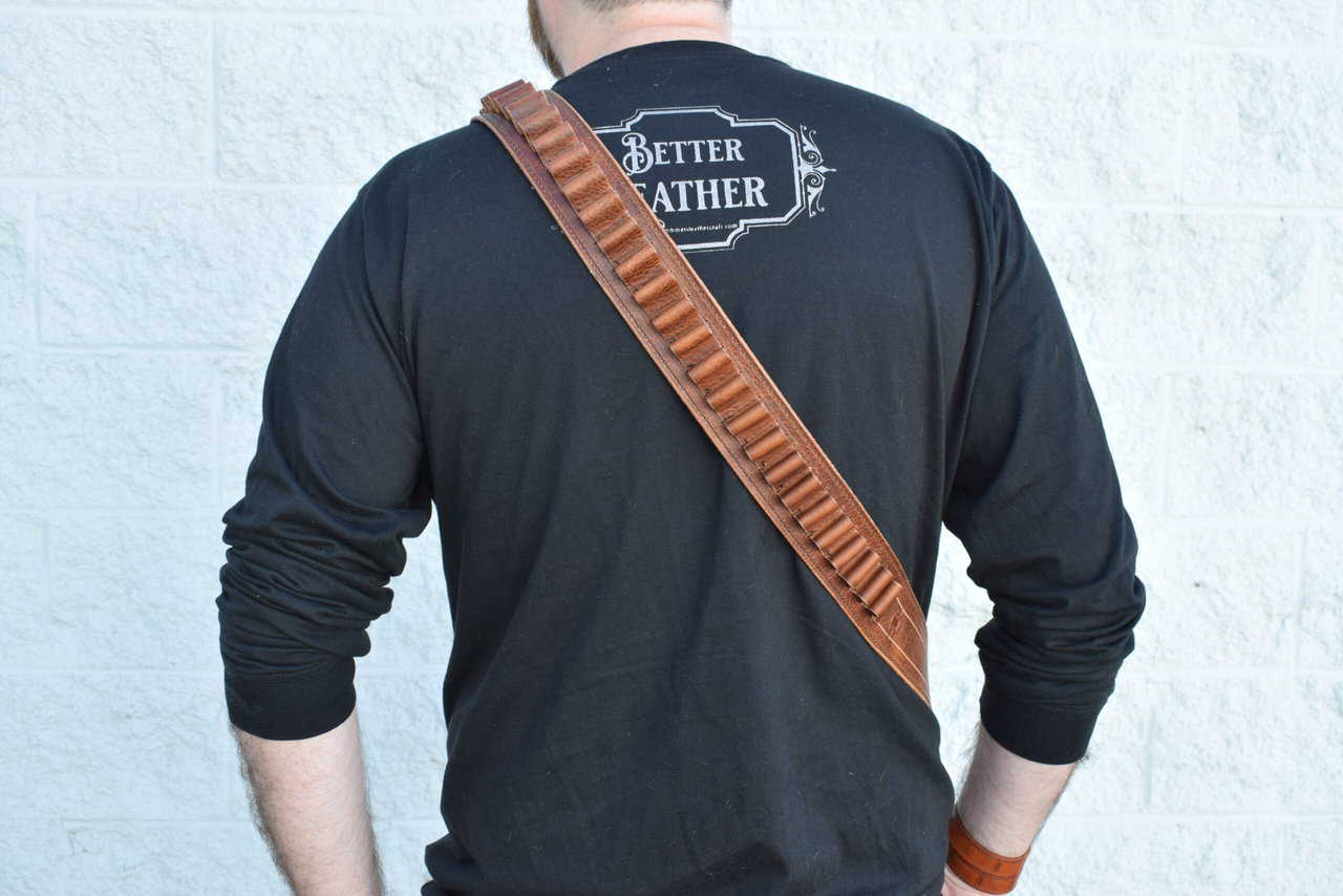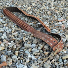 Most bandoliers will have loops for 50-75 rounds, depending on the size of the round. If you would like more or fewer on yours, or if you would like yours made for a round that isn’t listed feel free to contact me.