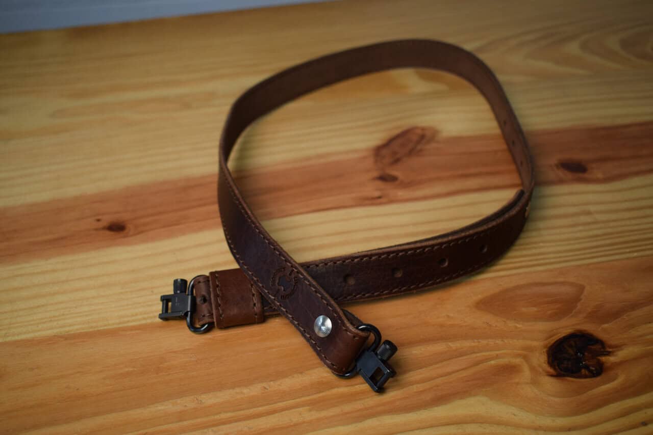 Functionally identical to our simple sling, but made out of 4-5 ounce bison leather and lined in suede