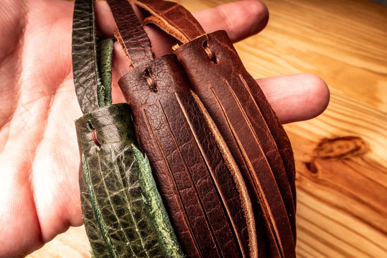 These are simple leather tassels made out of the same bison leather that we use to make our bags and other items.