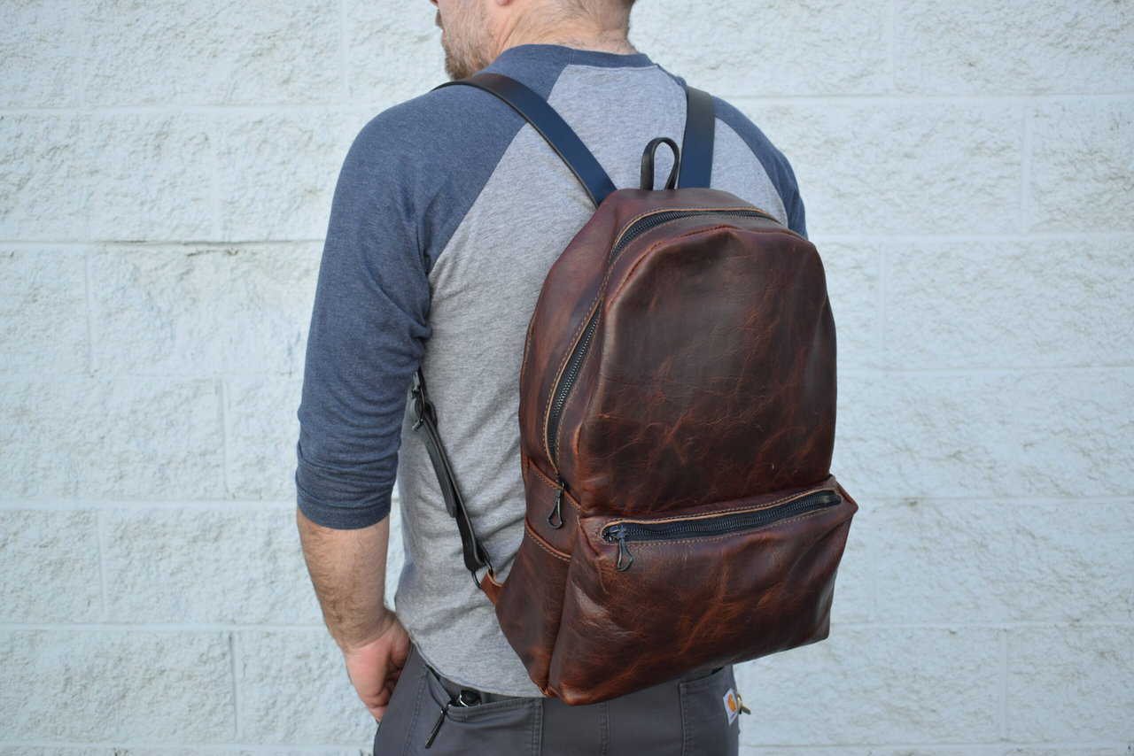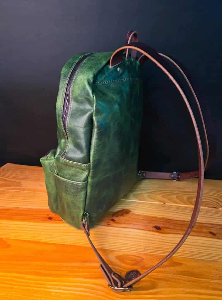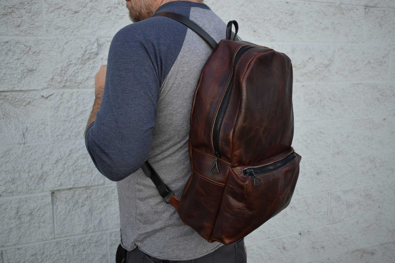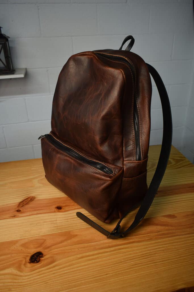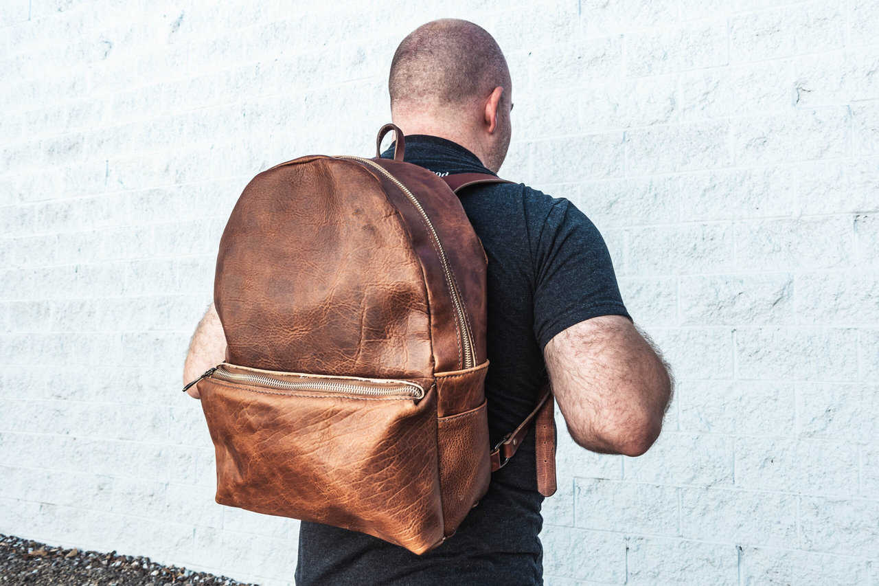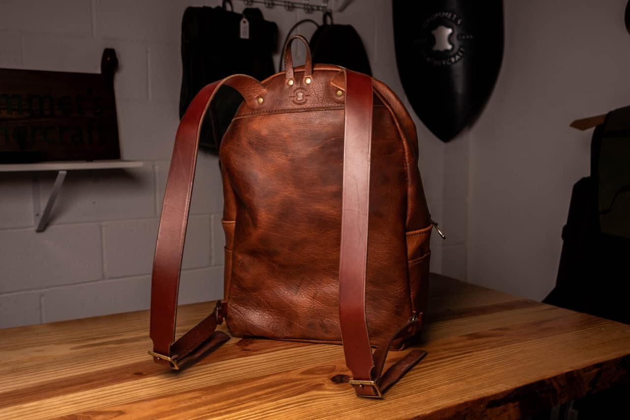 Each backpack is made out of 4-5 oz bison leather with 8-10 oz latigo cowhide straps.