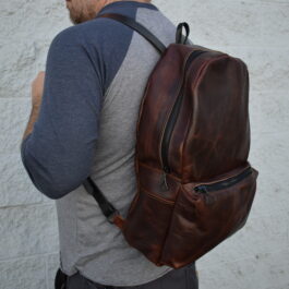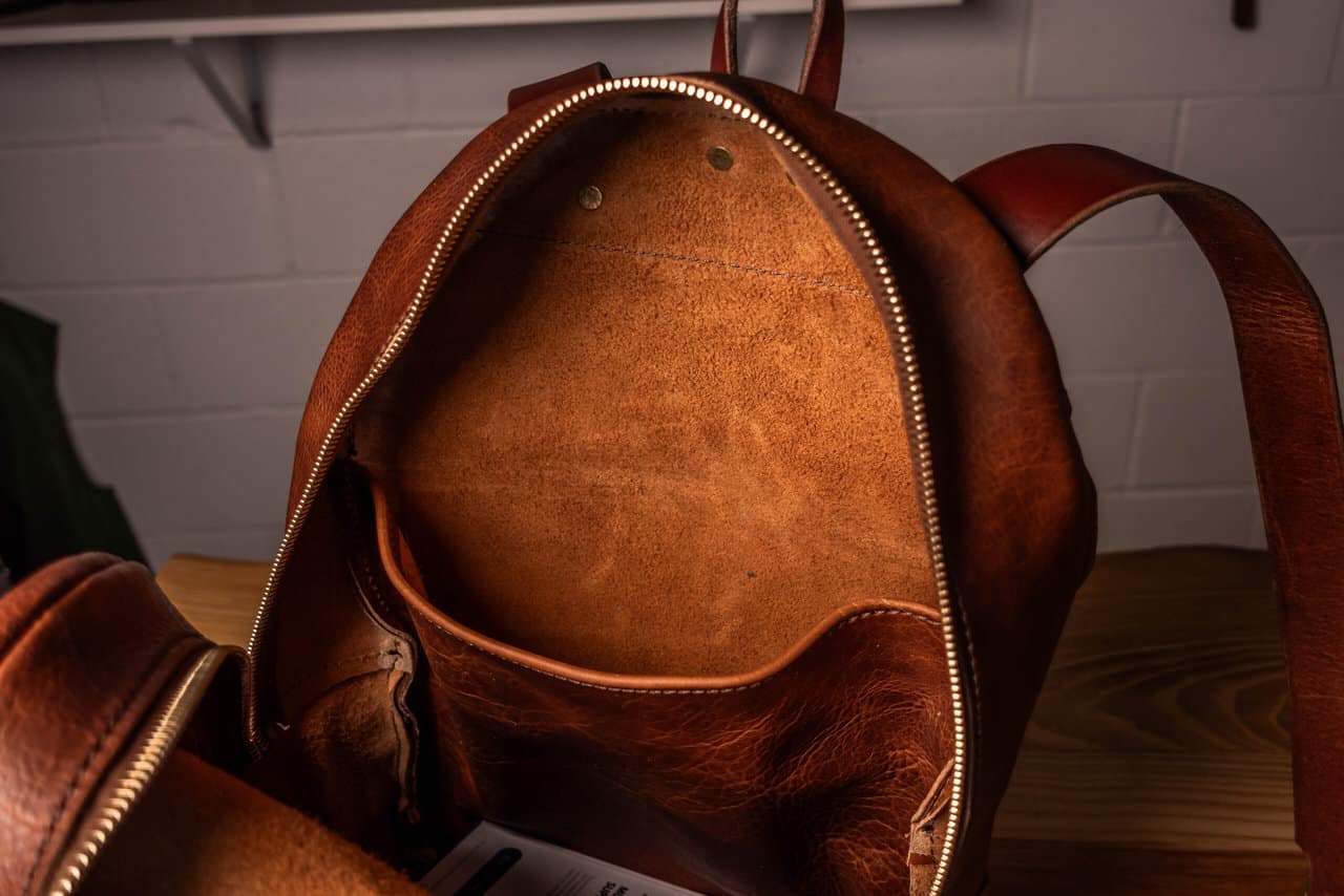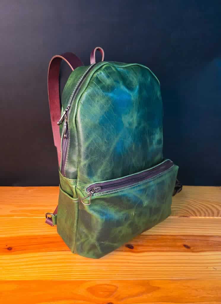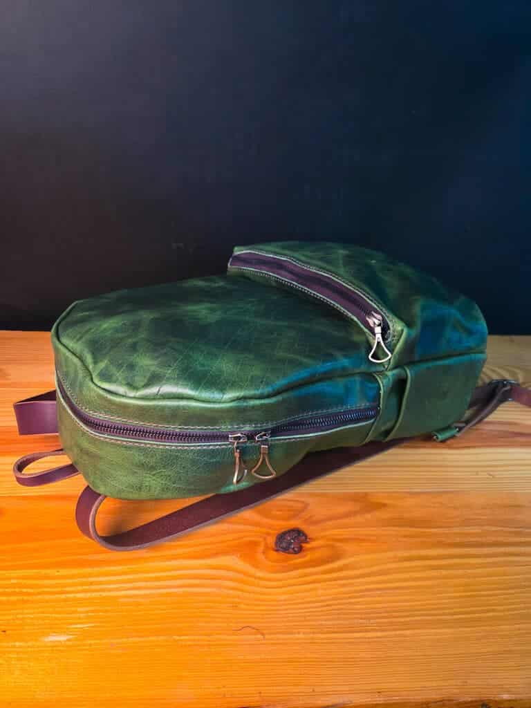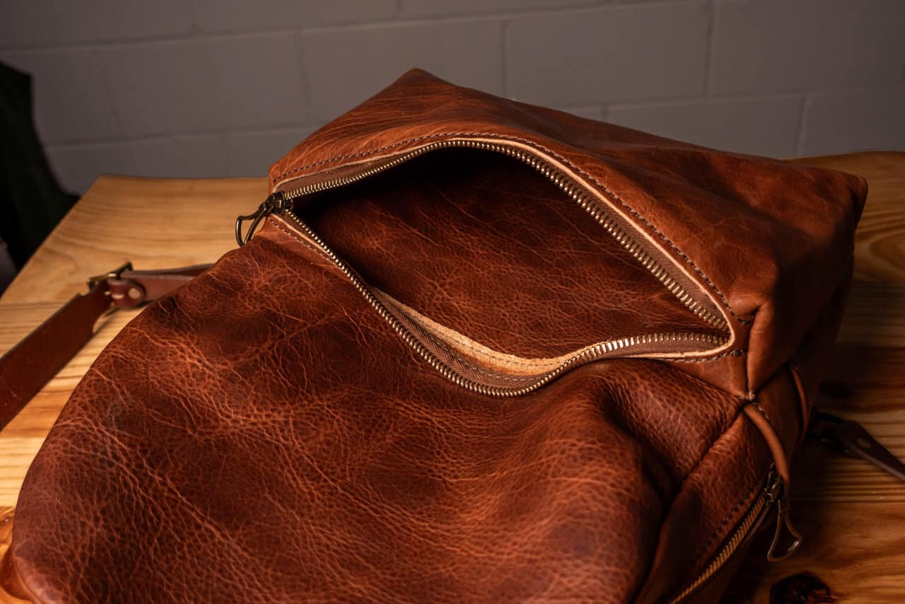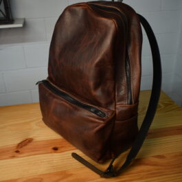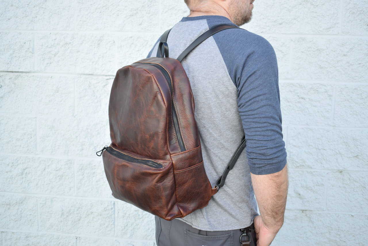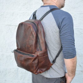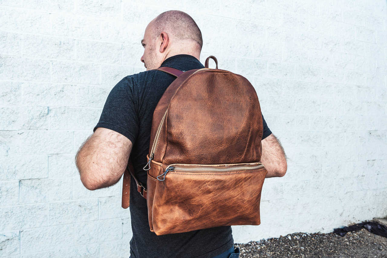 Each backpack is made out of 4-5 oz bison leather with 8-10 oz latigo cowhide straps.