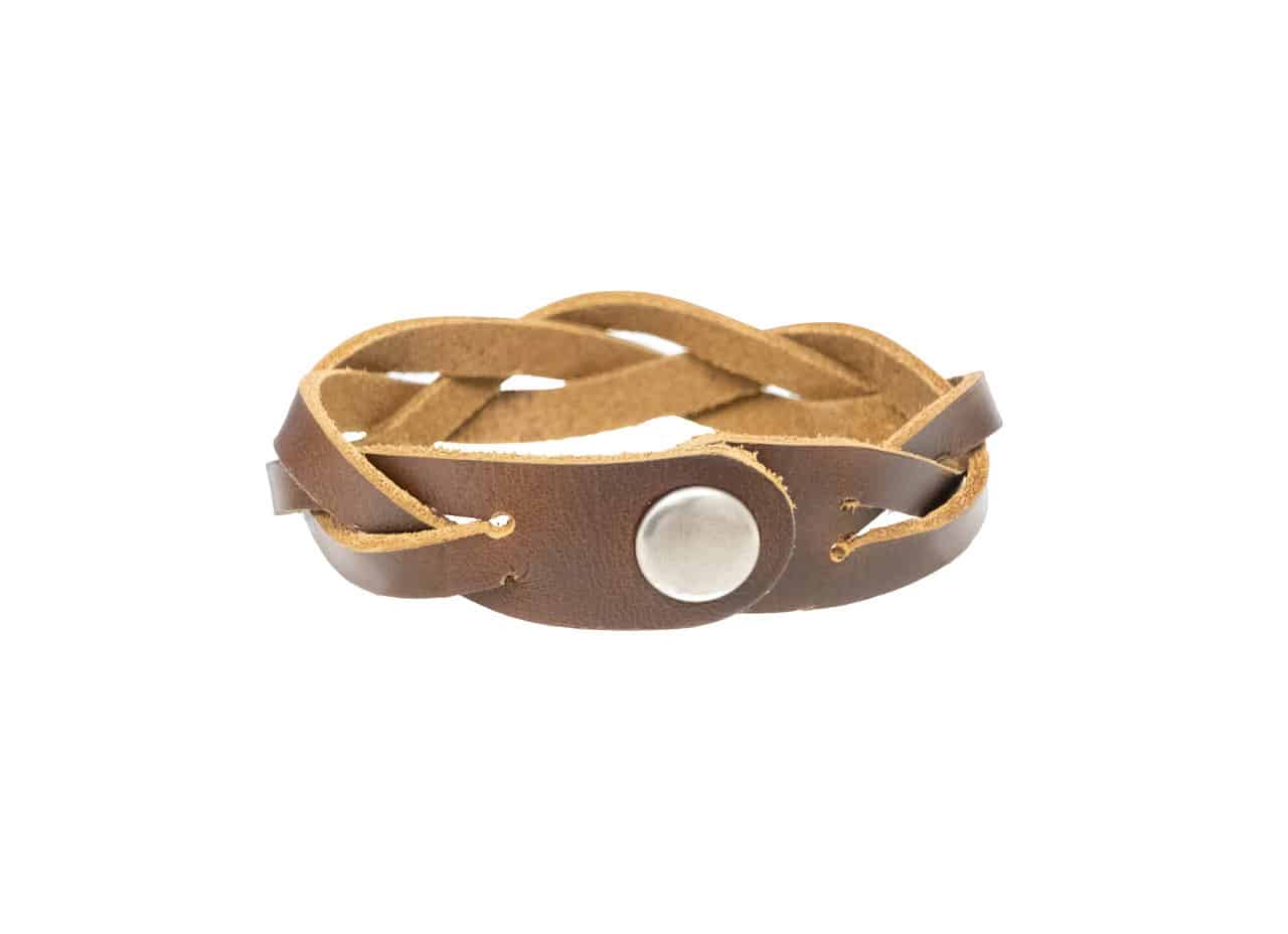 These are simple leather bracelets that are braided in 3 strands in the middle.
