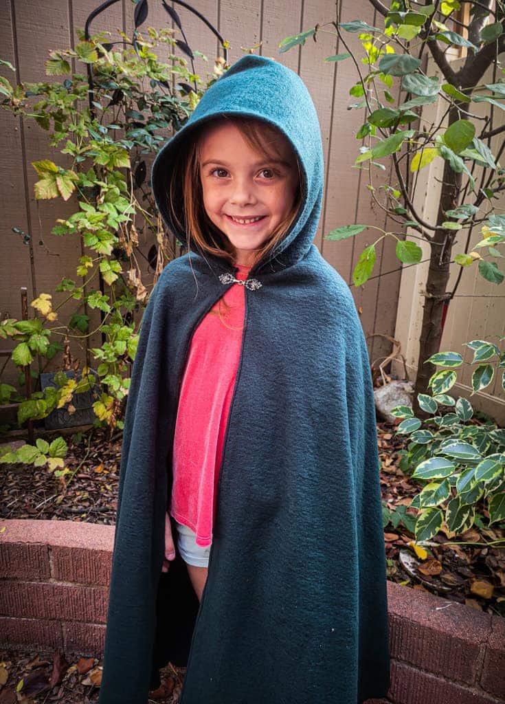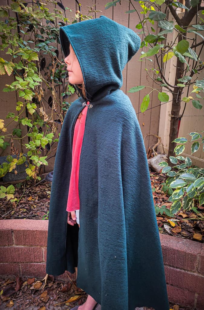 For the cloak length, use a ruler or measuring tape to measure from the shoulder to where you’d like the bottom of the cloak to fall. We find that mid calf or just below the knee if the optimal spot for the bottom to fall, but it is entirely up to you.