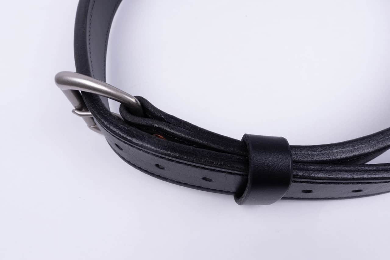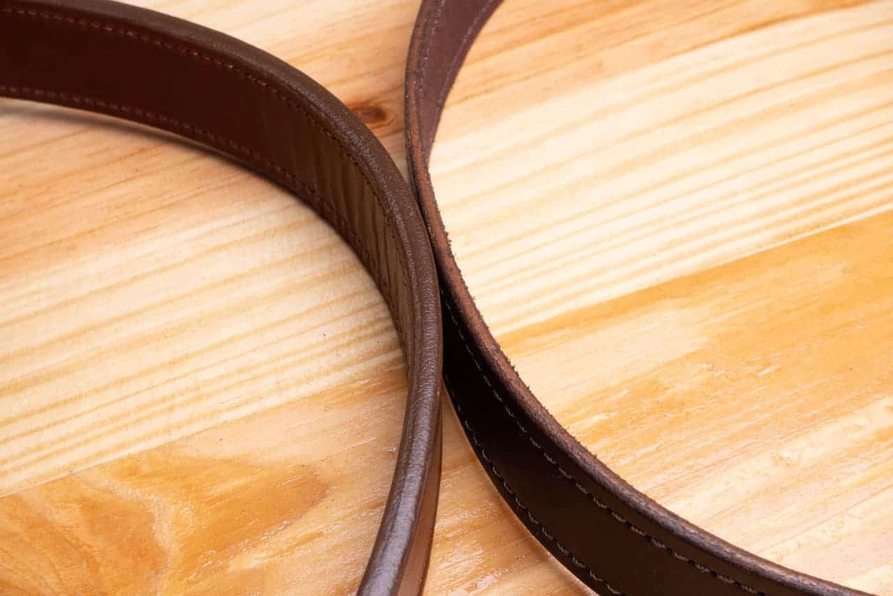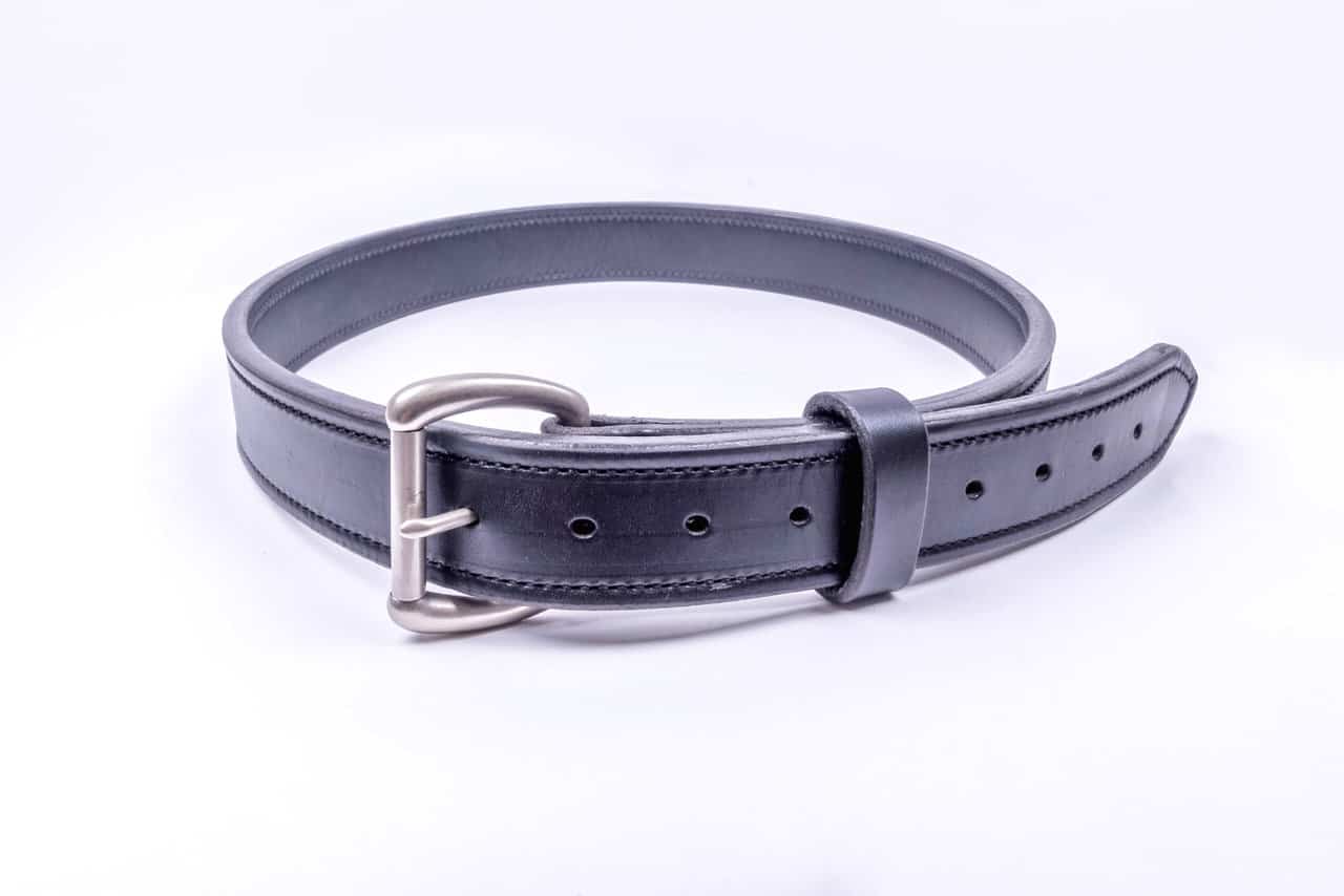 Each belt is 1.5″ wide and fully stitched along the edges. The belts are fitted with a solid brass roller buckle and leather keeper.
