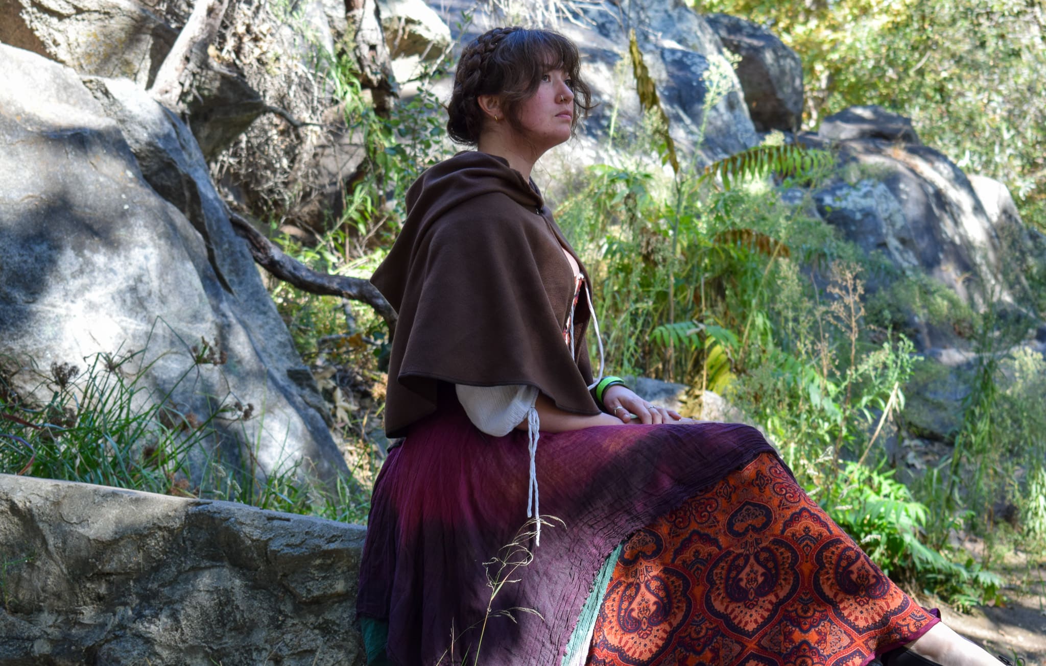 The bottoms of these cloaks are unhemmed, but serged. This helps the cloak drape and flow better than if they were fully hemmed along the bottom. We can always hem the bottom of your cloak, so feel free to let us know in the order notes if you’d like yours hemmed and we will hem it for no extra charge.