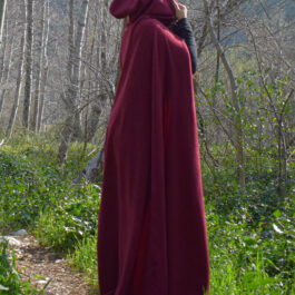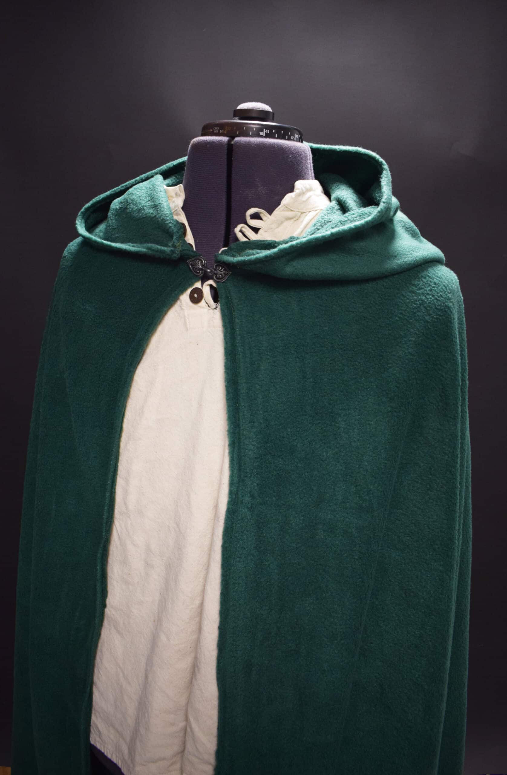 This is a simple hooded cloak made out of a soft and comfortable poly blend fleece.
