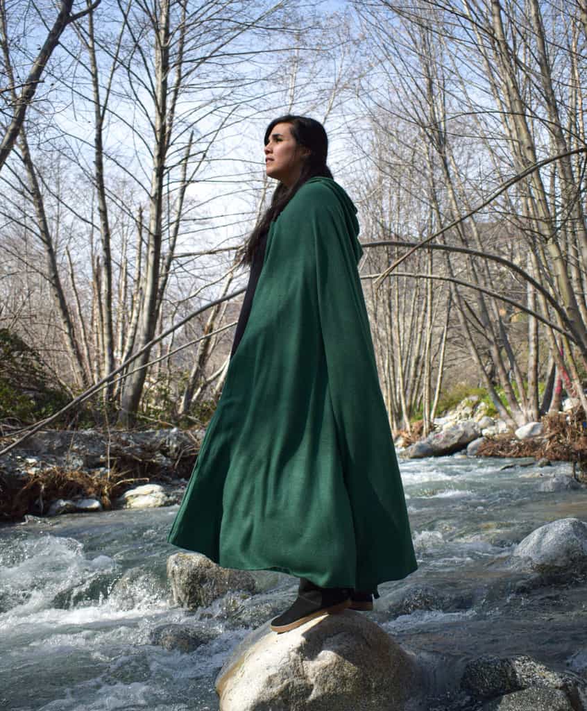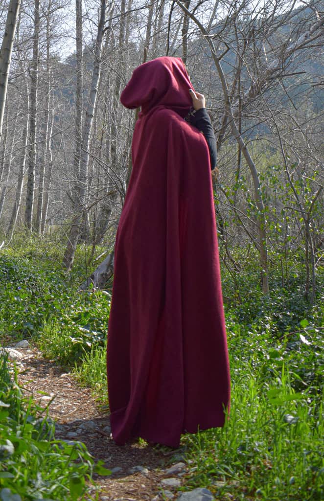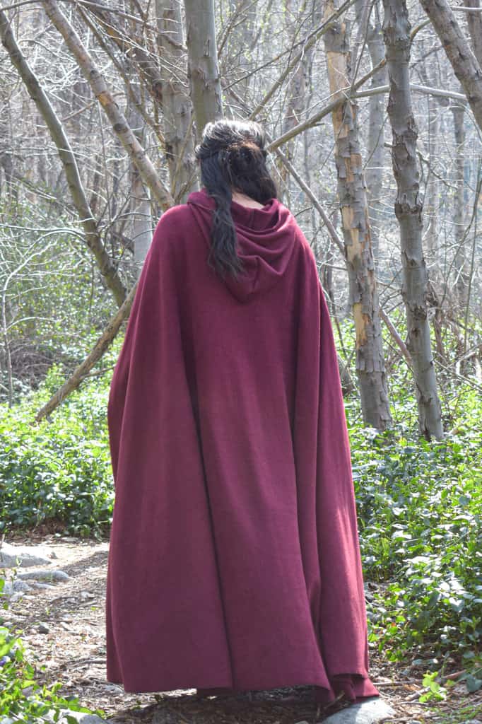 The bottoms of these cloaks are unhemmed, but serged. This helps the cloak drape and flow better than if they were fully hemmed along the bottom. We can always hem the bottom of your cloak, so feel free to let us know in the order notes if you’d like yours hemmed and we will hem it for no extra charge.