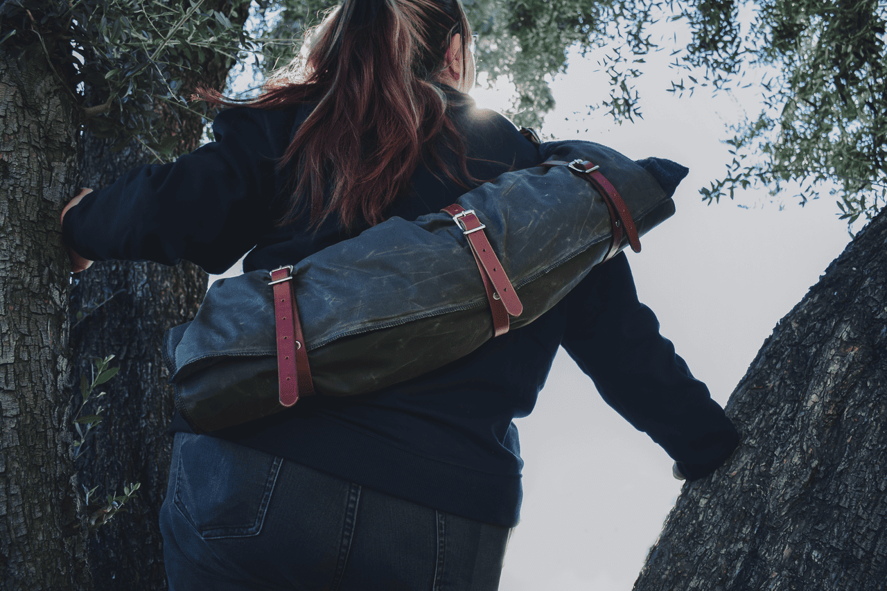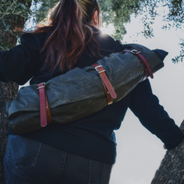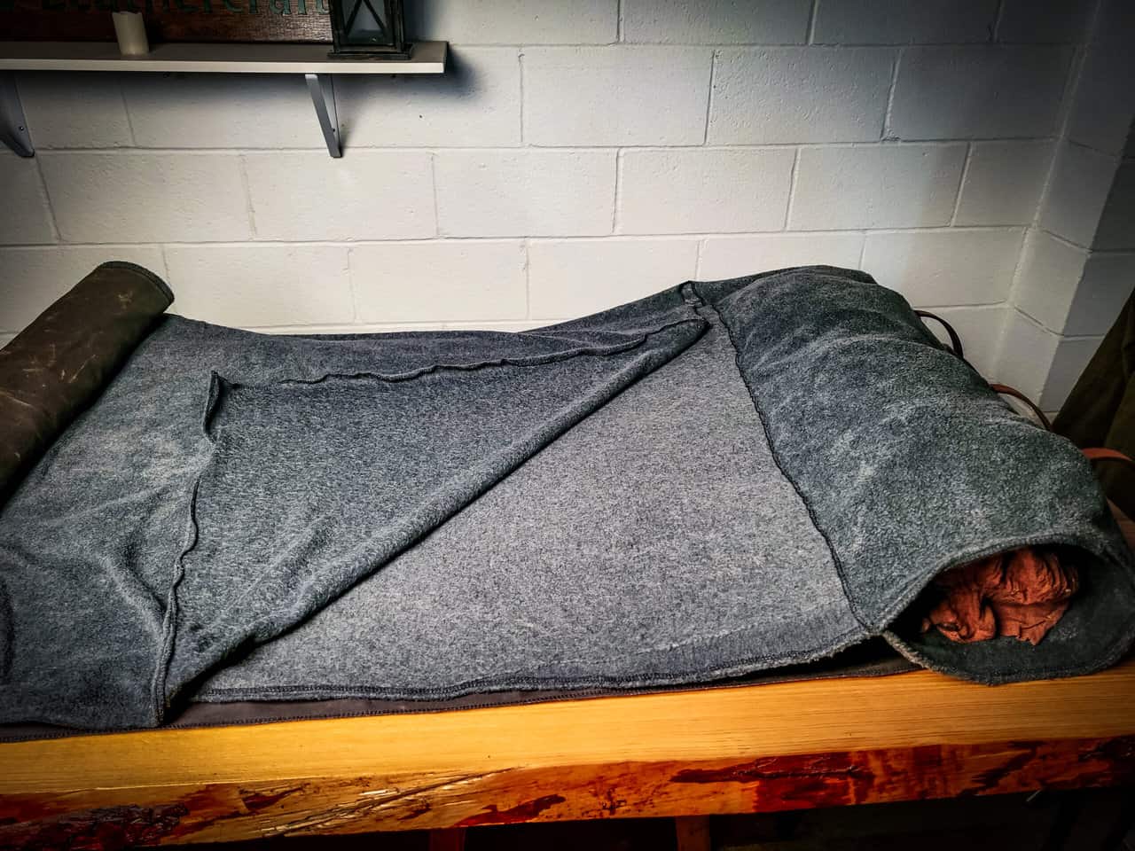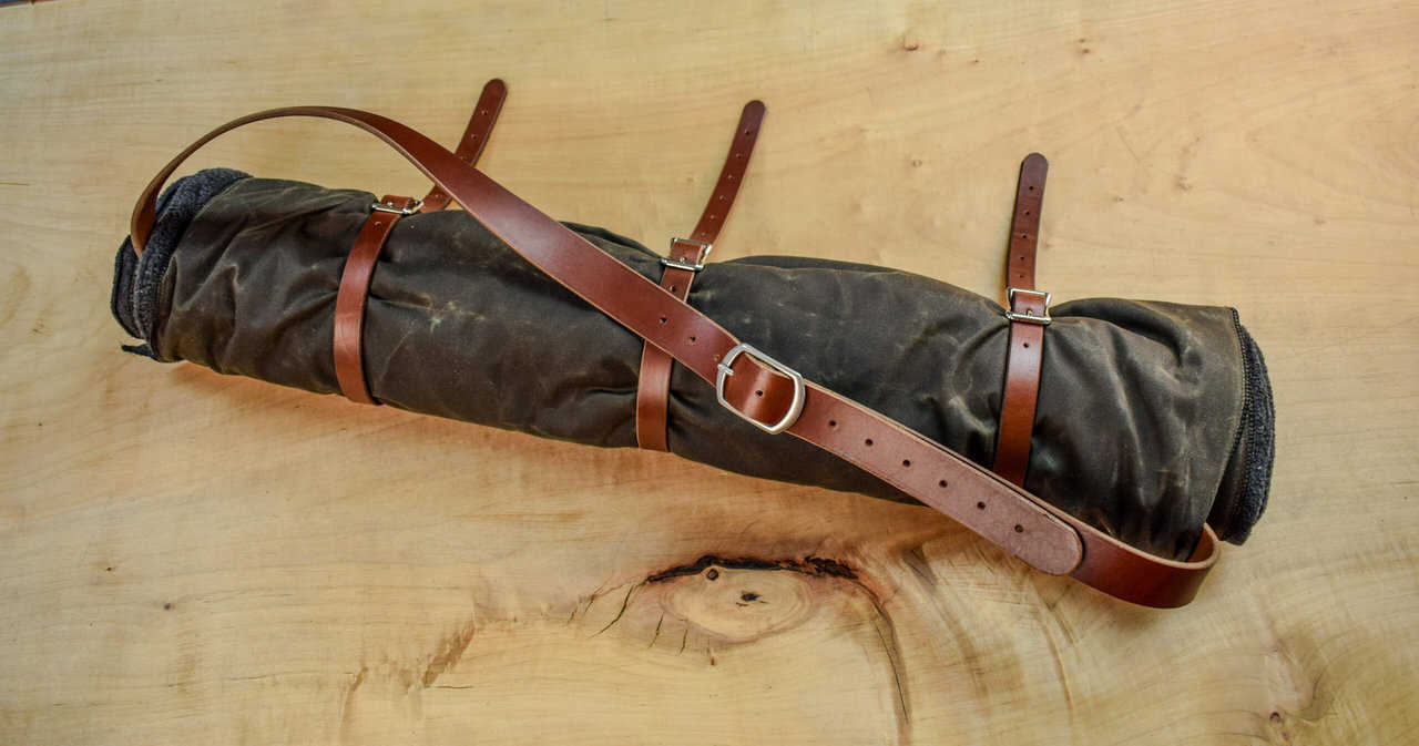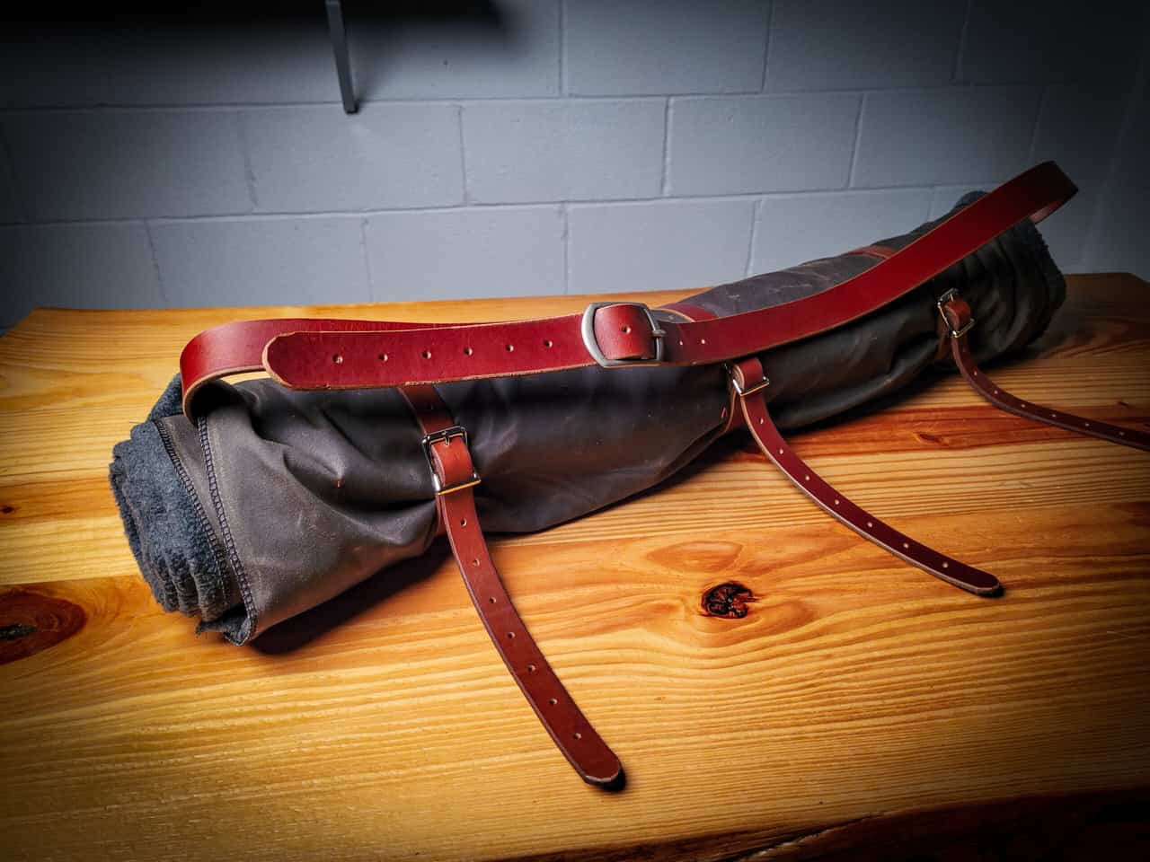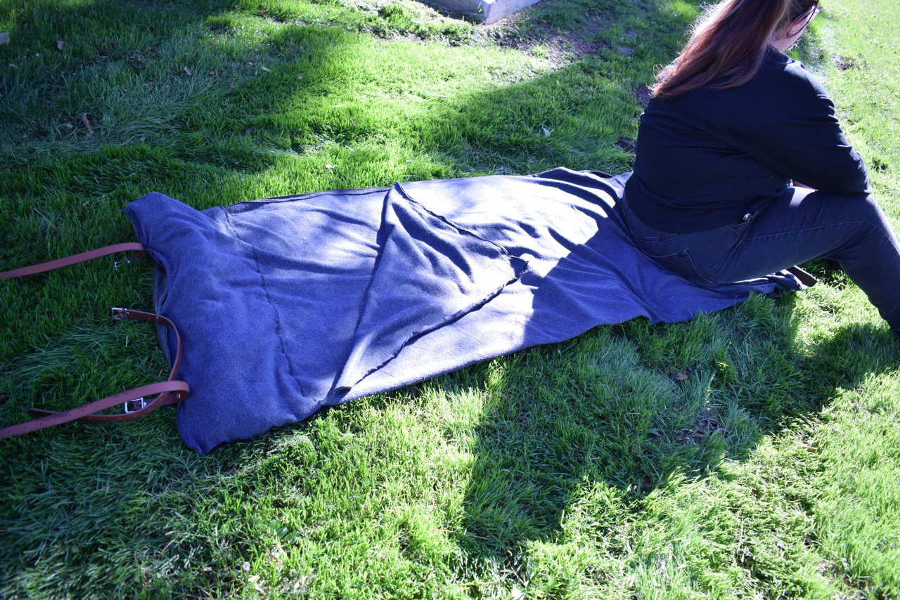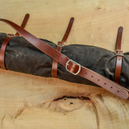 Each bedroll features a full length waxed canvas ground mat, and a 30″ wide 80″ long integrated blanket with built in pocket for your feet, and pocket on top that can be filled with soft materials to turn it into a pillow and filled with stuff to carry when traveling. Each roll features a removeable 1.25″ wide latigo shoulder strap.
