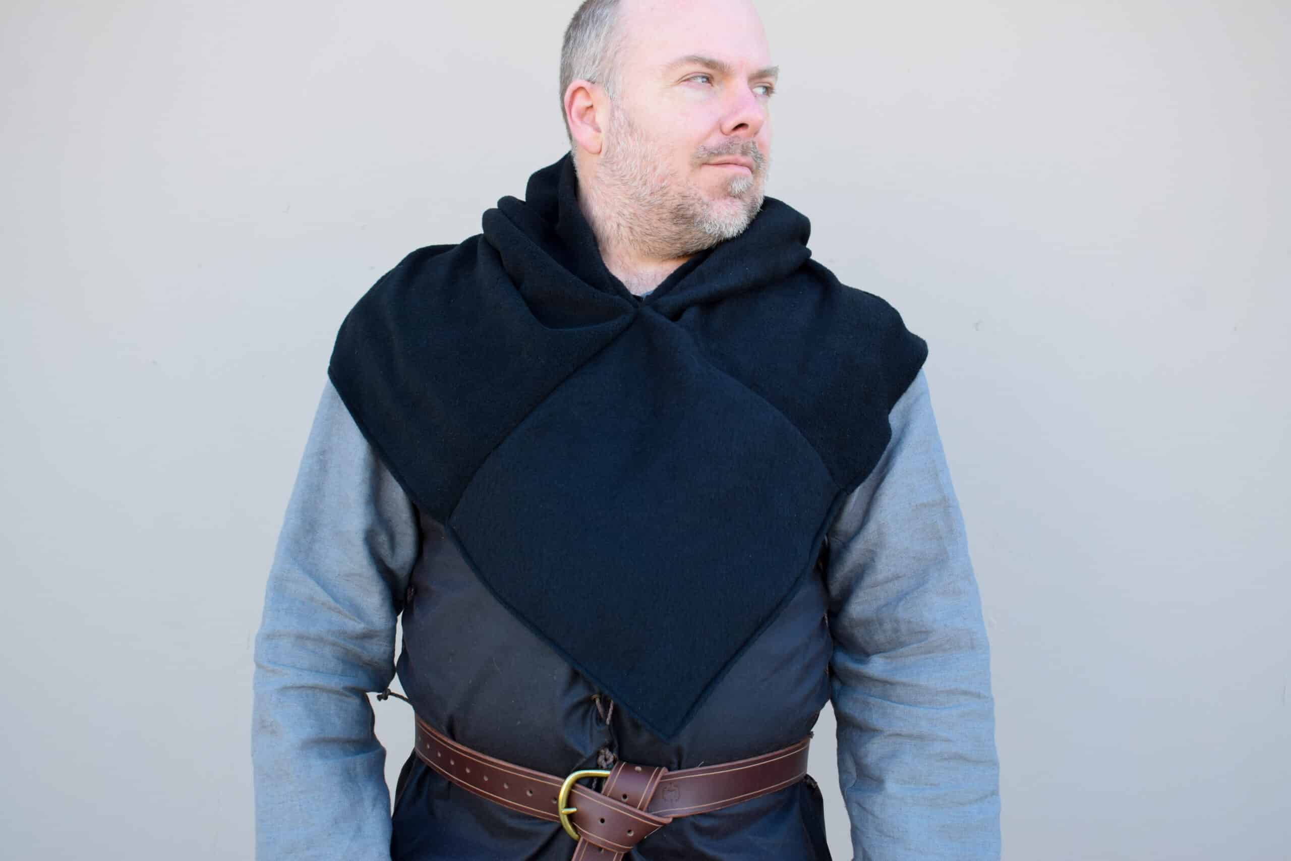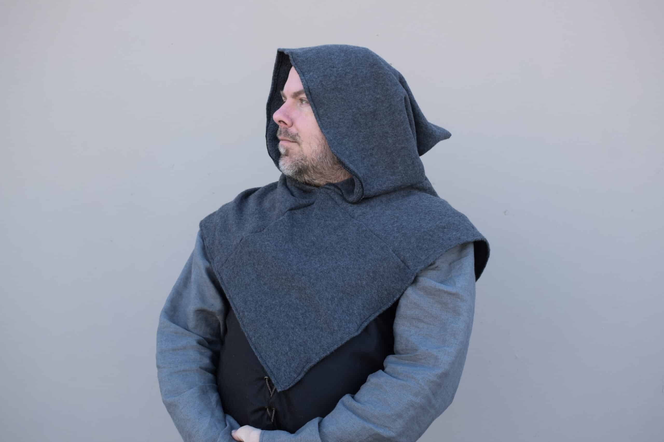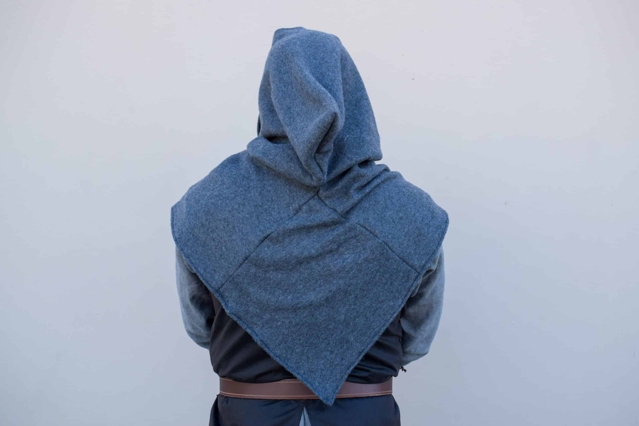 The hood fits over your head, and can be paired with a hoodless cloak, or worn alone to aid in keeping warm and looking awesome.