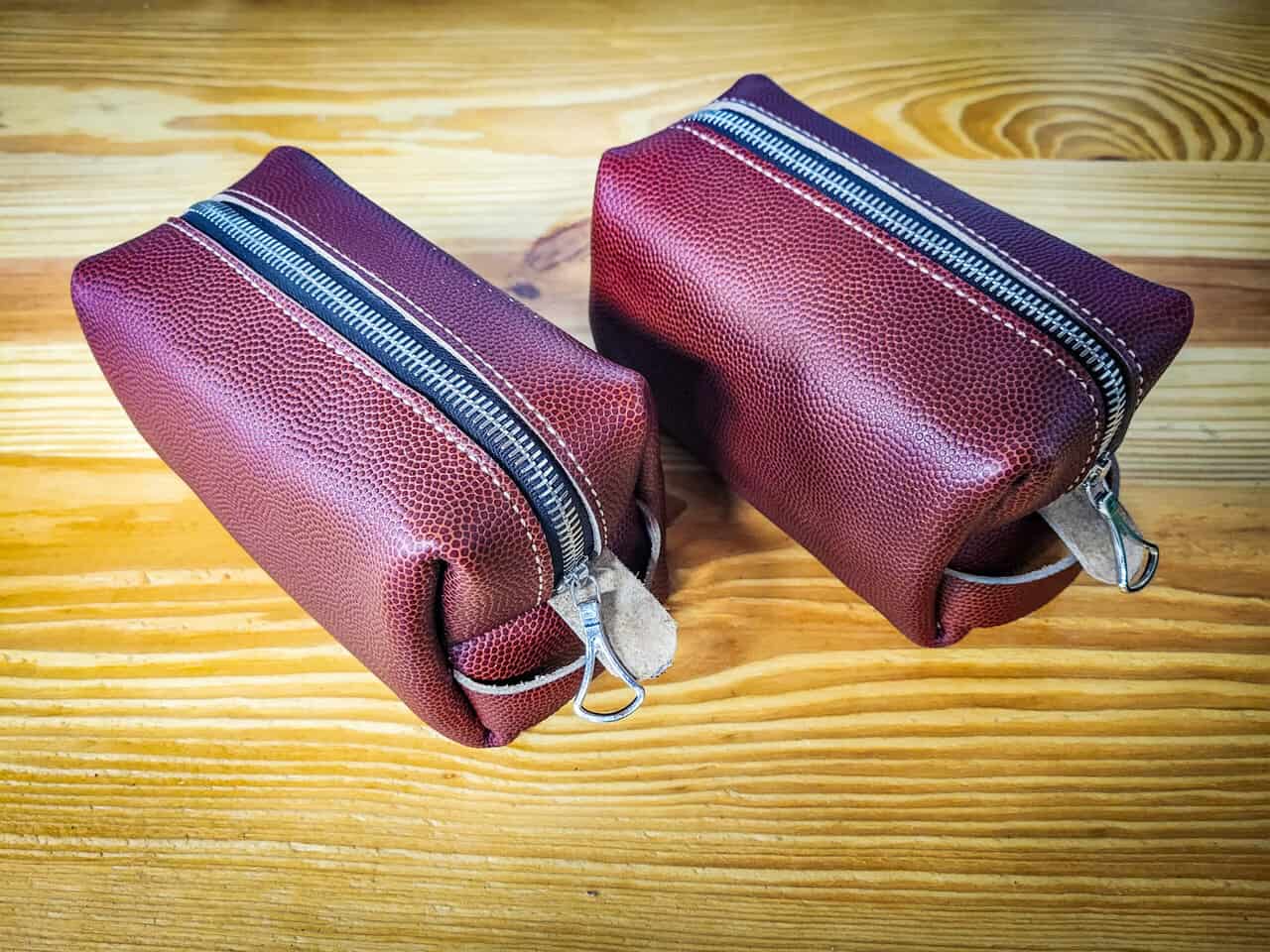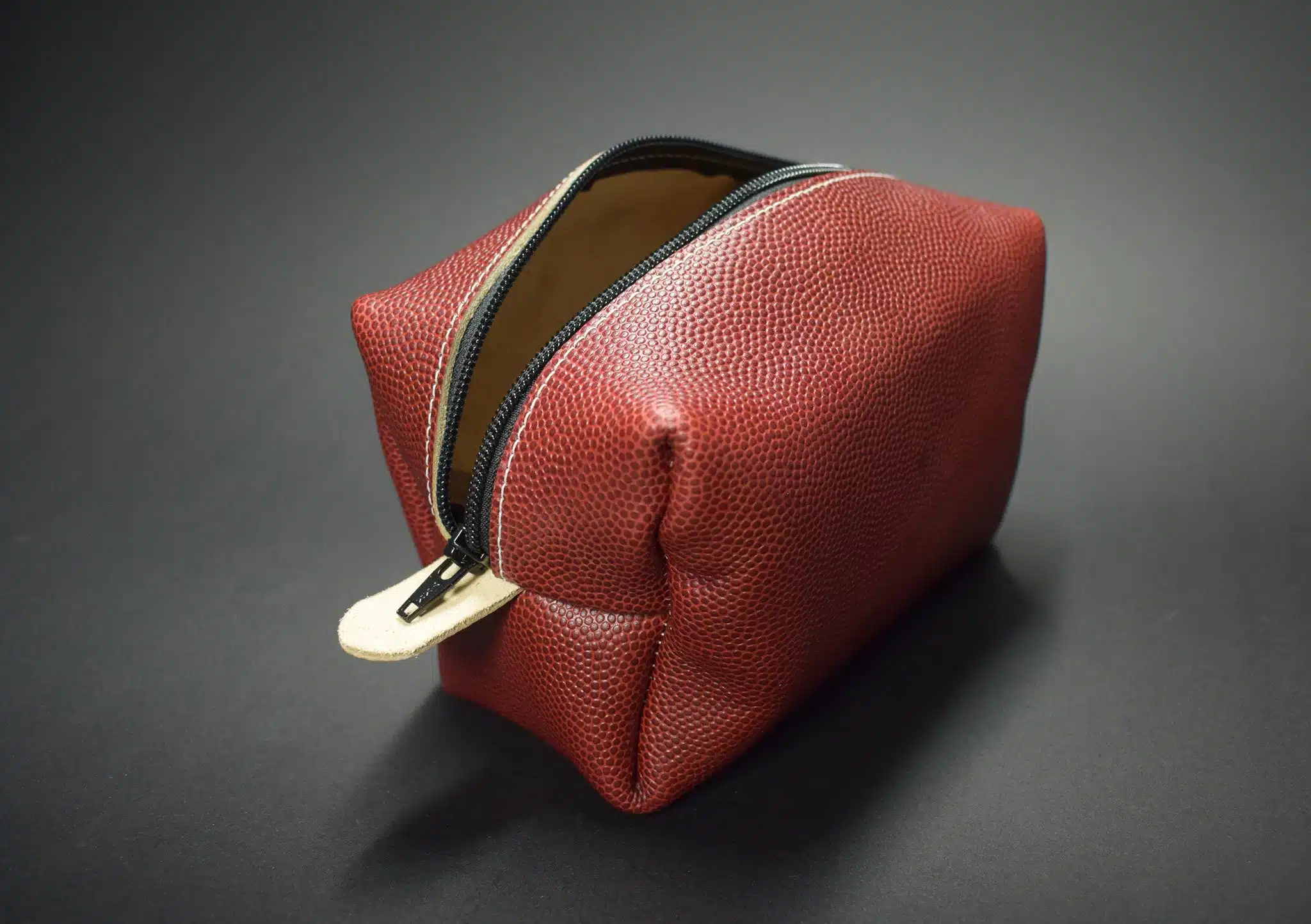 This is a handmade Dopp kit/toiletry bag made out of the actual leather used by the NFL to make their footballs, made by the famous Horween Leather company