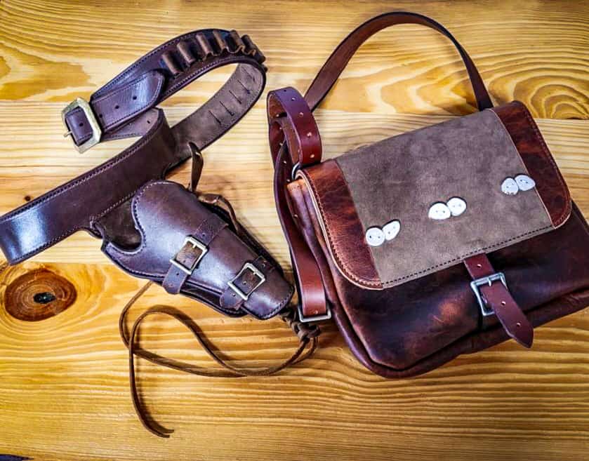 You also have the option of having the flap overlay, or entire bag being made out of brain tan bison leather. Brain tanned leather is a traditional method of tanning, where the leather is processed using the brain of the animal and then smoked over a fire. Brain Tanned leather is much more complicated to make, so it is a bit more expensive. Brain tan is much more true to the period, so if accuracy to what would have actually been used in the late 1800s is what you’re going for, you cannot do better than Brain tan.