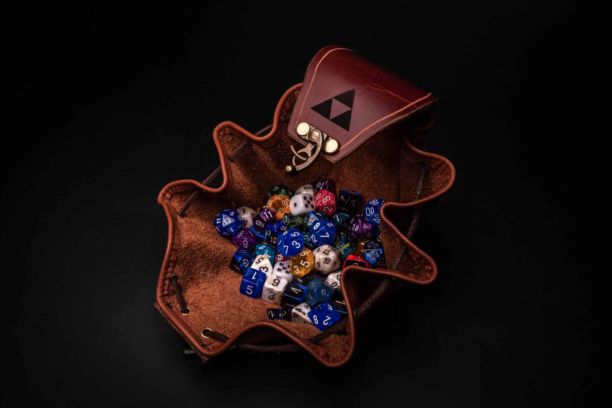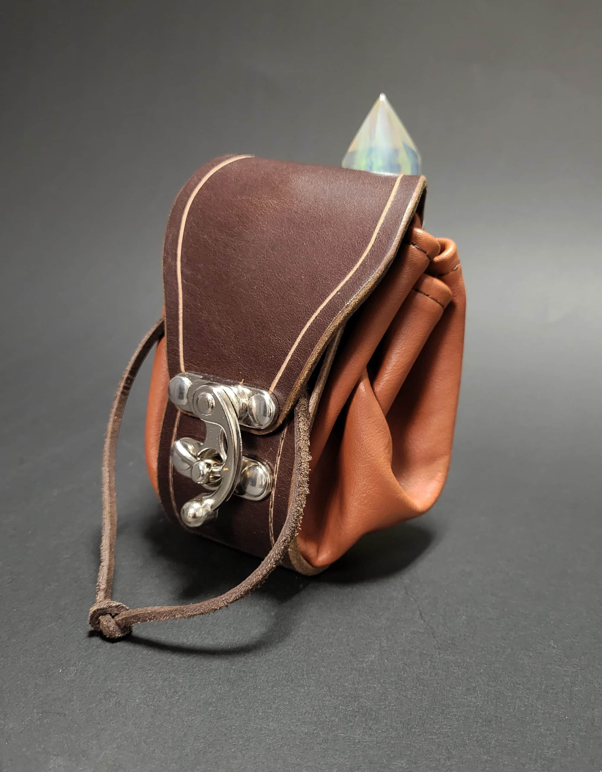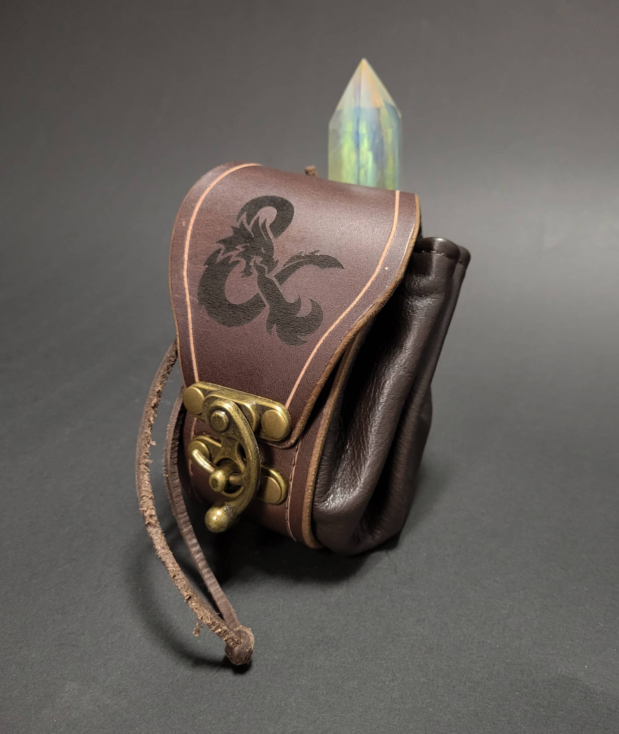 A simple leather pouch for holding dice, runes, snacks, or whatever else you need for your quest.