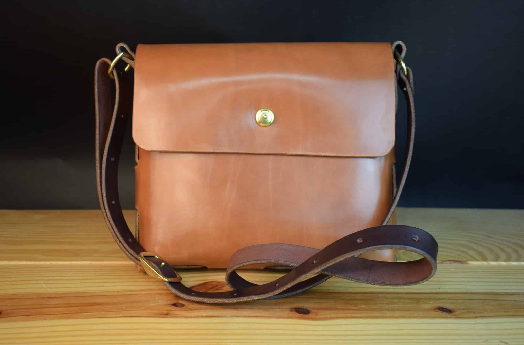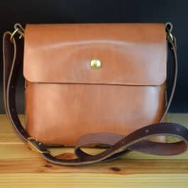 This is a simple leather crossbody bag made out of durable bridle leather with an adjustable crossbody strap.
