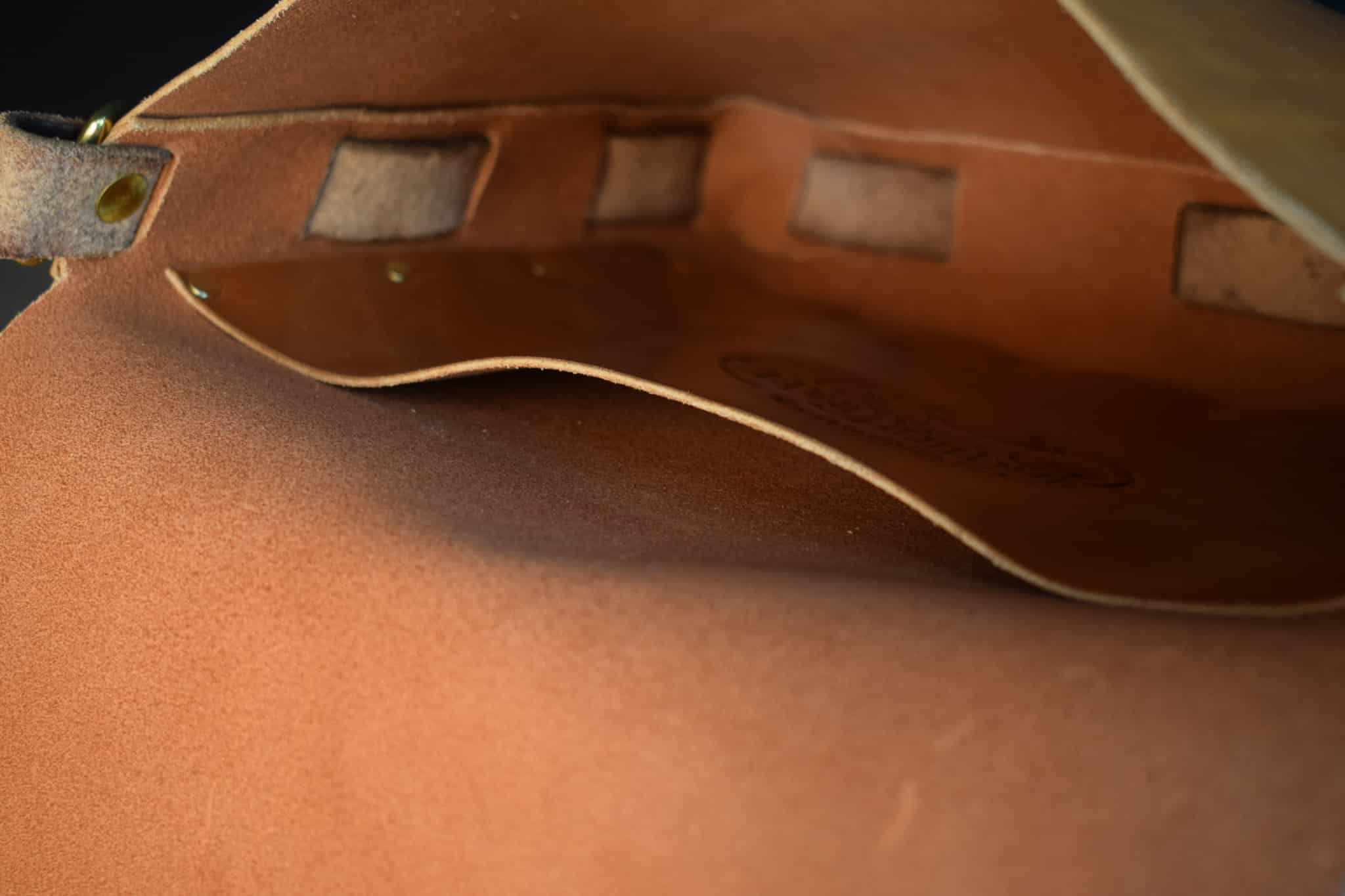 Each bag can be made out of 7-8 ounce latigo cowhide, or Wickett and Craig traditional harness leather. Each bag will have a crossbody strap made out of W&C bridle leather that is adjustable via conway buckle. The bag is closed via a simple LOXX closure