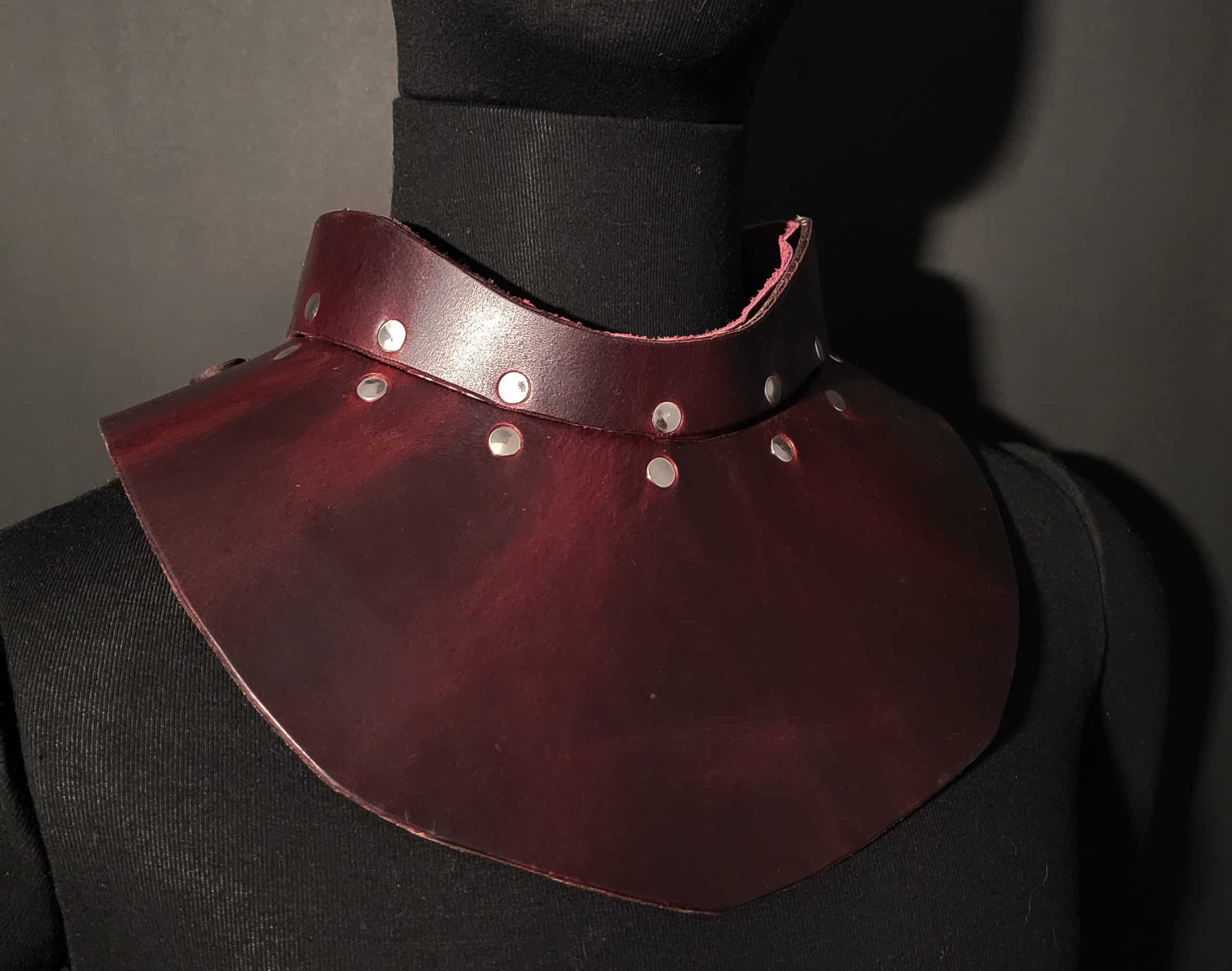 The gorget will fit neck sizes from 14″-18″, but if you want a more exact fit, include a measurement of the circumference of your neck when ordering and I will make it closer to your exact size.