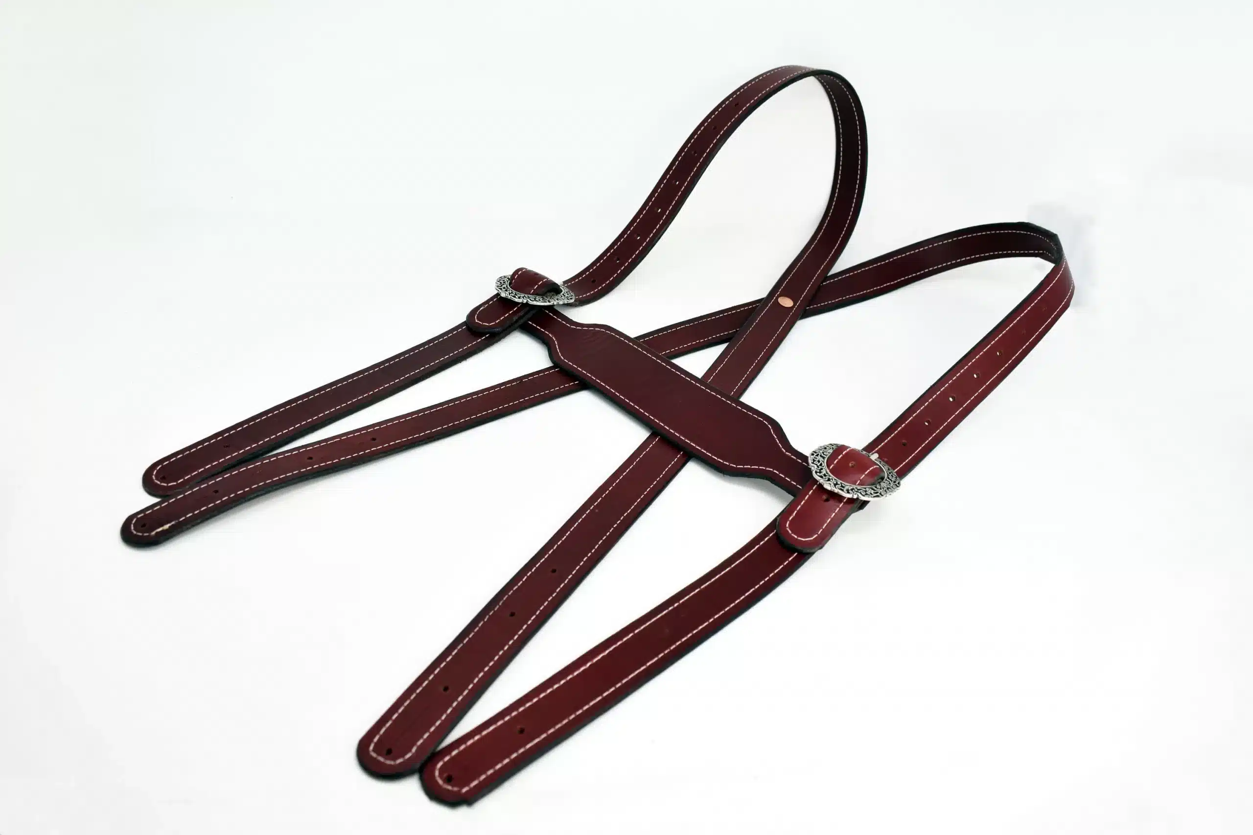 The suspenders feature decorative floral buckles, a 12″ wide crosspiece at the chest. If interested the crosspiece can be customized, feel free to message me for details.