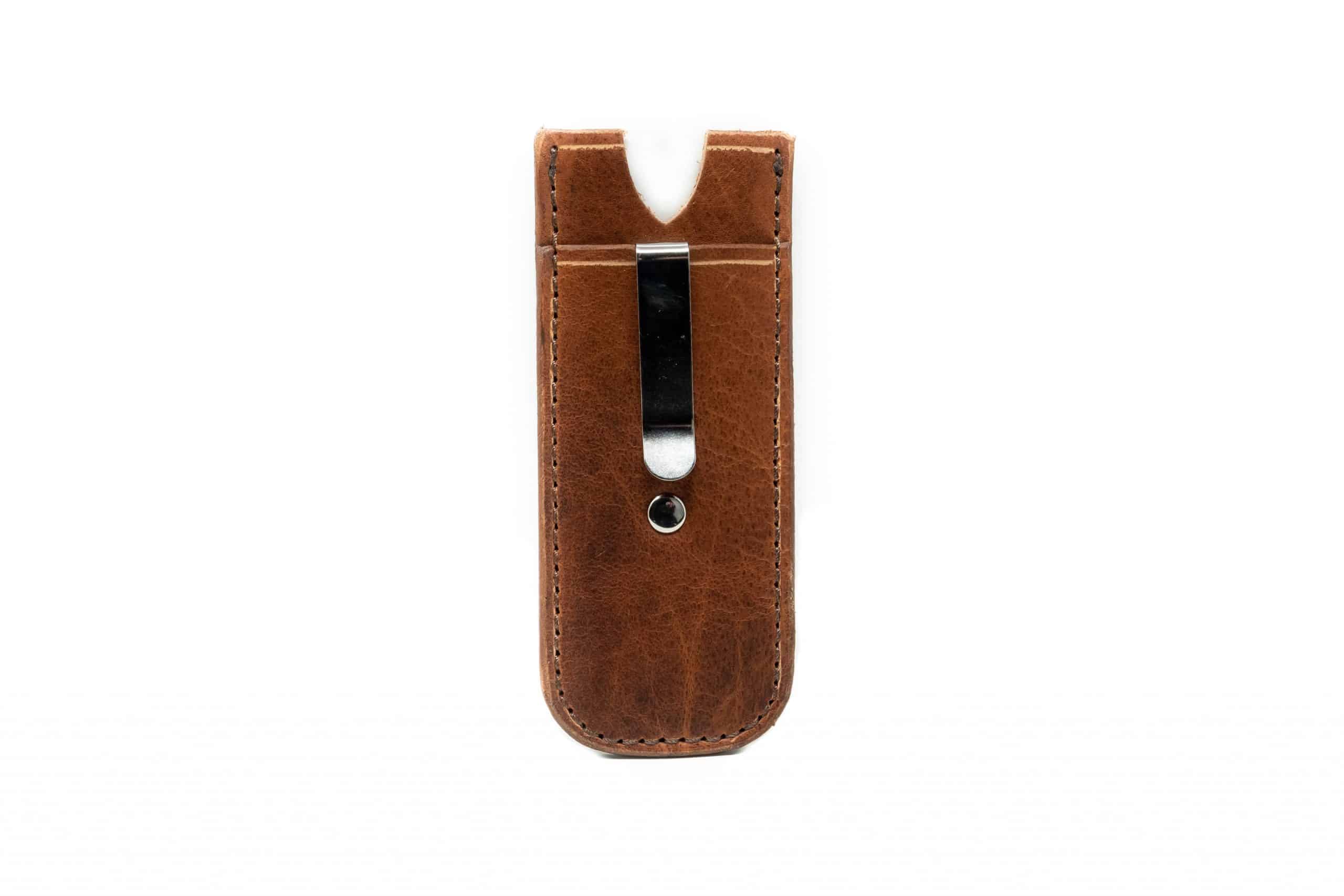 These are a selection of simple pocket slips that you can store your folding knife in to keep it protected inside your pocket. They are Nearly identical to our other pocket slips, but have your choice of pocket clips to secure them.