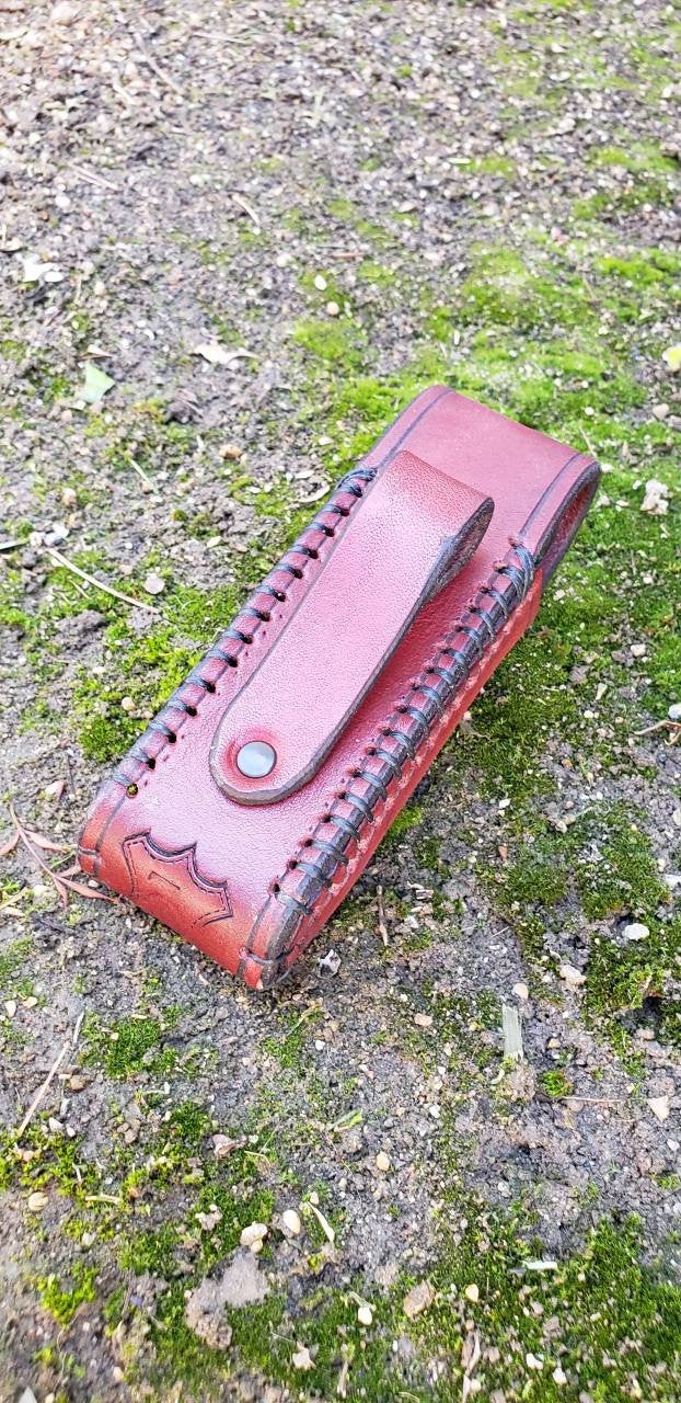 This listing is for a handmade leather pouch that can be used to secure your knife, multi-tool, or whatever else you want on your person, but not in your pocket.
