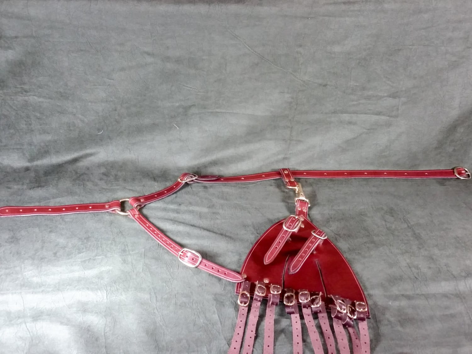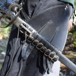 The frog features buckled straps that allow for carrying swords of many different sizes.