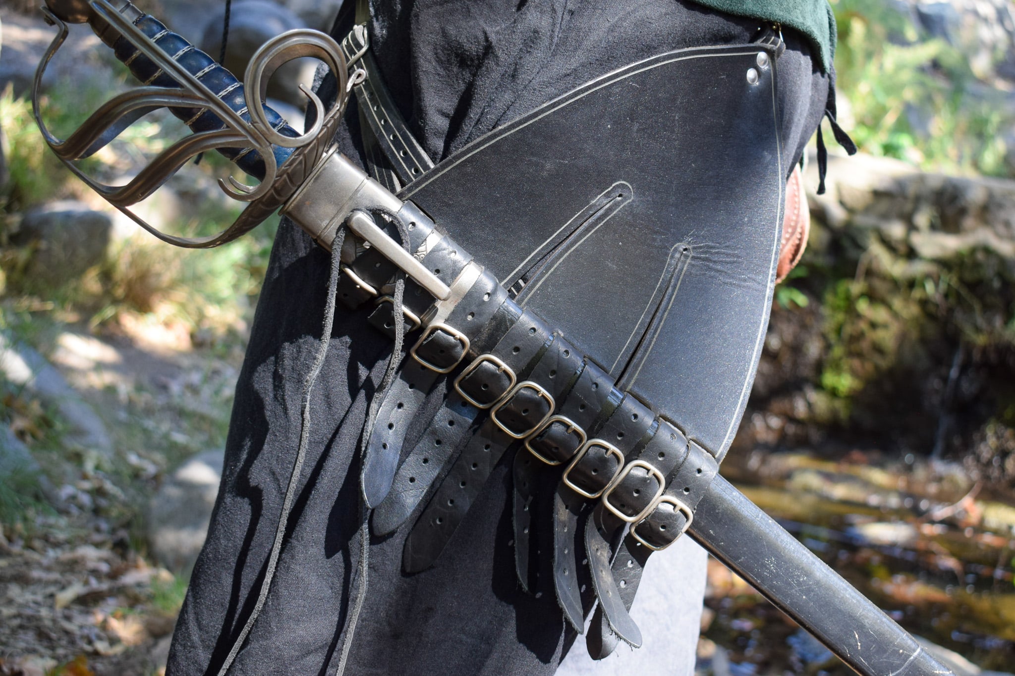 This listing is for a rapier hanger which includes belt, rapier frog, and the option of adding a buckle or lace attachment for your dagger integrated onto the rapier frog.