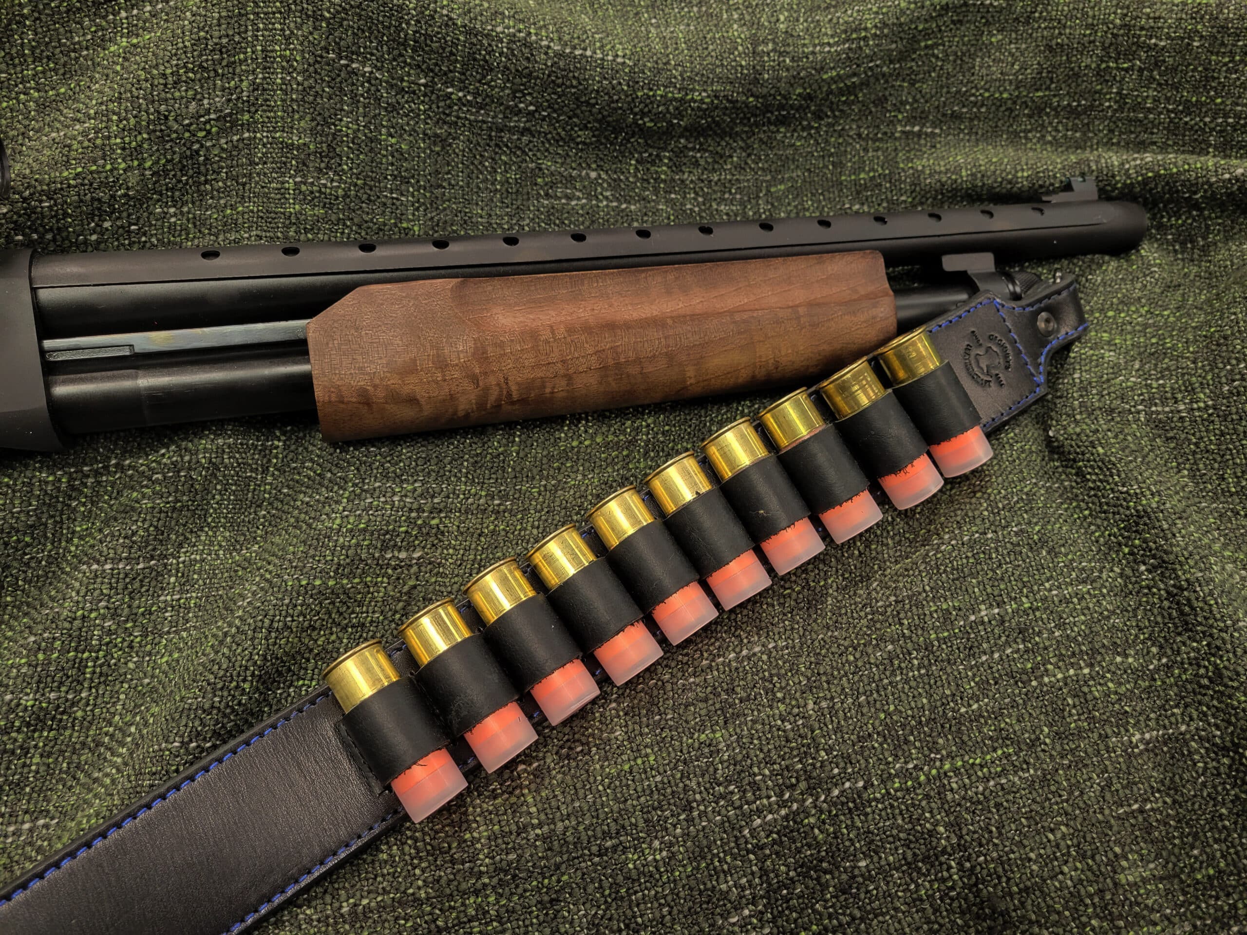 The ammo loops can be arranged either vertically or horizontally. Horizontally allows for more ammunition to be carried (default is typically 10 rounds), but vertically allows the ammunition to be carried more securely (default is typically 6 rounds). Please let me know in the order notes how you would like your ammo loops set up/ how many rounds you would like to carry.