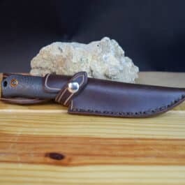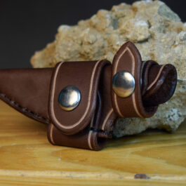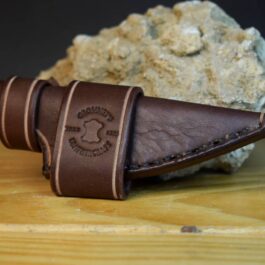 It is hand-stitched out of 8-10 ounce latigo cowhide, (or 8-10 ounce vegetable tanned cowhide if the “natural” color is chosen) and can be ordered in vertical or horizontal carry, with the scout carry being available with an ambidextrous or snap closure loop.