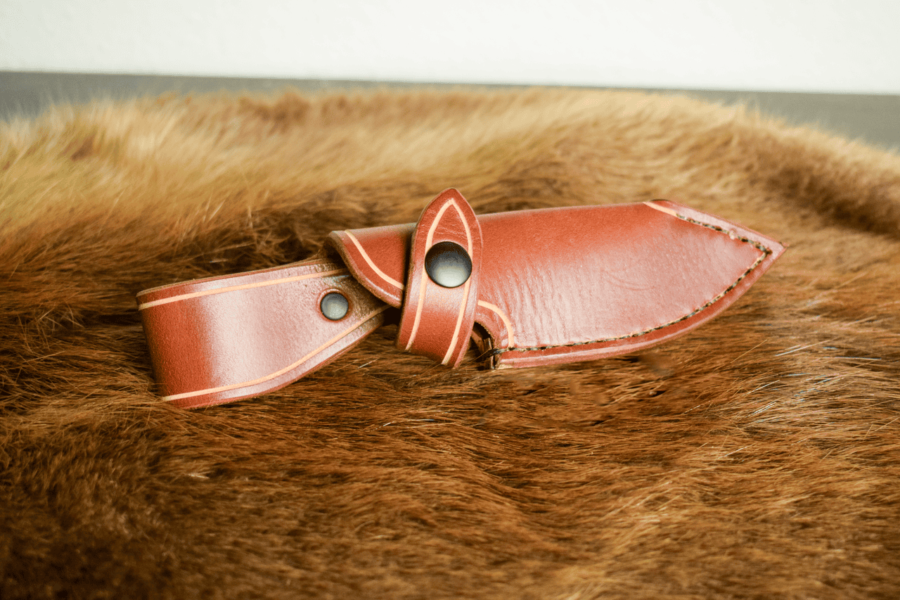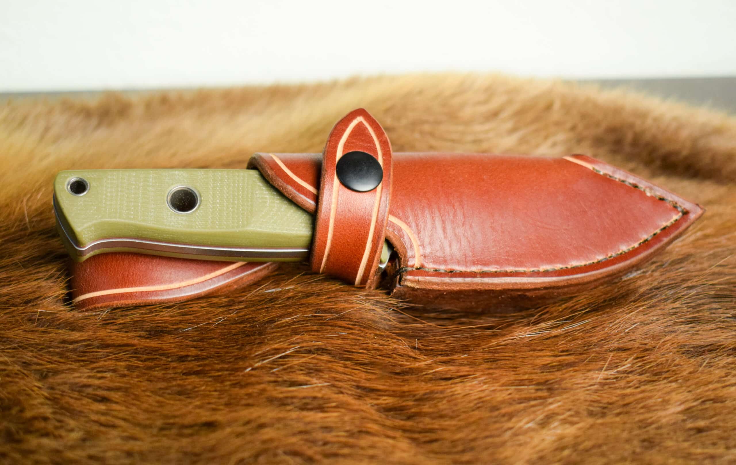 This is a handmade leather sheath for the Benchmade 165-1 Mini Bushcrafter
