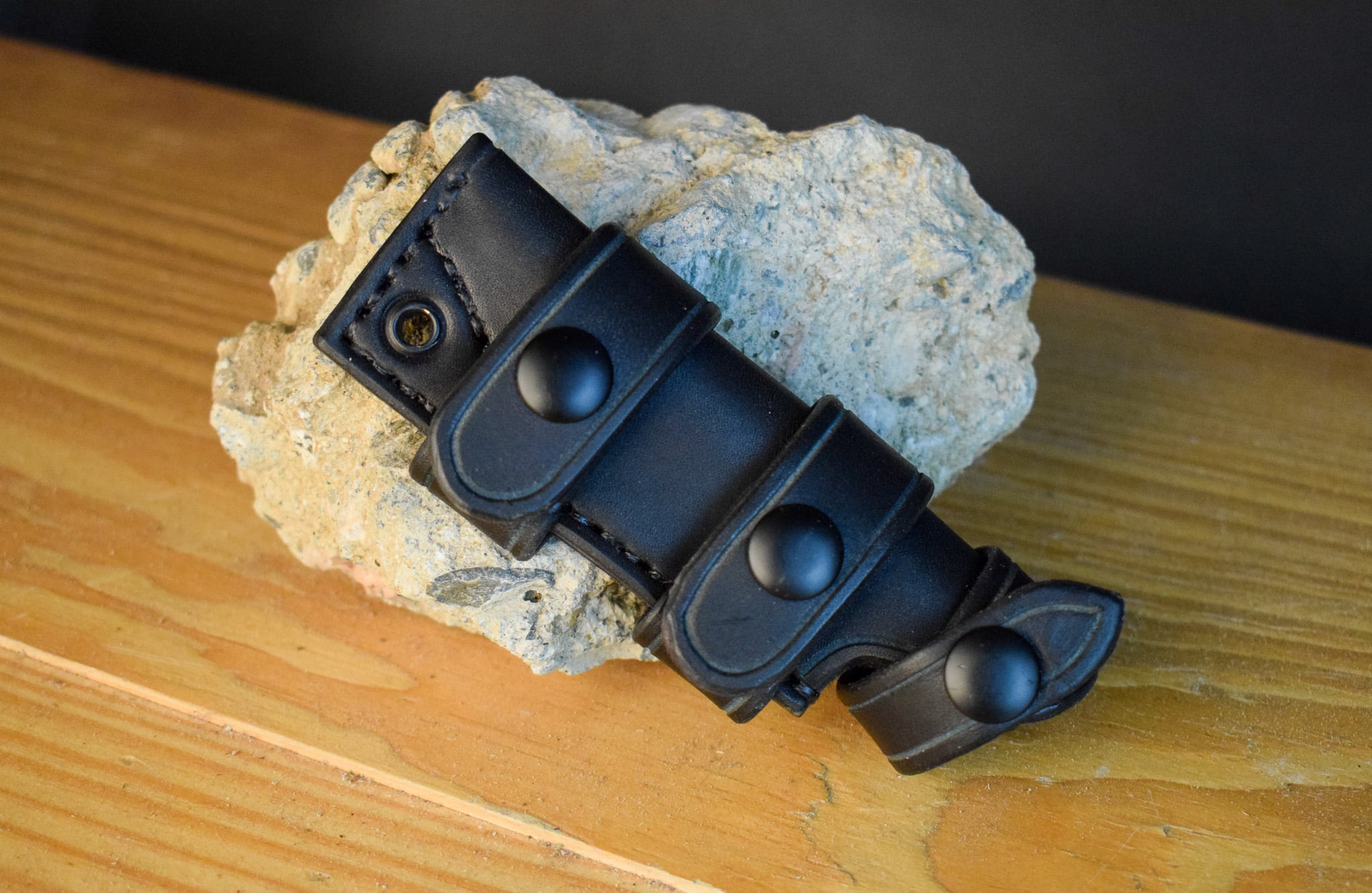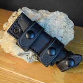 It is hand-stitched out of 8-10 ounce latigo cowhide, (or 8-10 ounce vegetable tanned cowhide if the “natural” color is chosen) and can be ordered in vertical or horizontal carry, with the scout carry being available with an ambidextrous or snap closure loop.