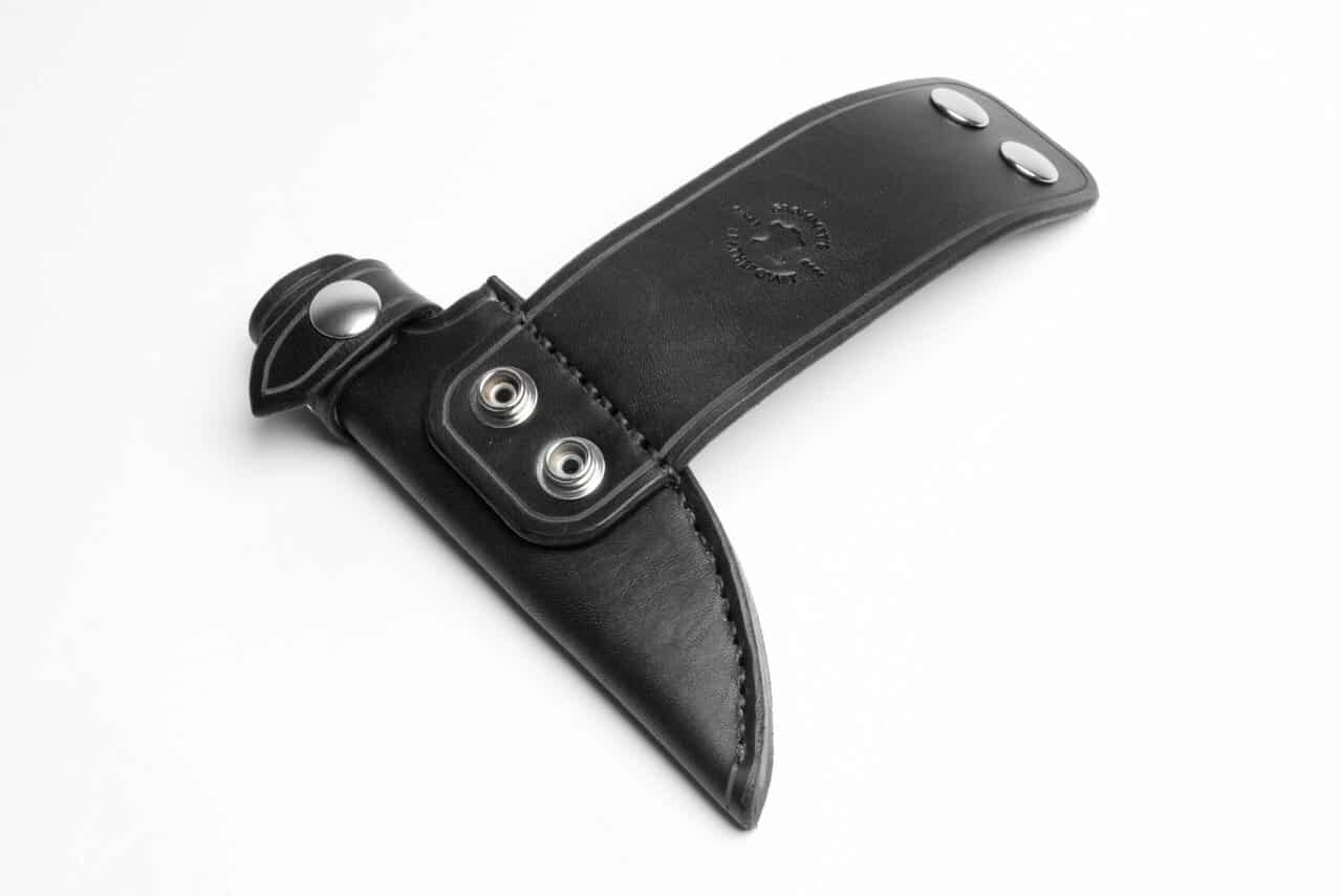 It is hand-stitched out of 8-10 ounce latigo cowhide, (or 8-10 ounce vegetable tanned cowhide if the “natural” color is chosen) and can be ordered in vertical or horizontal carry, with the scout carry being available with an ambidextrous or snap closure loop.