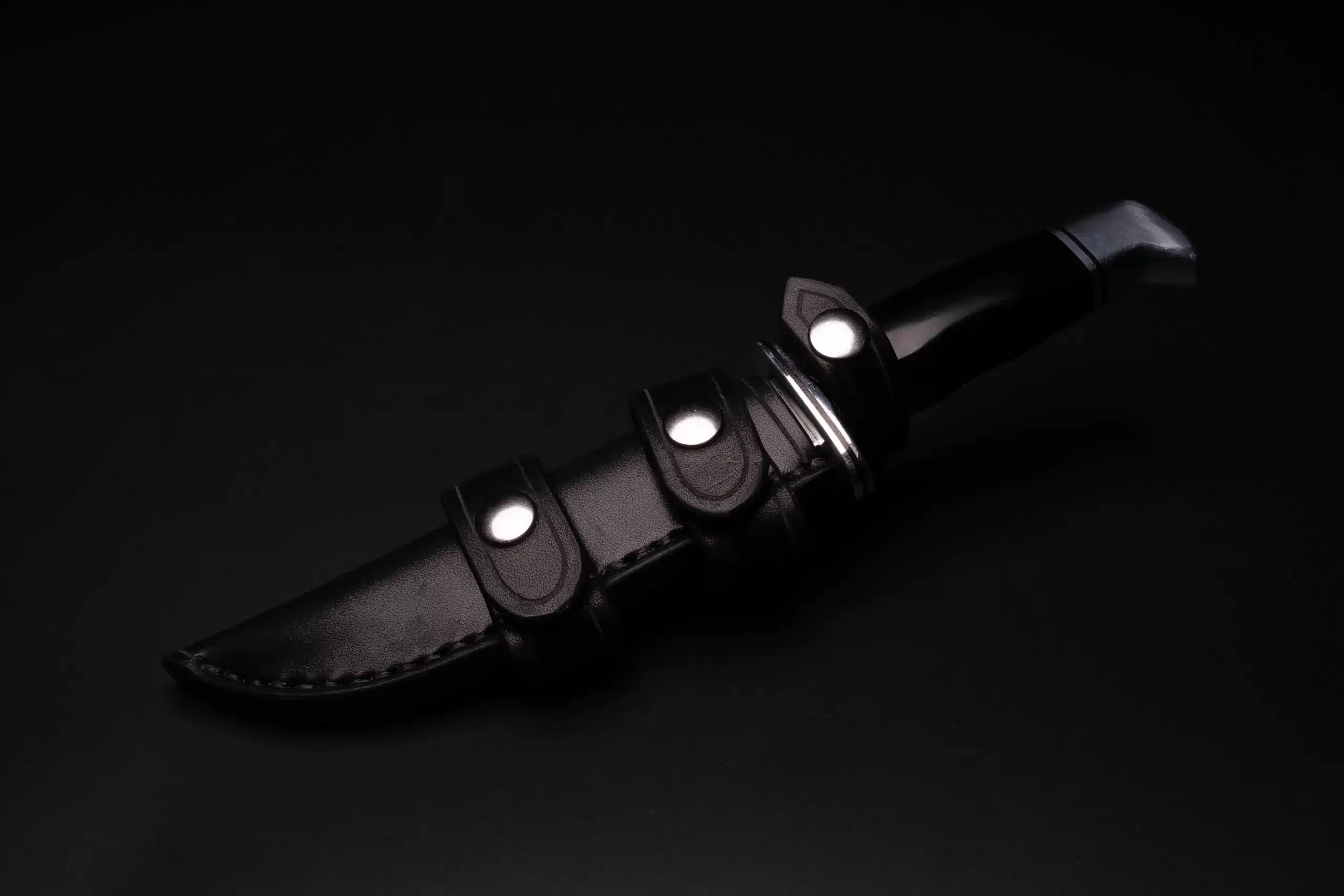 We also offer the sheath with a solid ambidextrous loop, which allows the knife to be carried on the Right or Left side, but does not unsnap, so must be threaded onto your belt. Find more alternatives in our leather sheaths page.