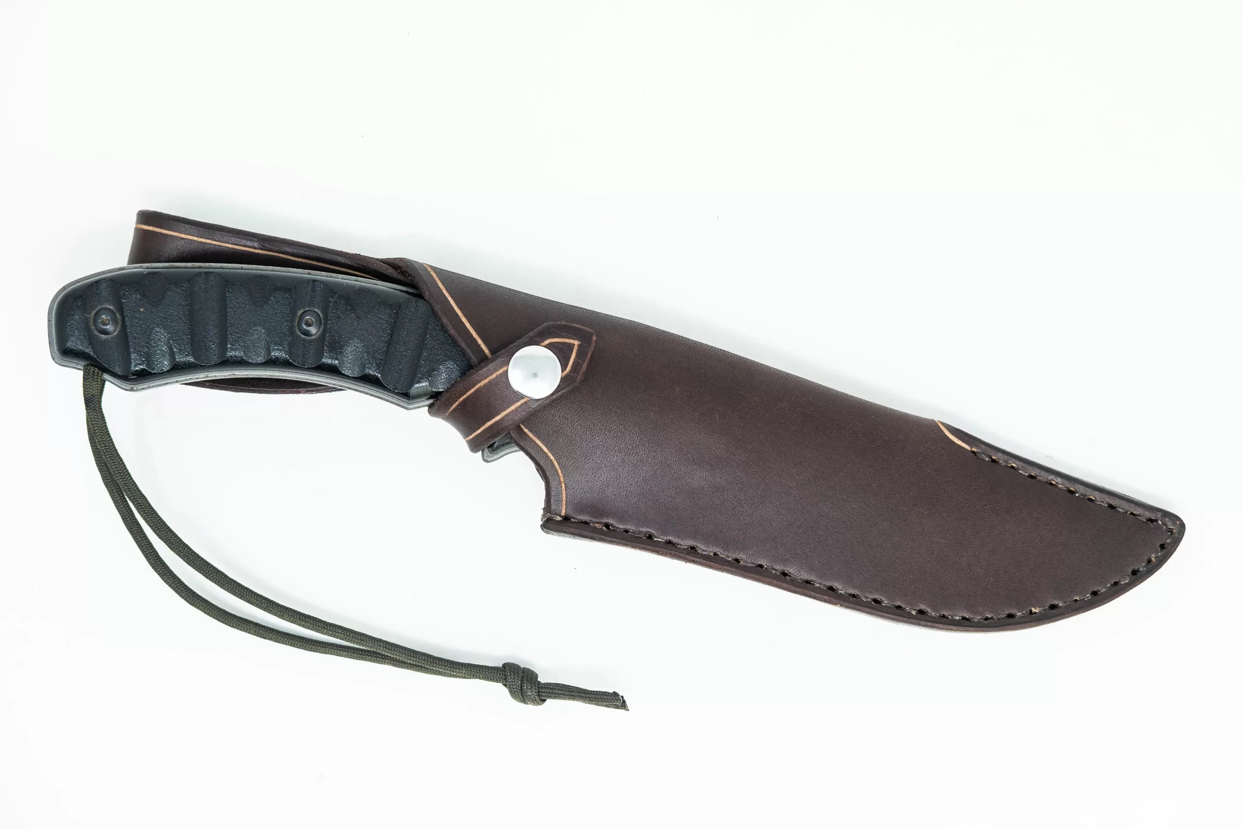 The sheath is made out of sturdy 8-10 ounce latigo cowhide and is available in a variety of colors.
