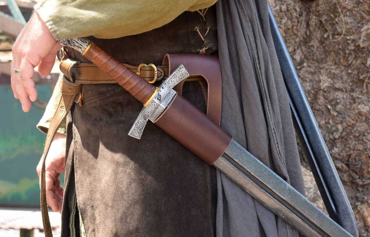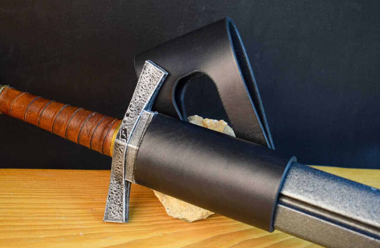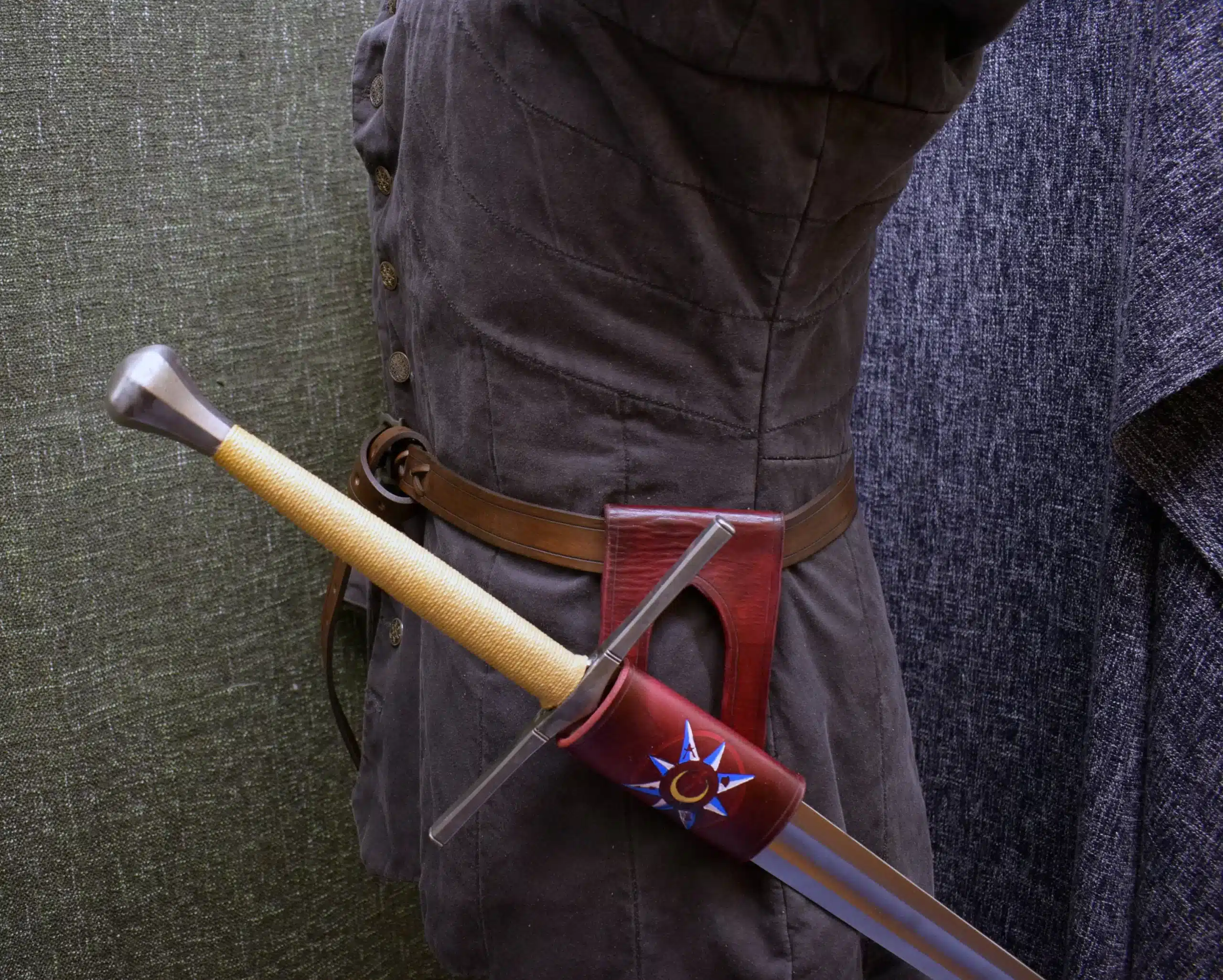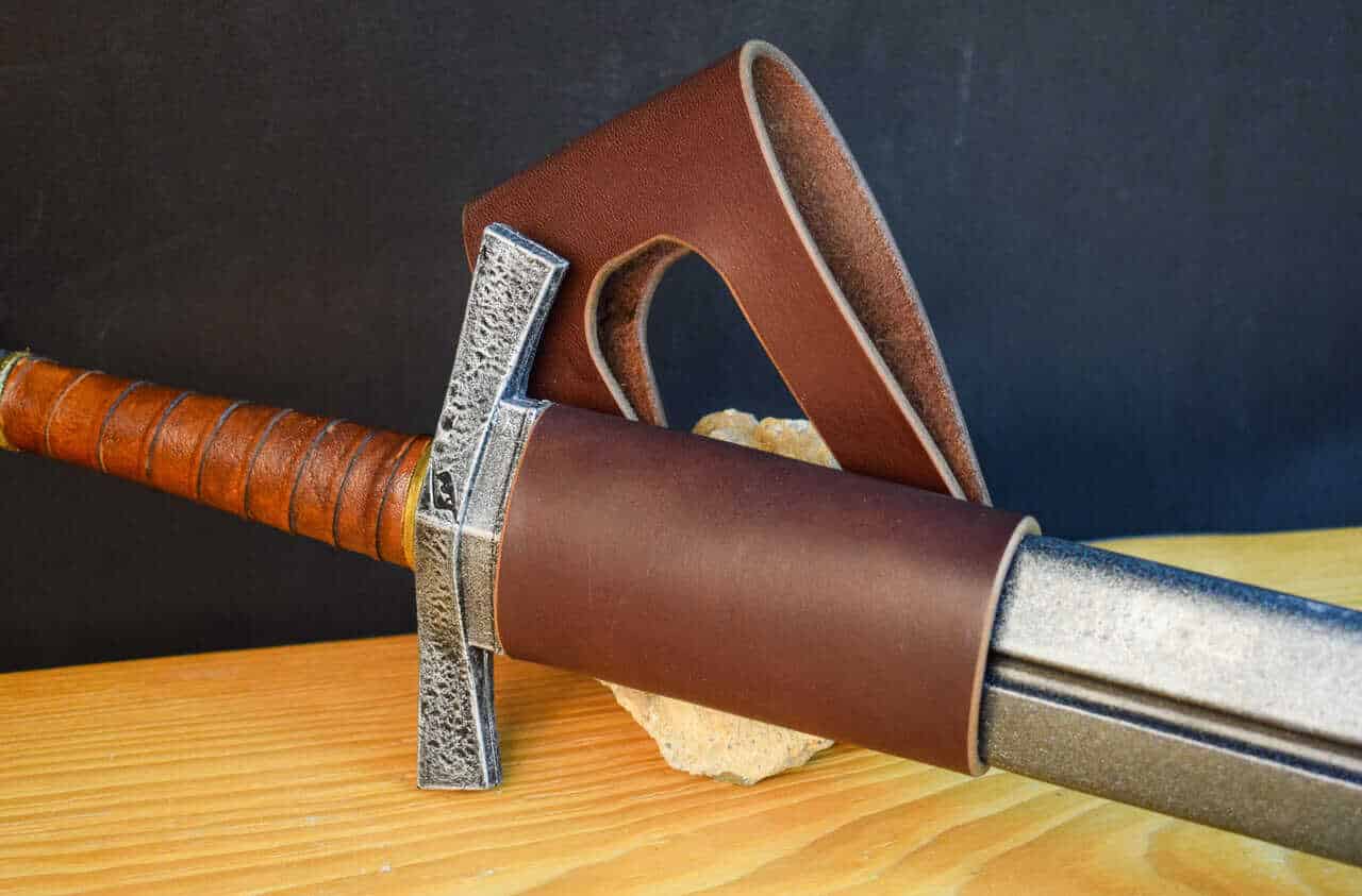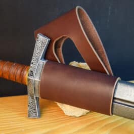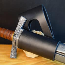 These are simple leather belt hangers for carrying scabbard-less swords. They will also work great for wasters, synthetics, or larp swords.
