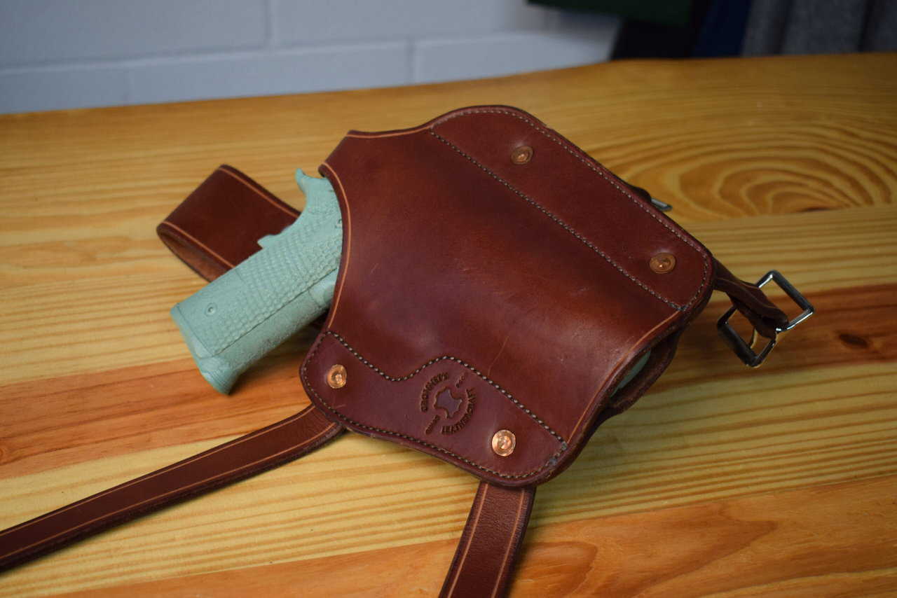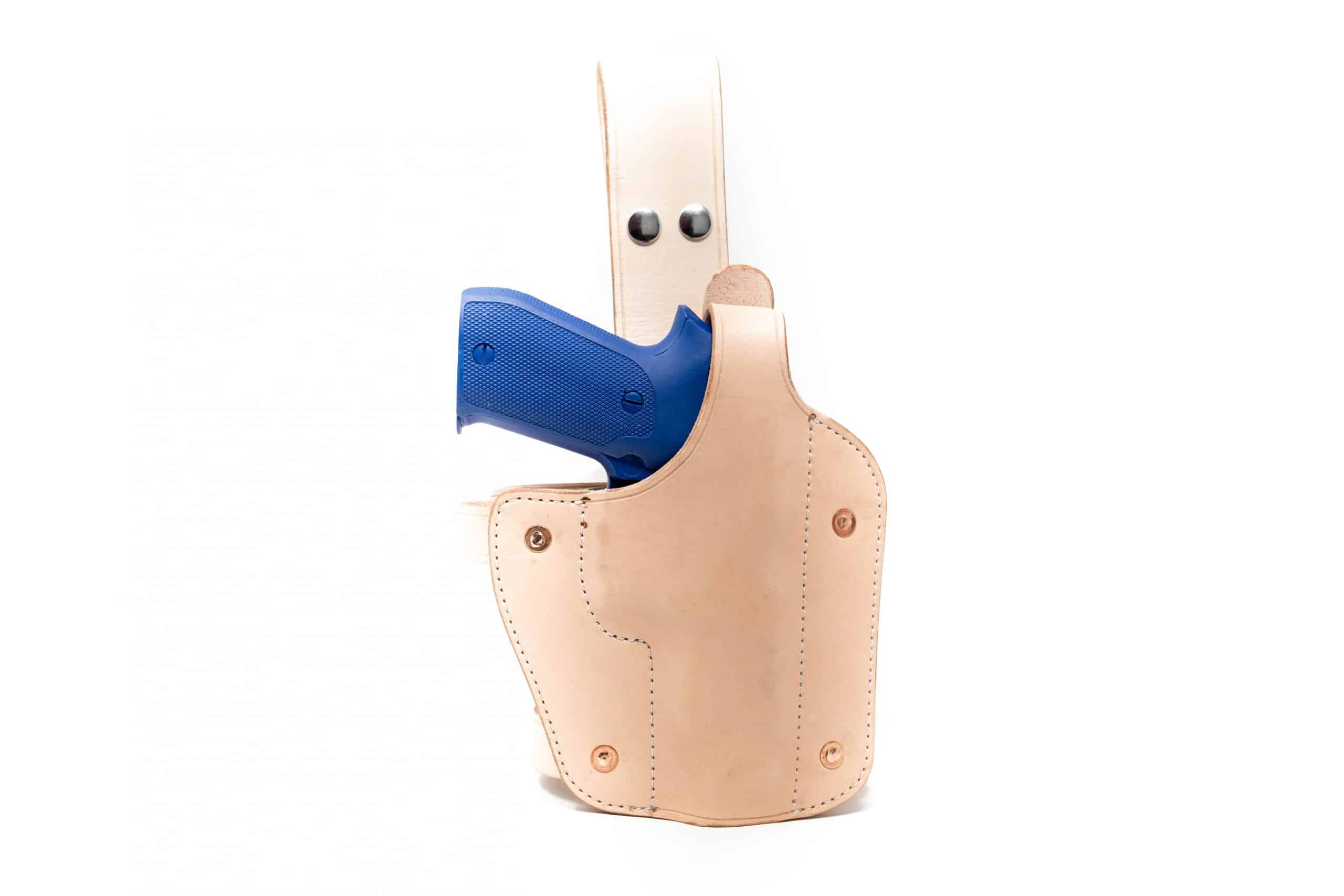 Each holster is made out of 8-10 ounce latigo cowhide, and it hand-stitched and wet molded to the shape of whatever model gun you choose,