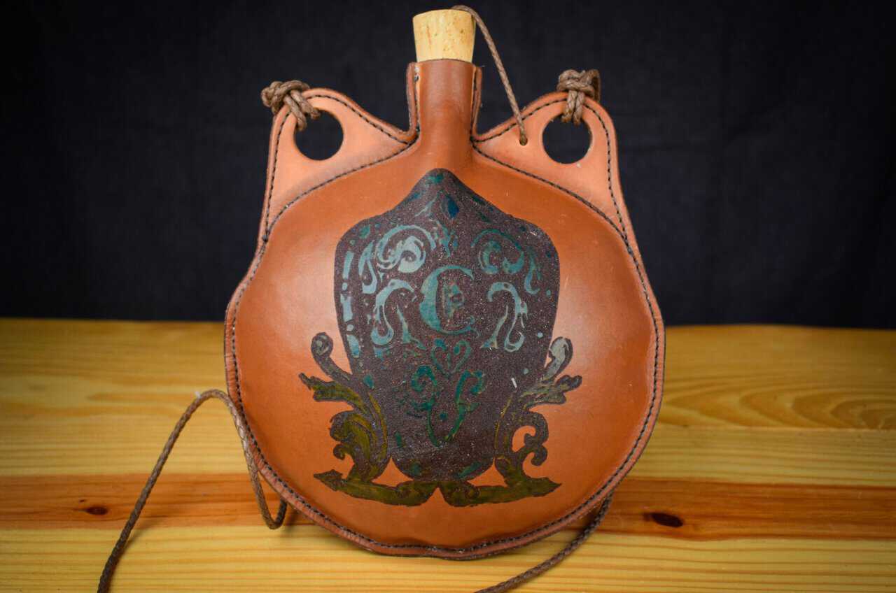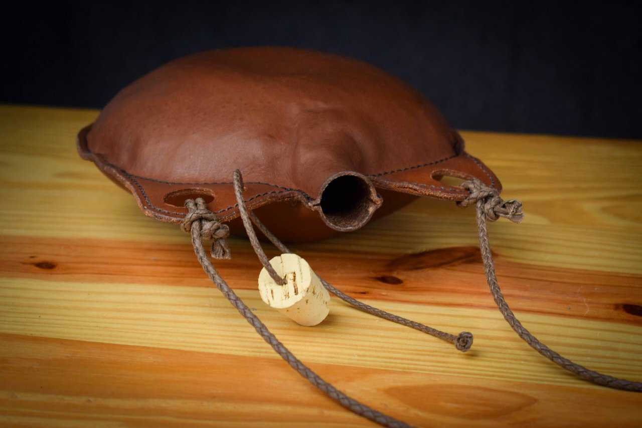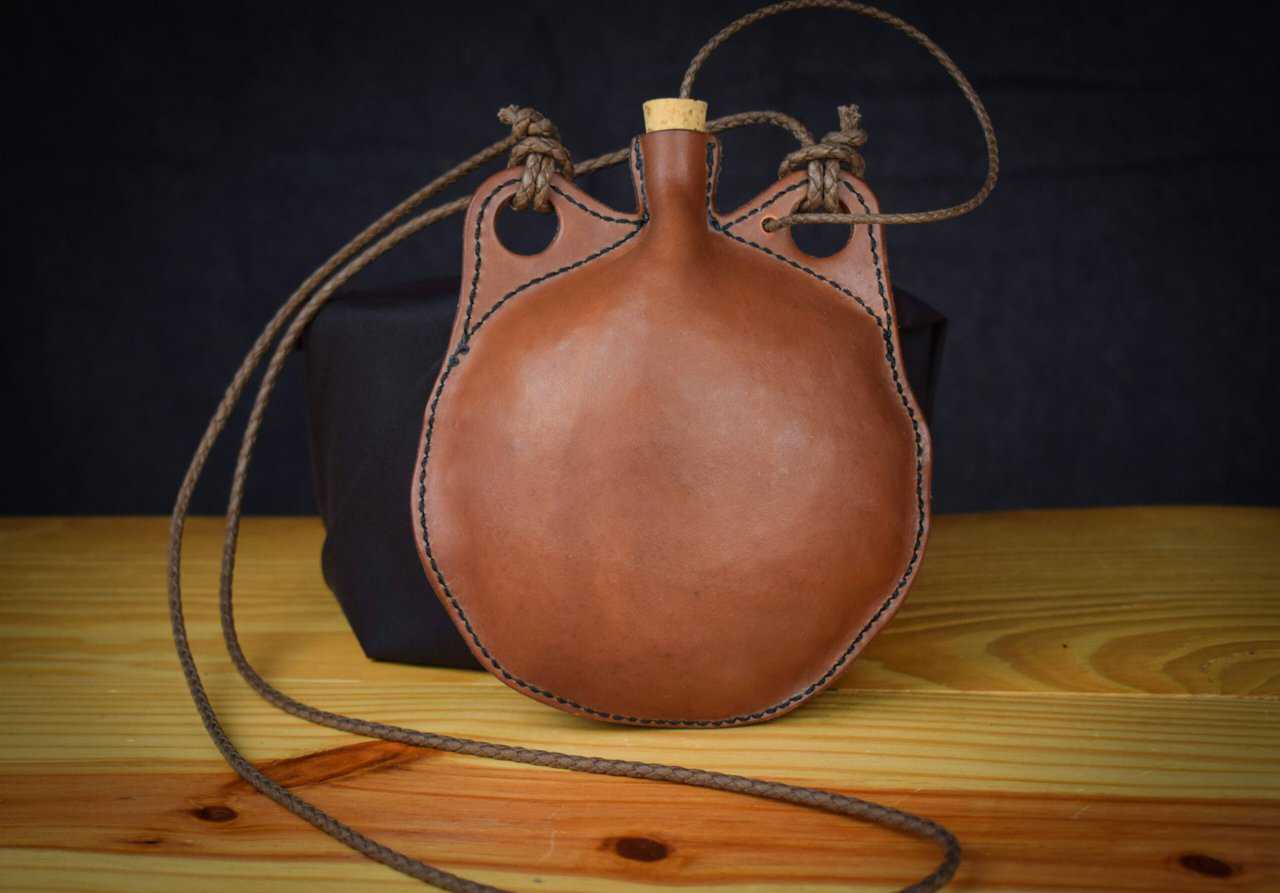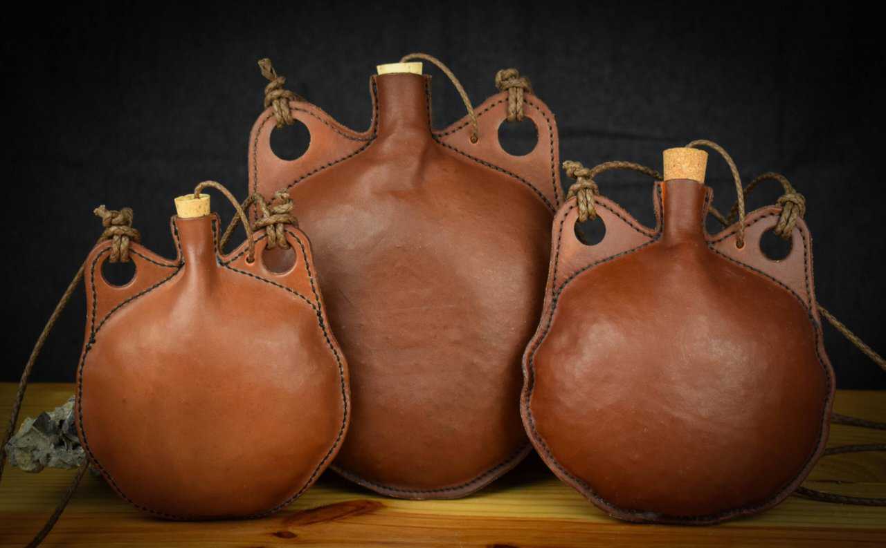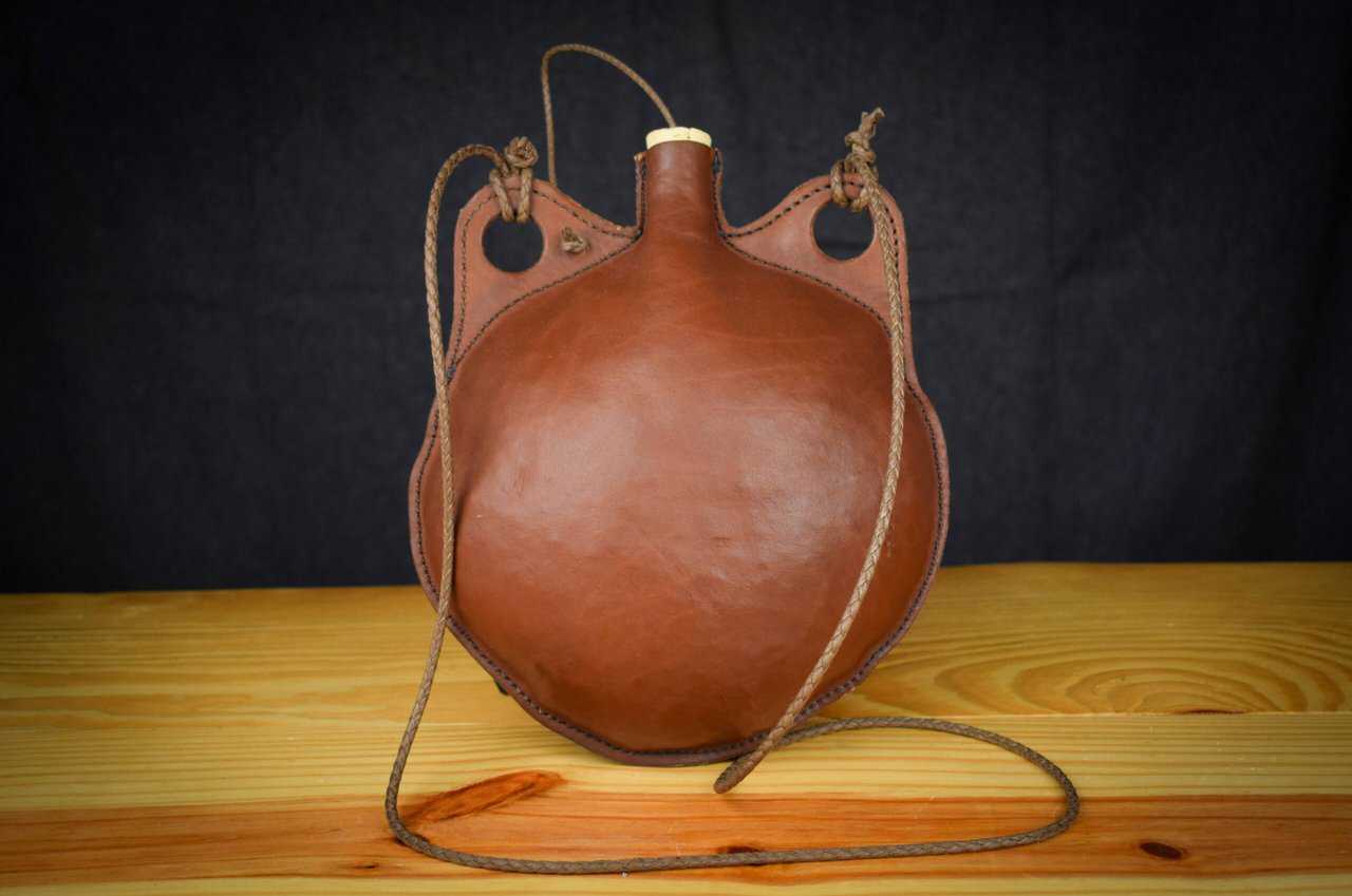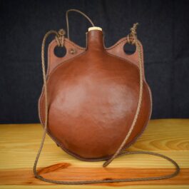 These are The round version of our functional leather costrel/water skin/ water bottles. For the more classic “bota” water skin shaped bottles check out our other listing here: https://grommetsleathercraft.com/product/handmade-leather-water-bottle-wineskin/
