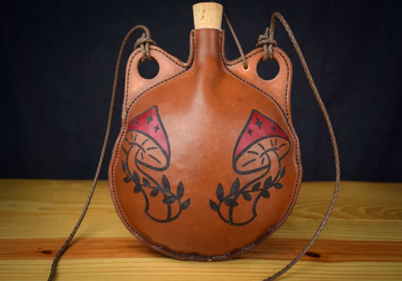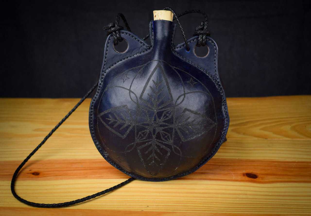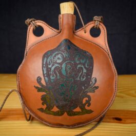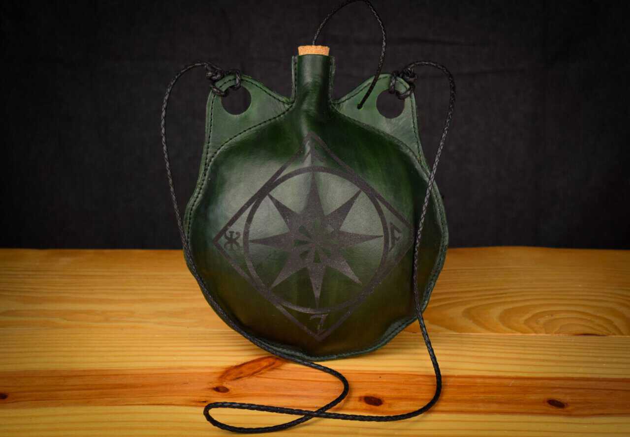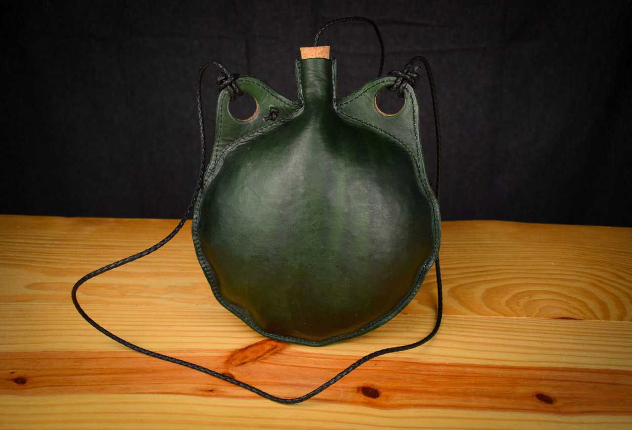 These are The round version of our functional leather costrel/water skin/ water bottles. For the more classic “bota” water skin shaped bottles check out our other listing here: https://grommetsleathercraft.com/product/handmade-leather-water-bottle-wineskin/
