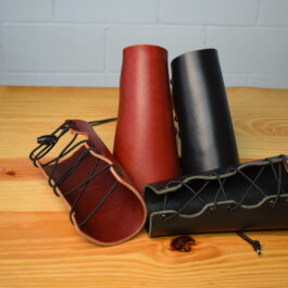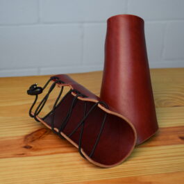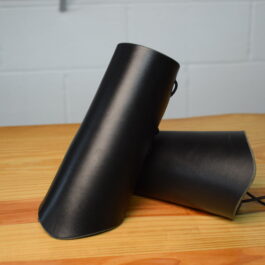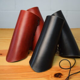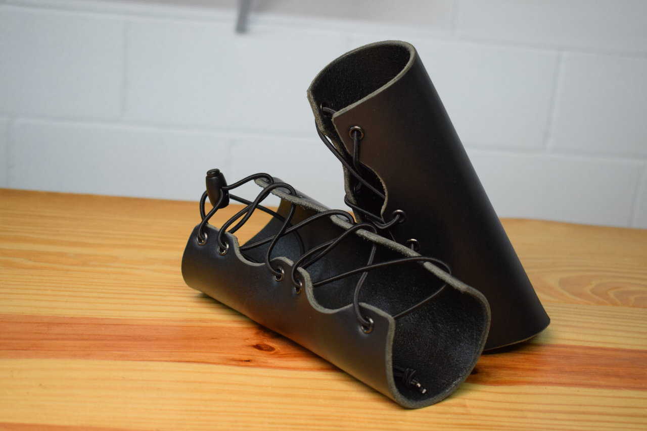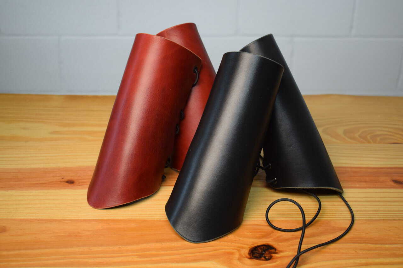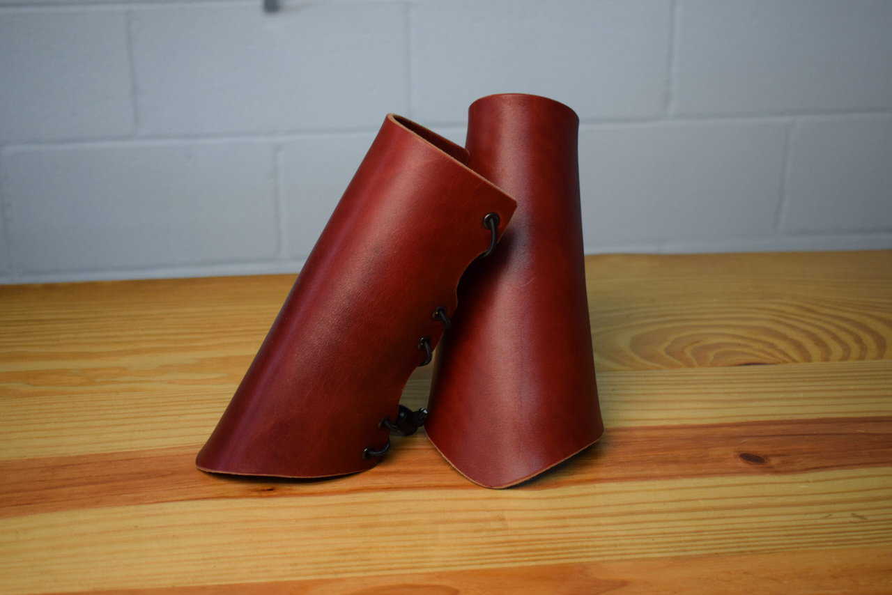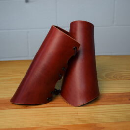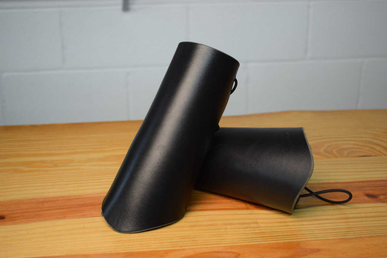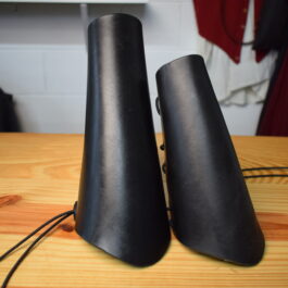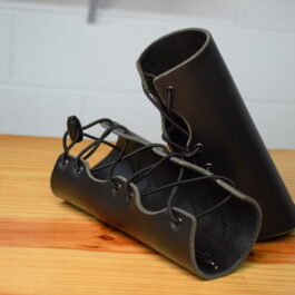 These are a pair of simple forearm guard made out of sturdy, wax hardened leather.