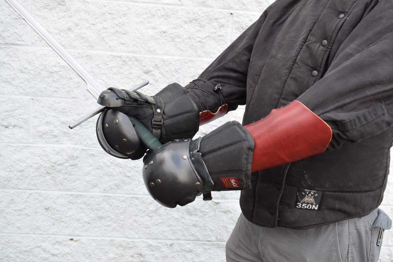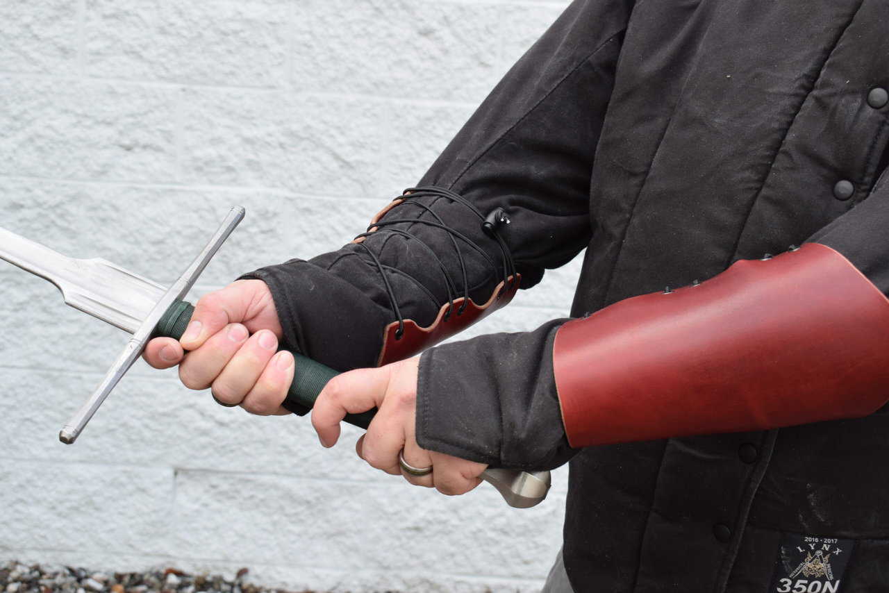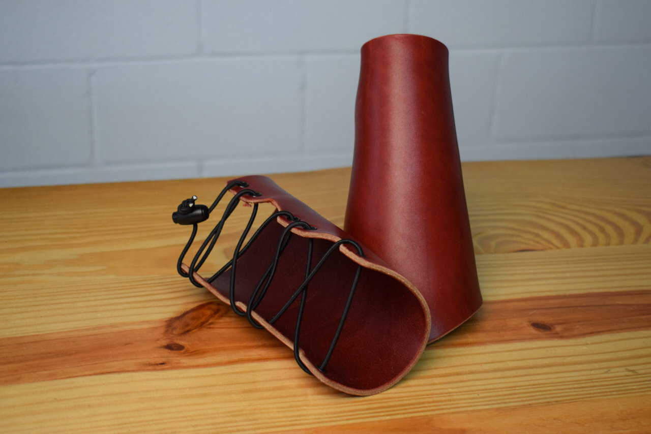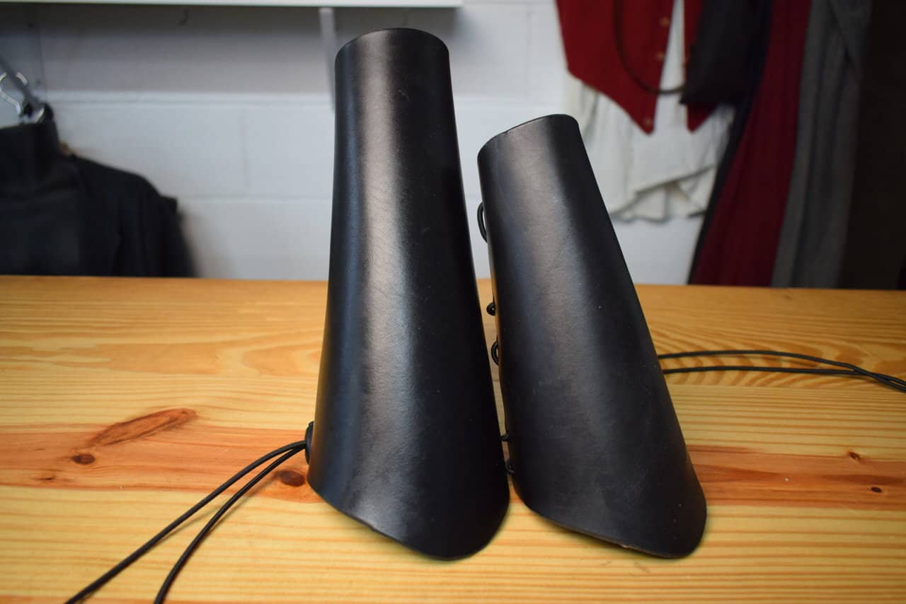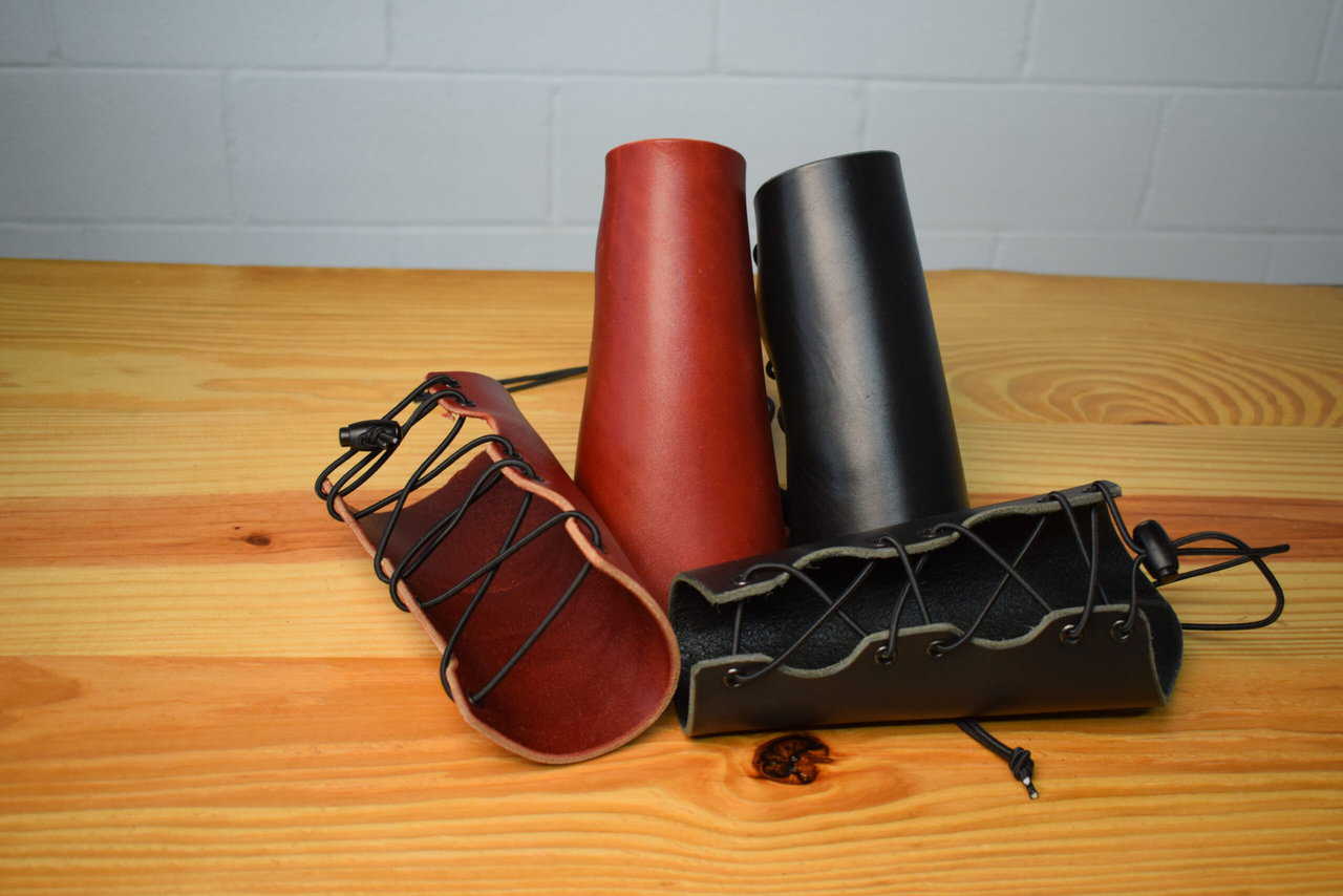 These are a pair of simple forearm guard made out of sturdy, wax hardened leather.