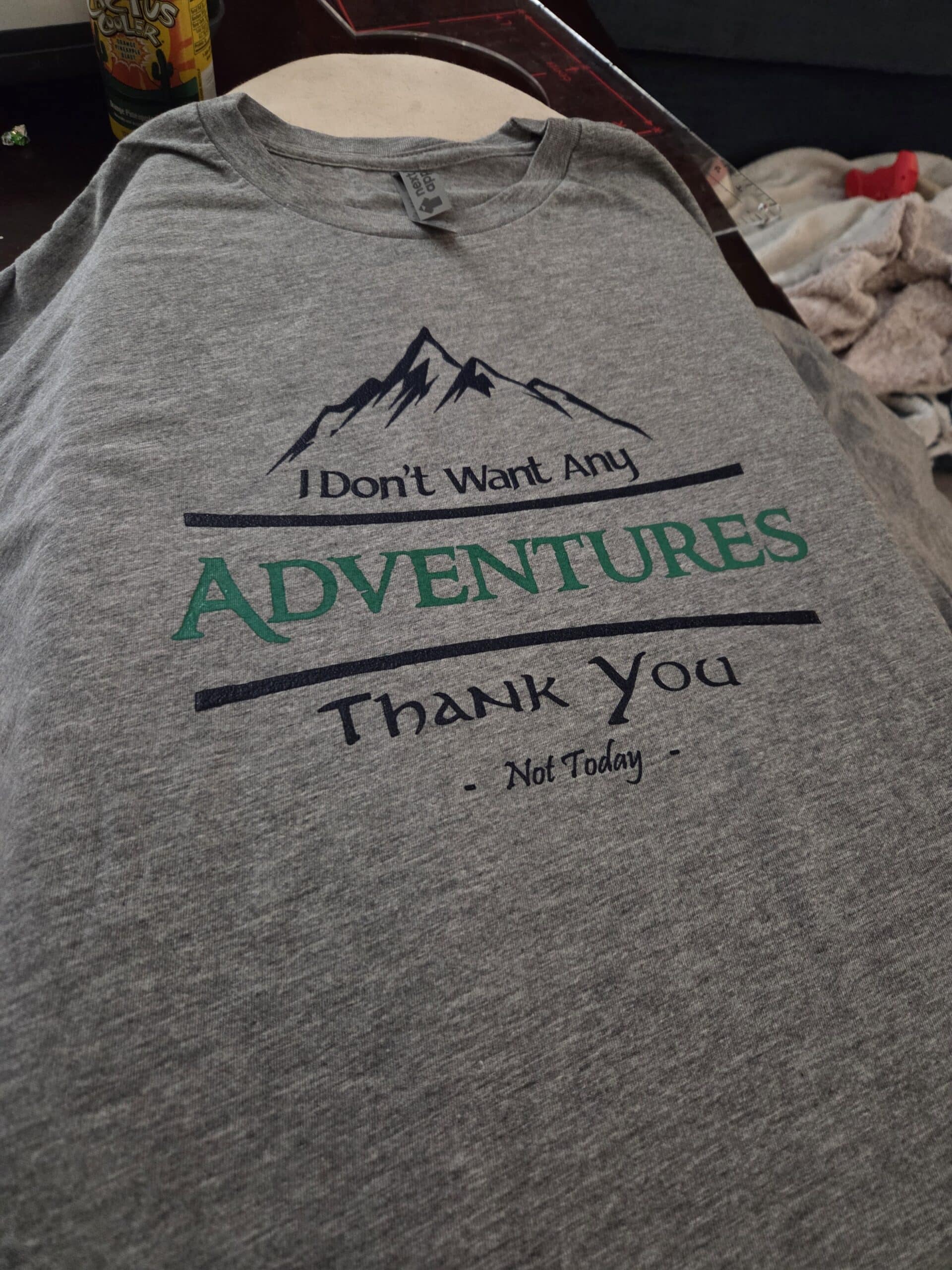 2 color halfling quote screen printed onto Heather gray Next Level Aparrel triblend t-shirt.