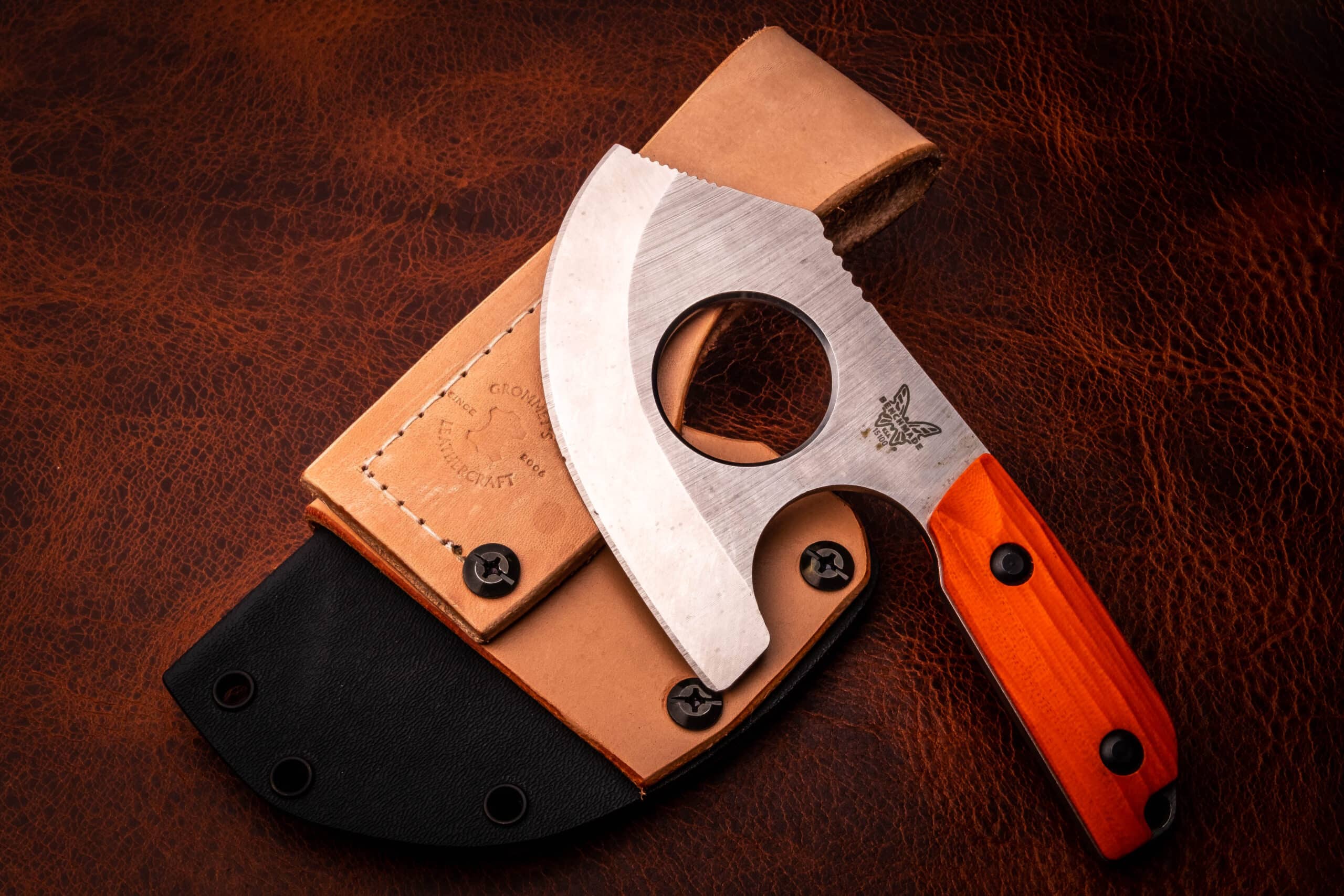 This is a heavy duty (0.80) kydex sheath for the Benchmade 15100-1 Nestucca Cleaver.