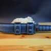 It is available in a variety of colors and can be ordered with either a leather or kydex belt loop, and each option can be ordered with a retention strap that snaps around the handle to keep the knife from bouncing around. There is a thumb groove to assist in drawing the knife and a drain hole in the bottom to prevent fluid buildup.