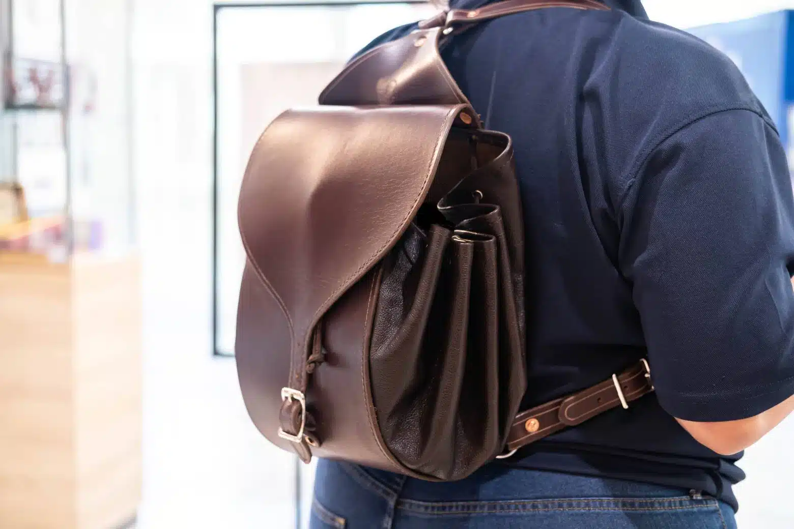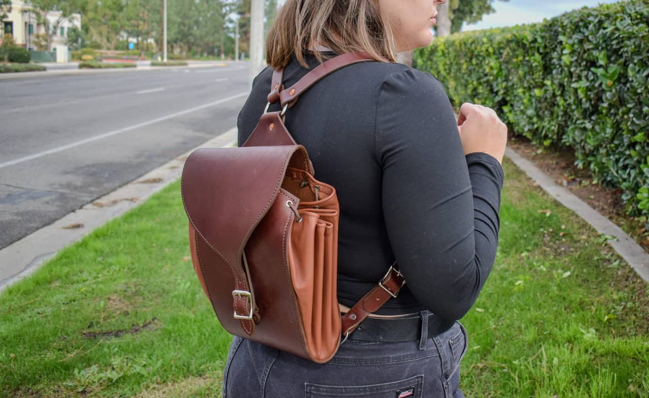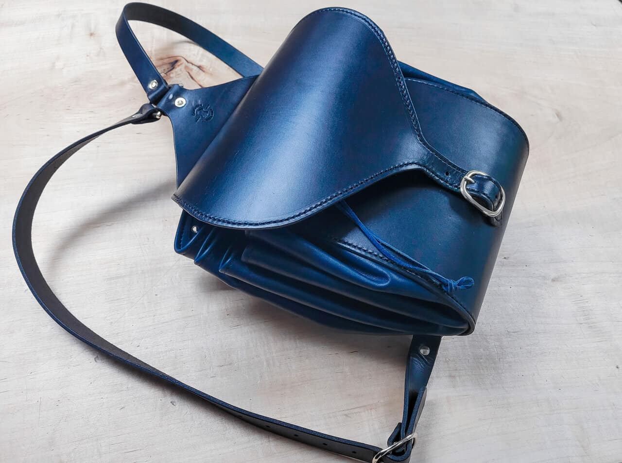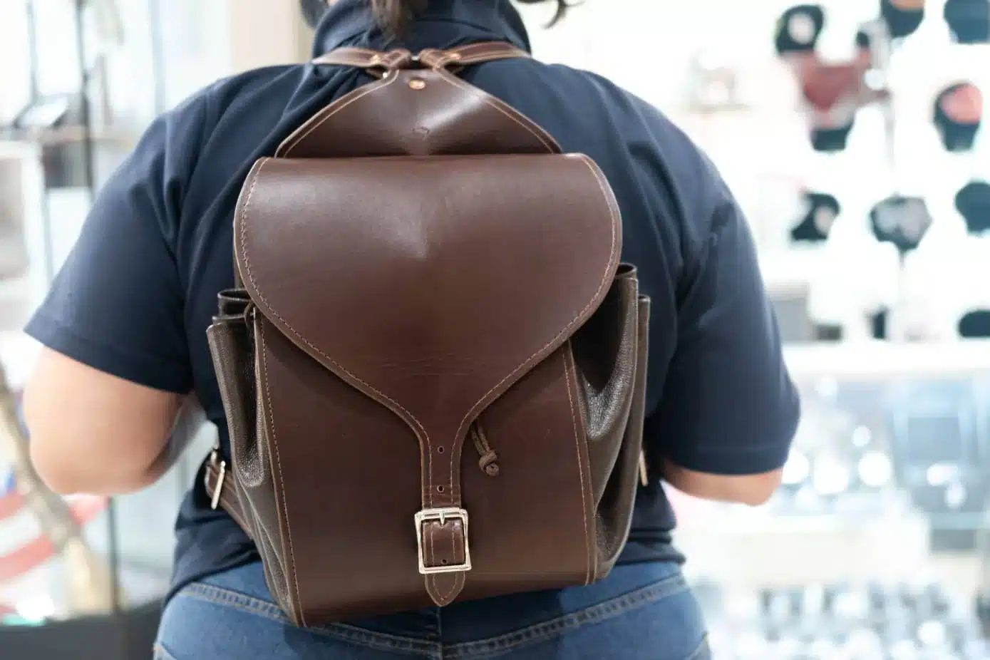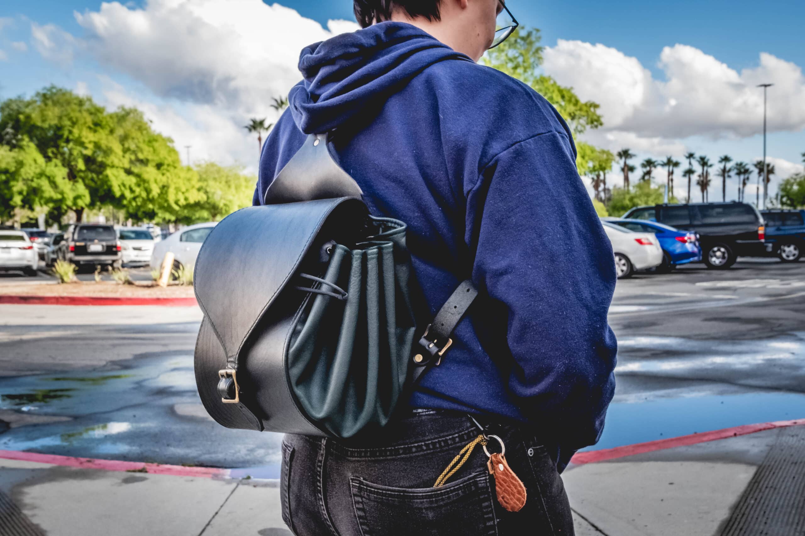 Each of these backpacks is made out of 8-10 ounce latigo cowhide for the main body, flap, and straps, with the bag portion made out of a more supple 3-4 ounce garment cowhide that cinches closed via a leather lace
