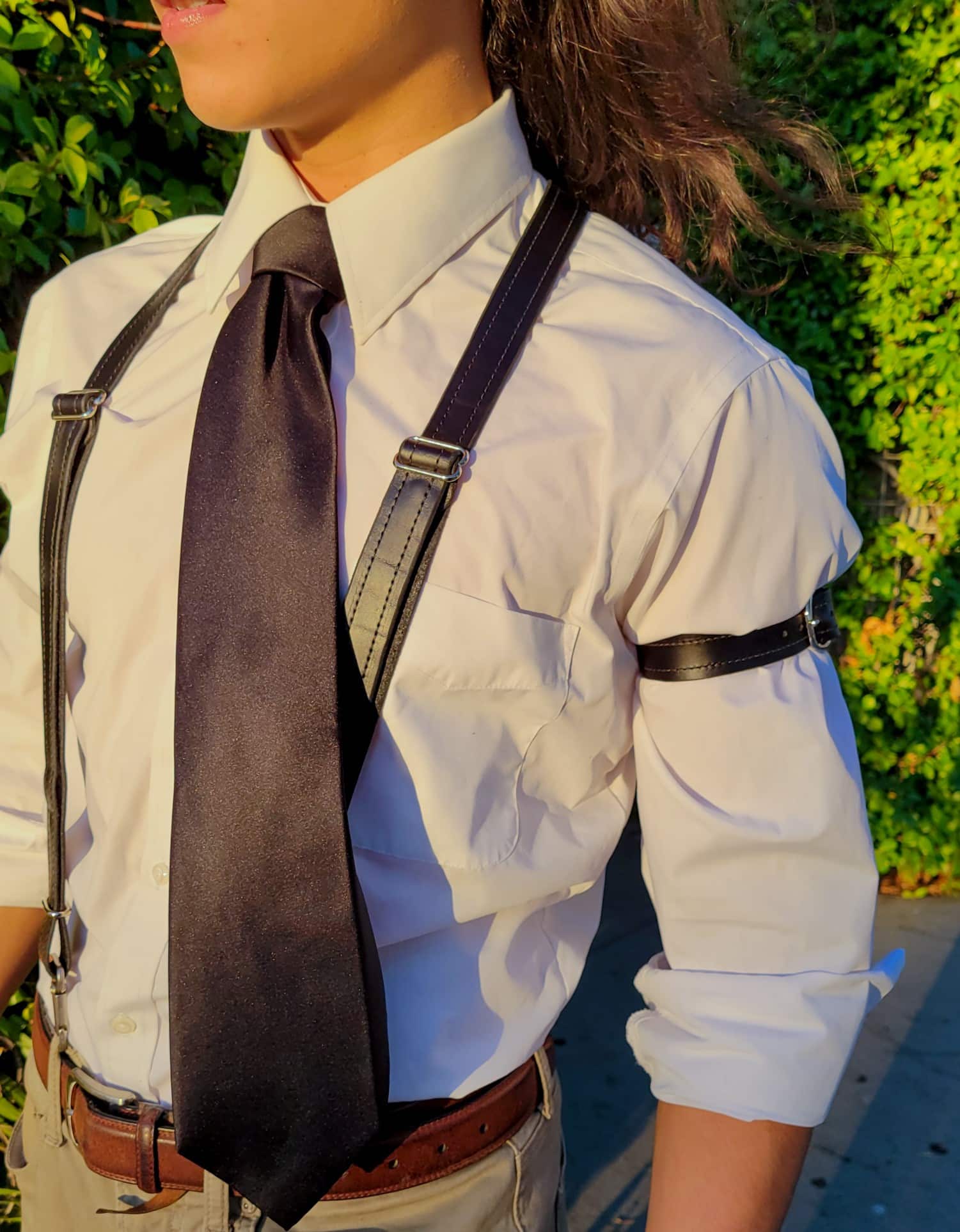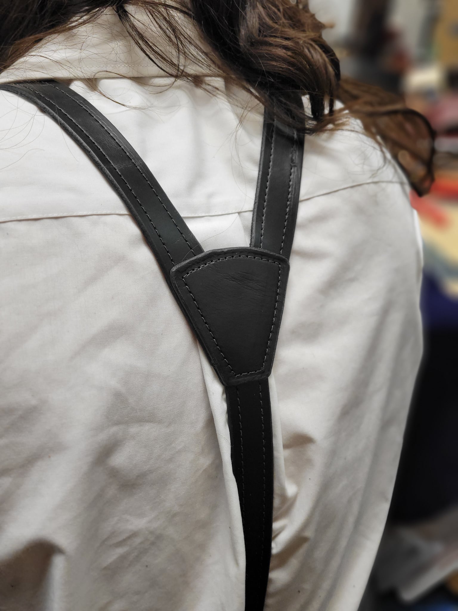 These are a set of leather suspenders, similar to the other styles we offer, but inclined more towards formal wear.