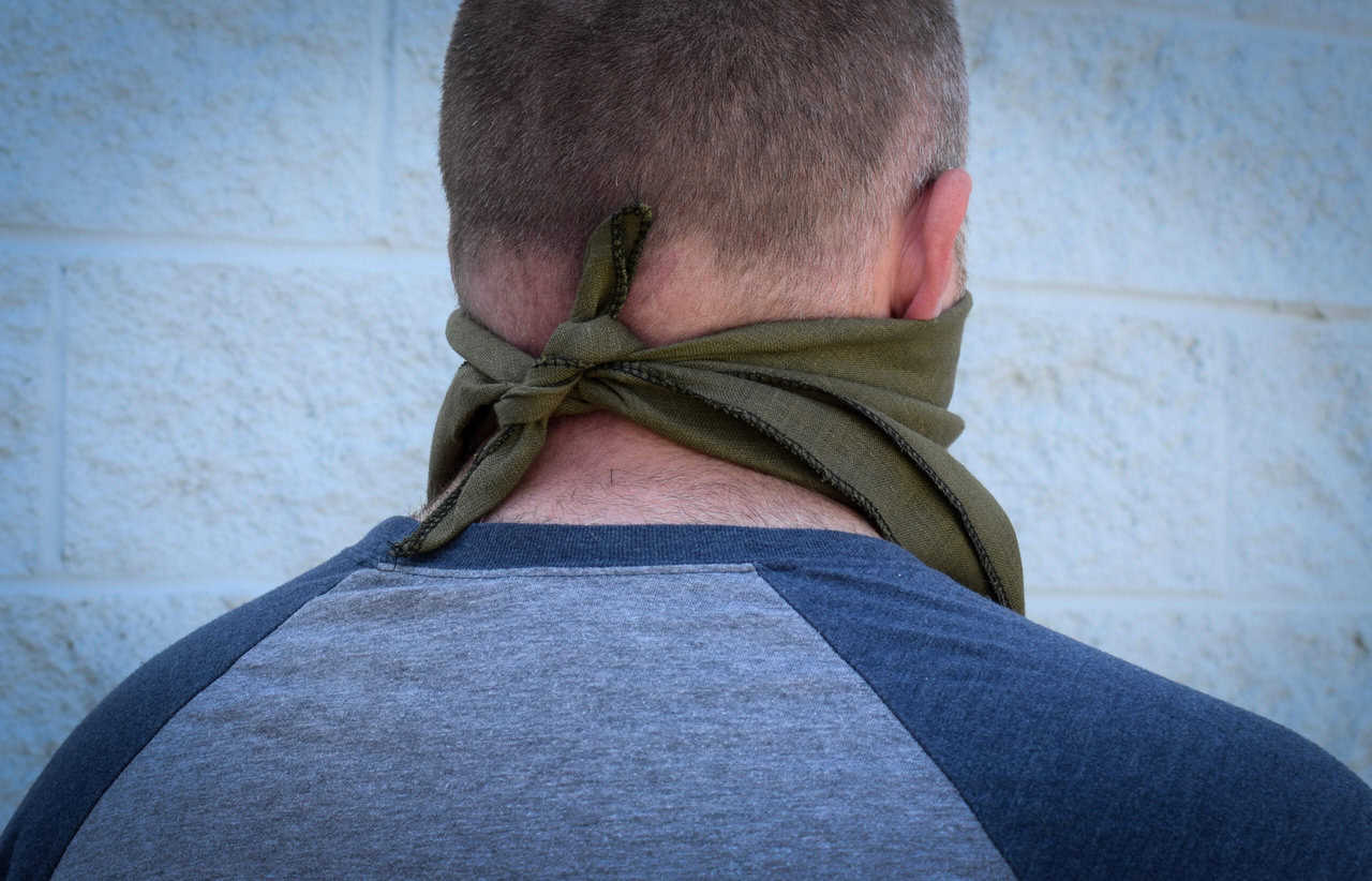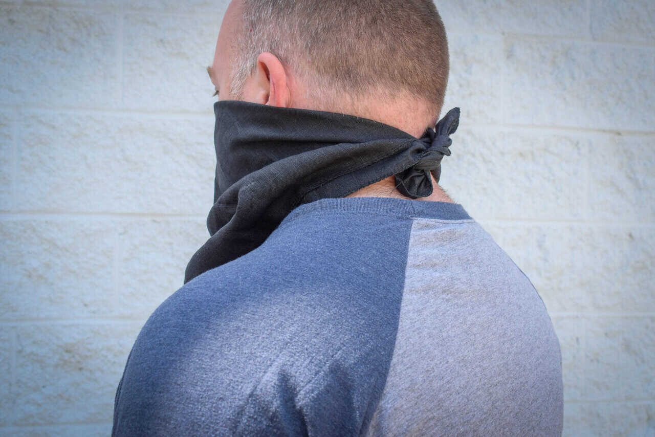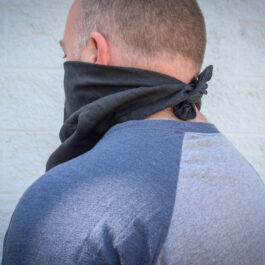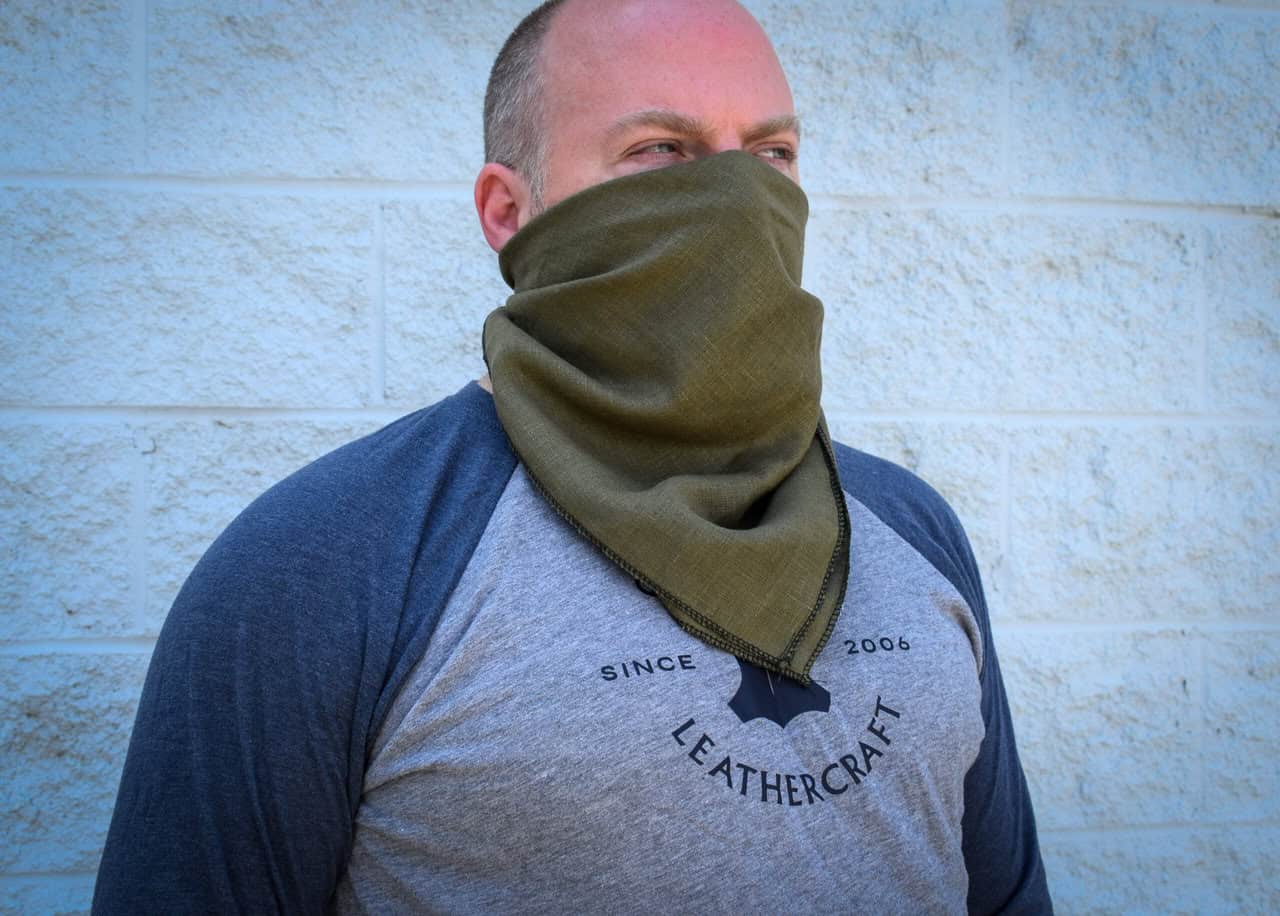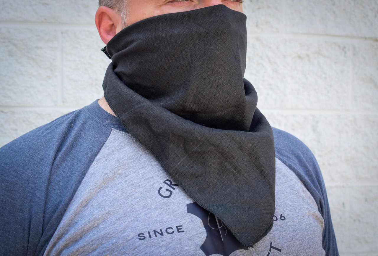 This is a simple linen bandana, perfect for wrapping around your face to protect from the elements, protect your identity, or just look cool.