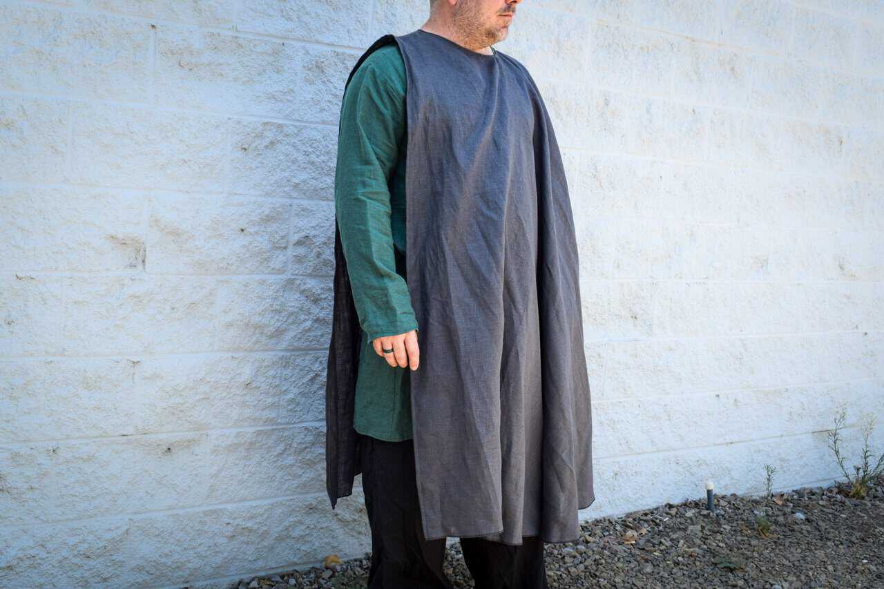 Each cloak is a half circle, with a closed neck and side opening allowing your dominant hand freedom to perform tasks.