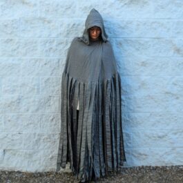 Hidden among the mist and ash and worn by the those with the power to burn metals. This linen cloak with hand cut linen strips will provide the best comfort and movement one born for the mists could ask for. No thefts crew is complete without one… or two. We can provide clasps of wood if you are worried of other allomancer attacks or ask for metal if you want to trick those who might be following you.