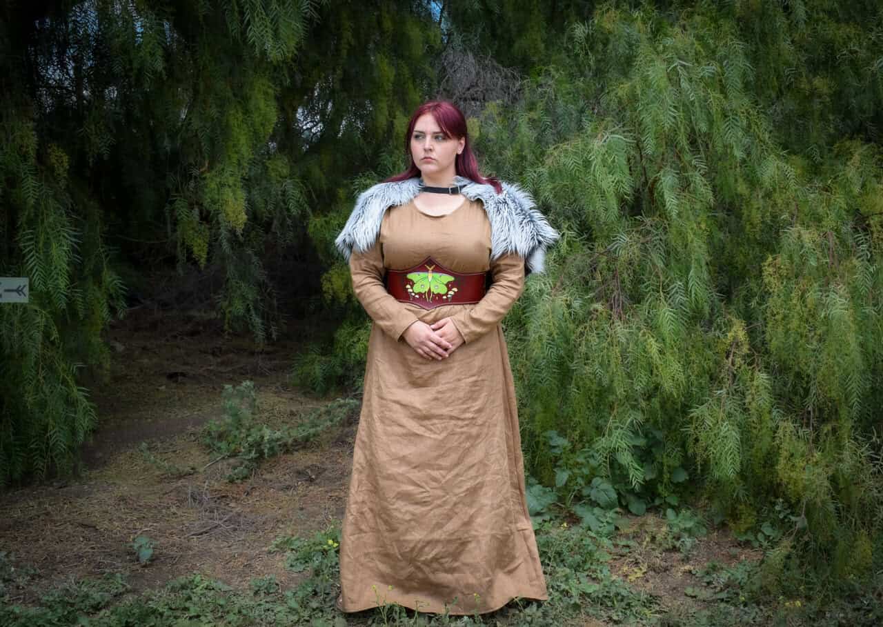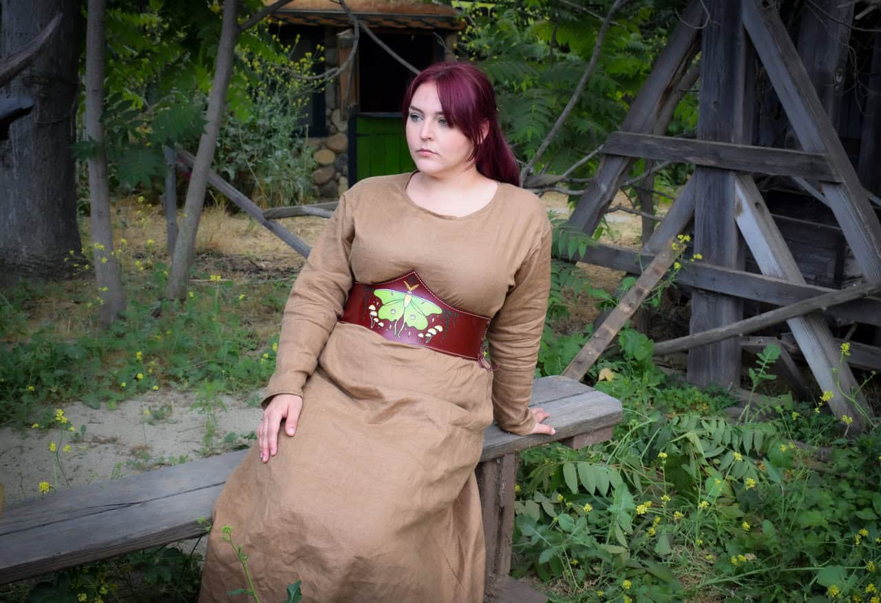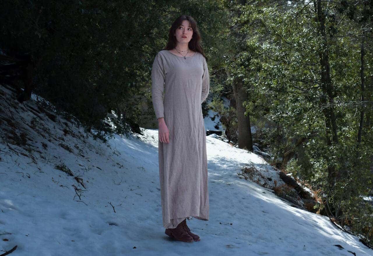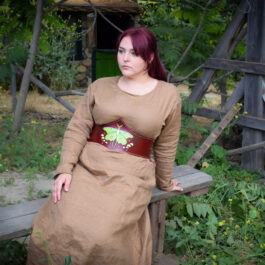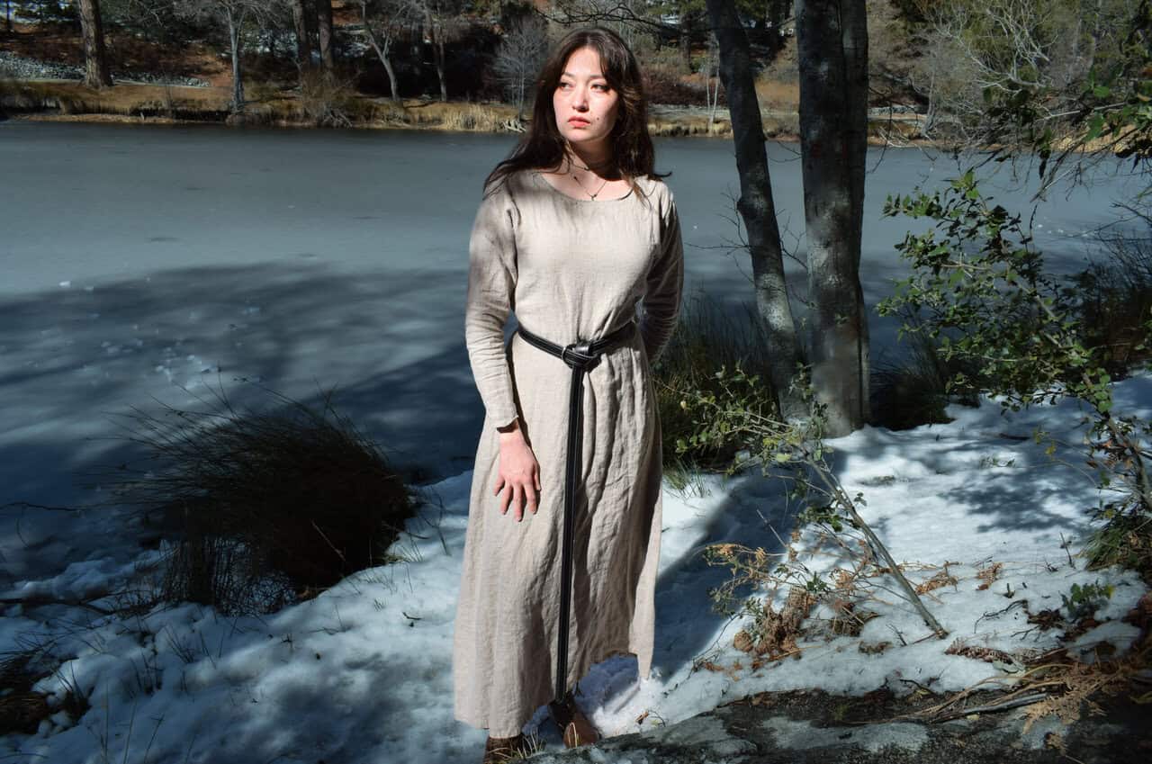 Similar to our linen shirt and long tunic, these chemise style dresses are sized to fit over the bust and be cinched at the waist with a belt, or layered with a bodice, apron, armor, etc.