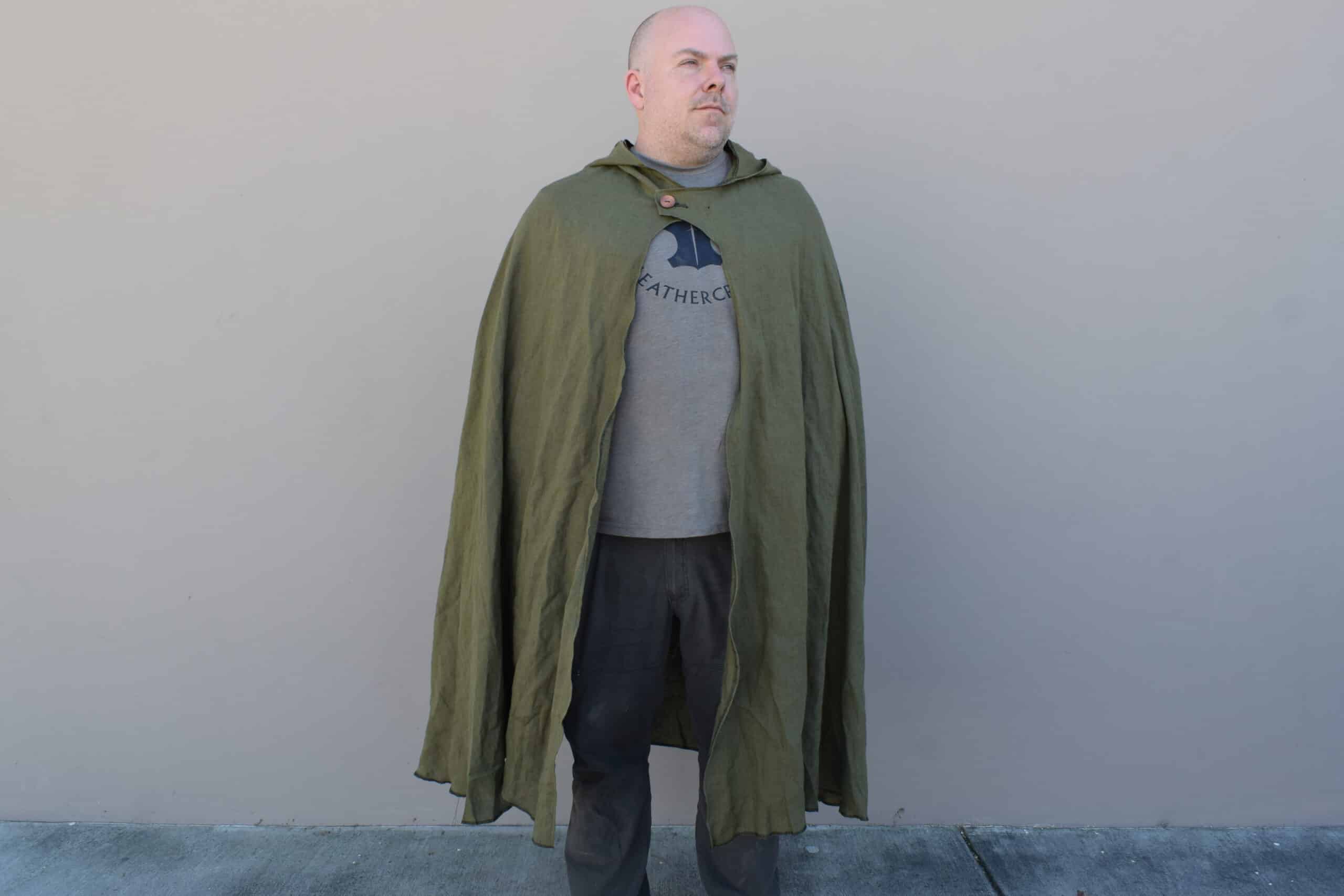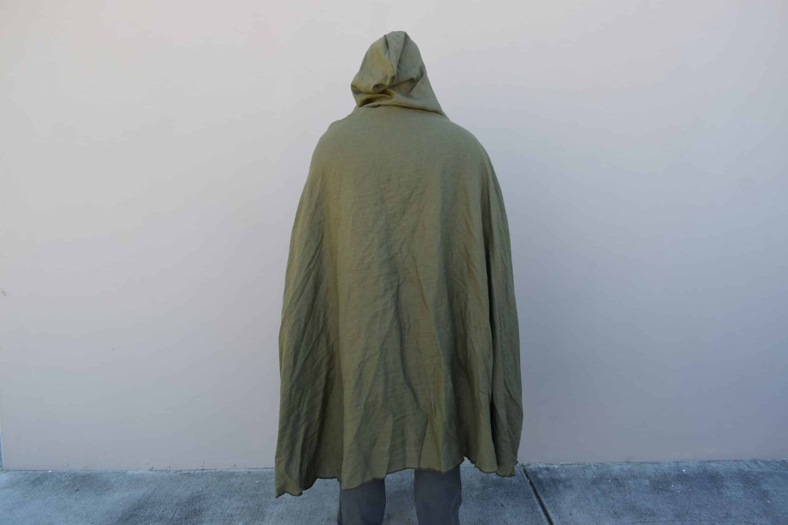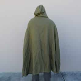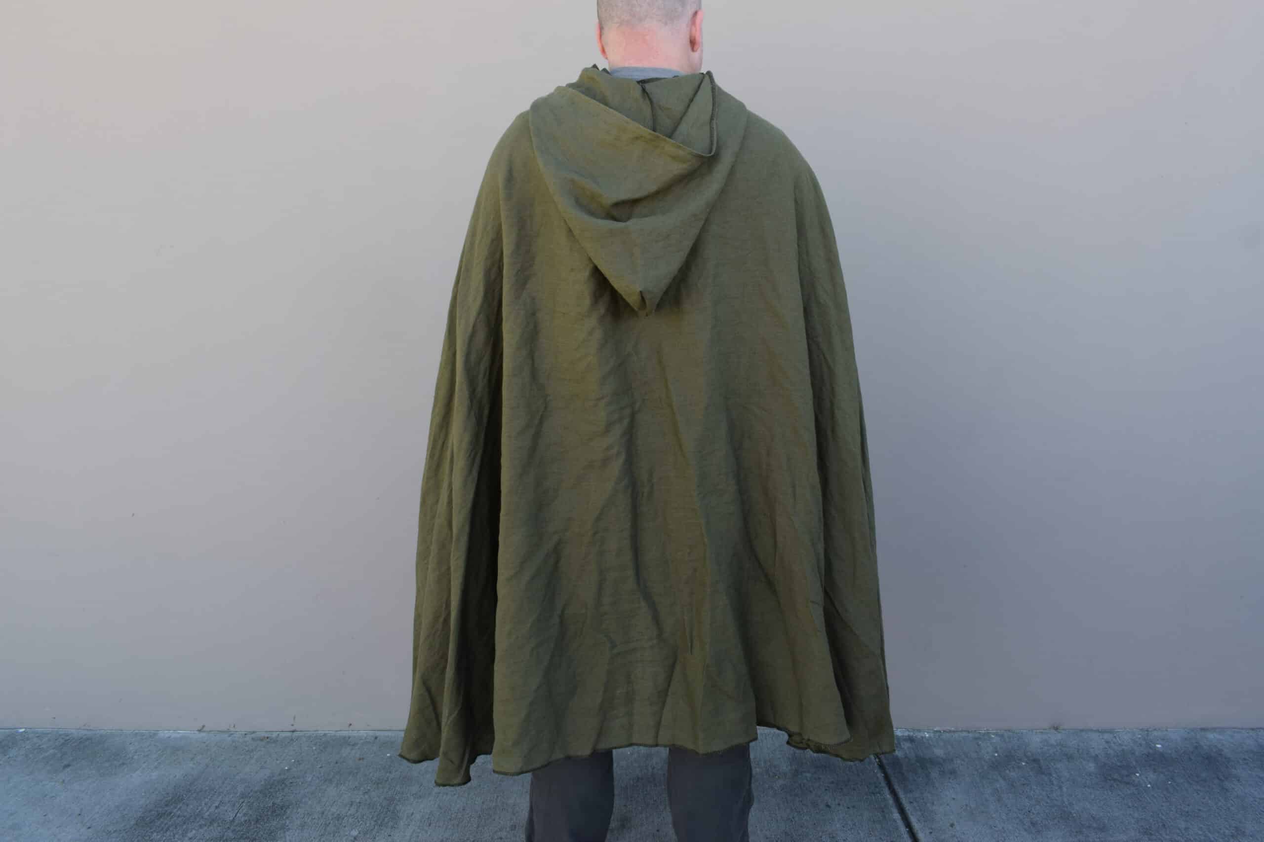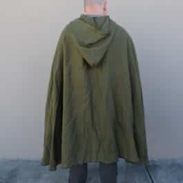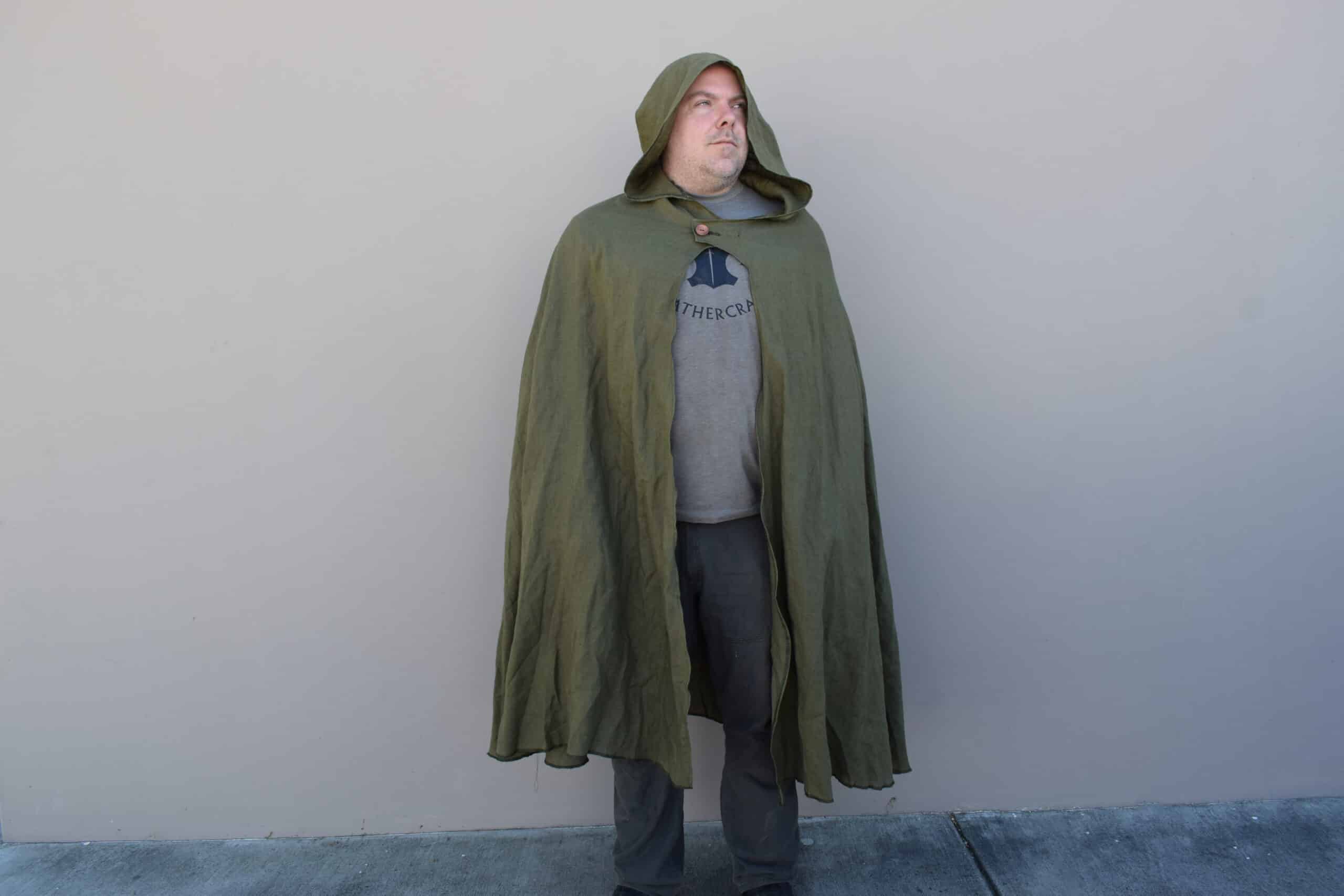 These are simple hooded cloaks made out of a medium weight linen. Similar in style to our linen hooded cloaks, but with a larger hood, shorter length, and overlapping button closure, making for a much more cozy cloak than the standard, perfect for enjoying a simple life.