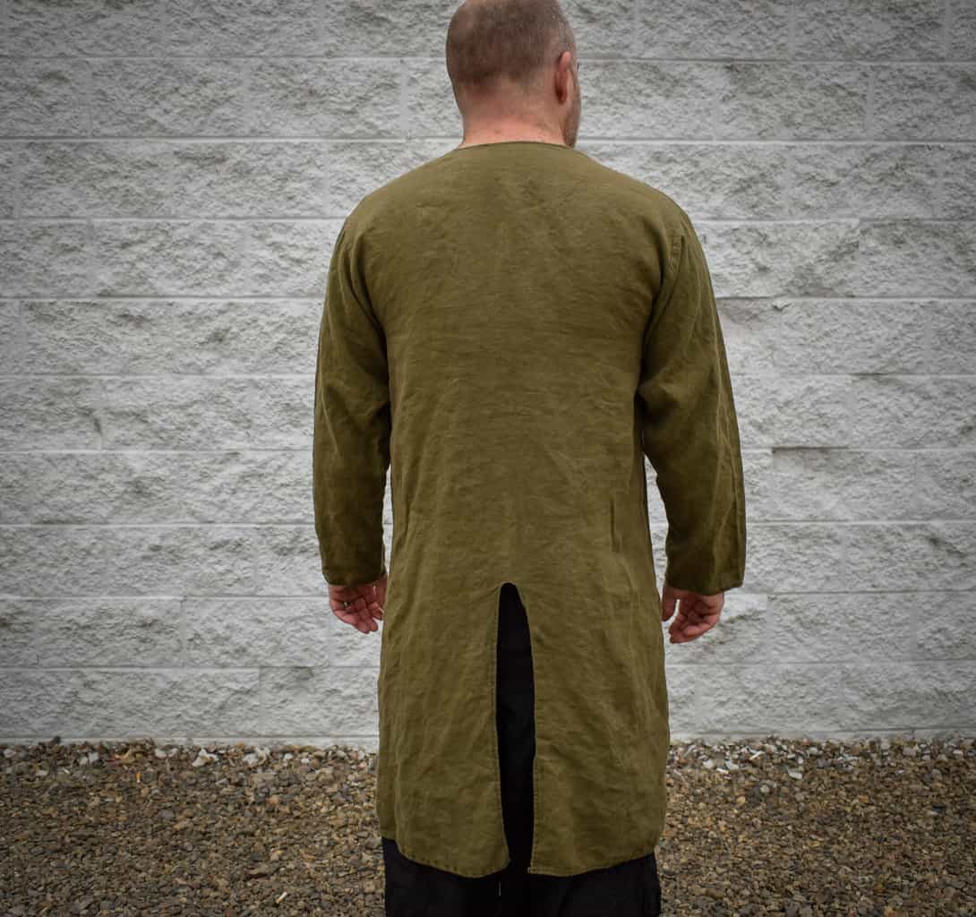 Similar to our linen ranger shirt, this tunic is much longer and features riding slits in the front and back.