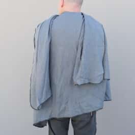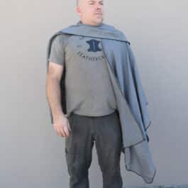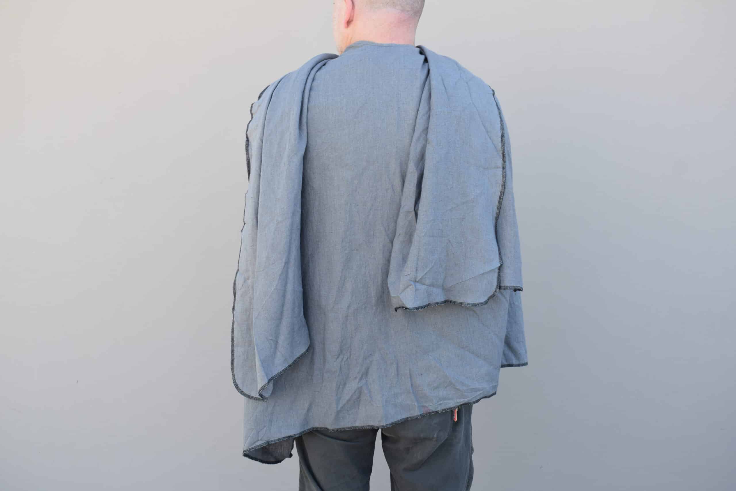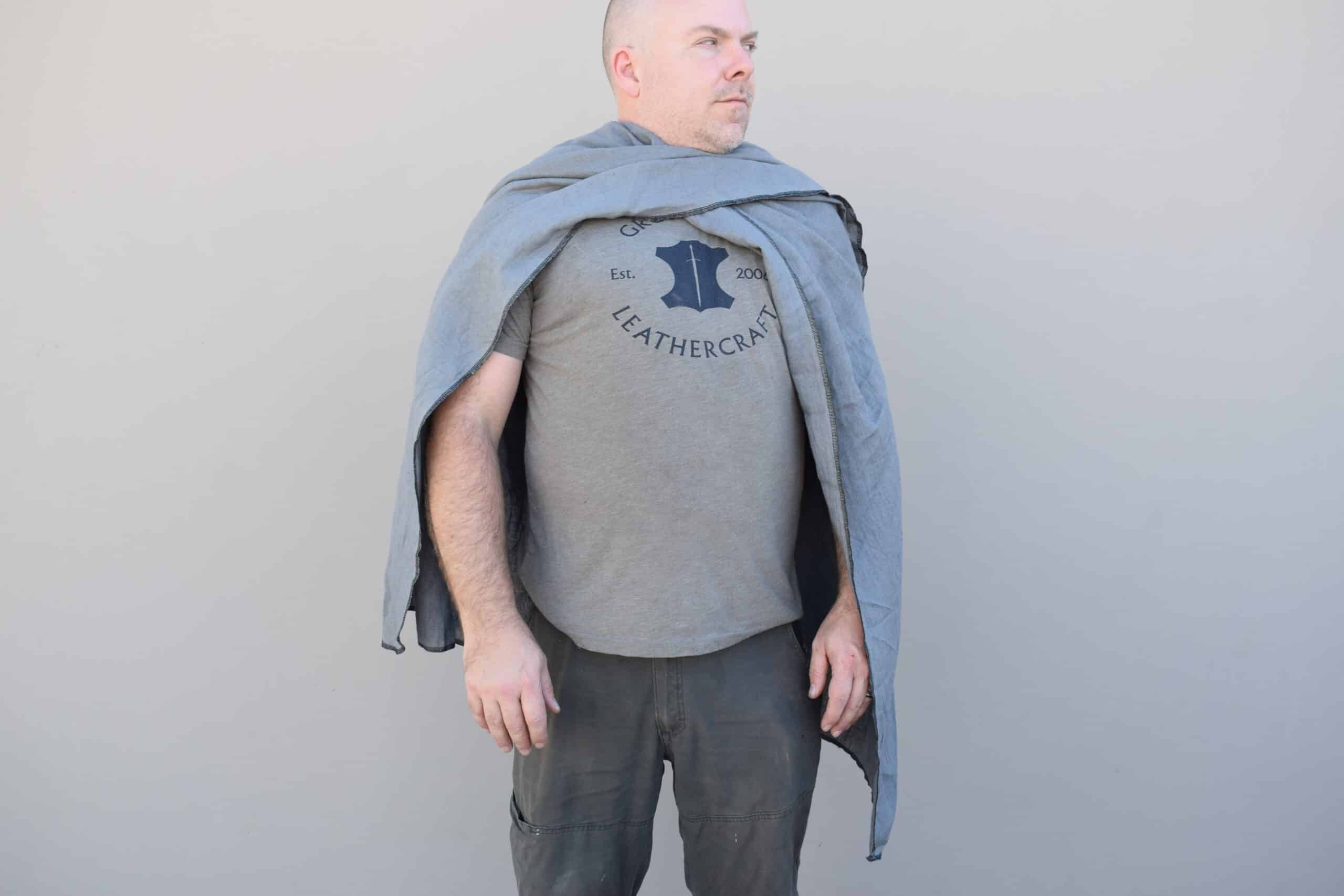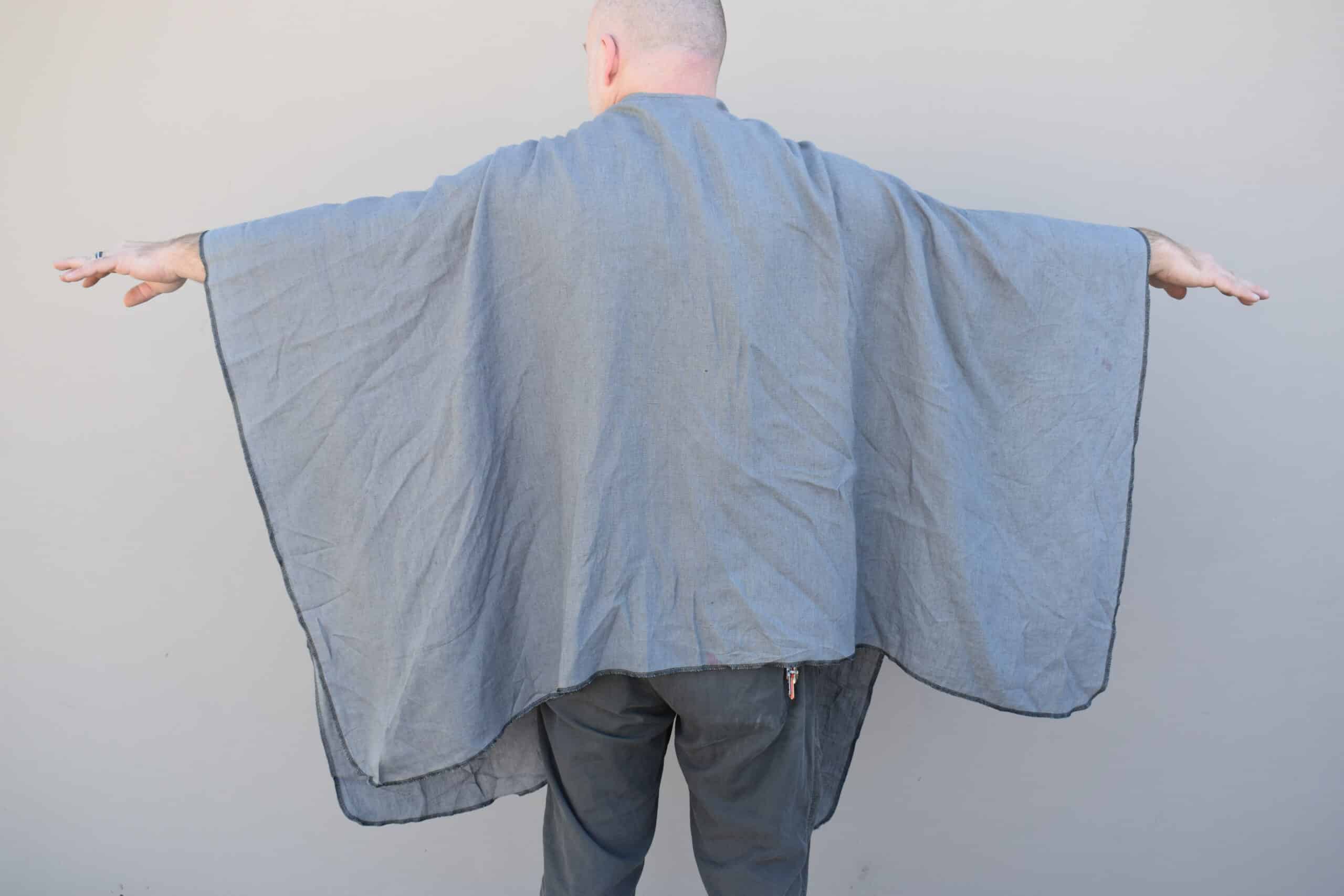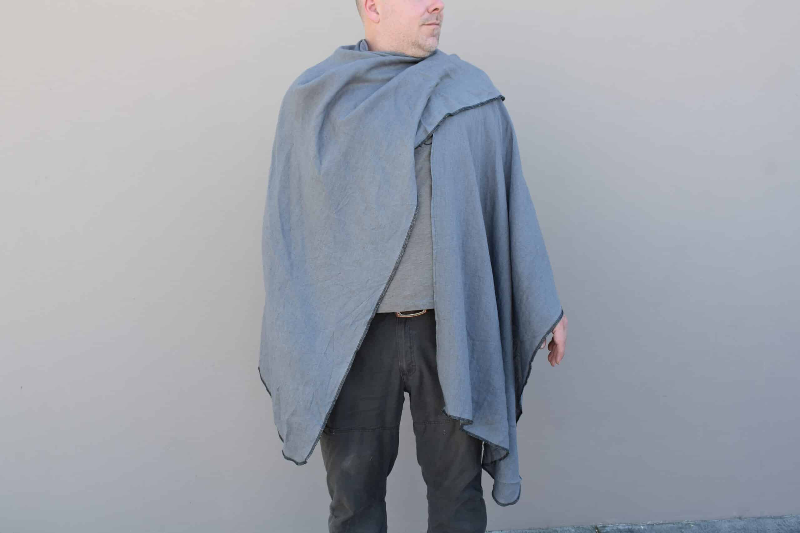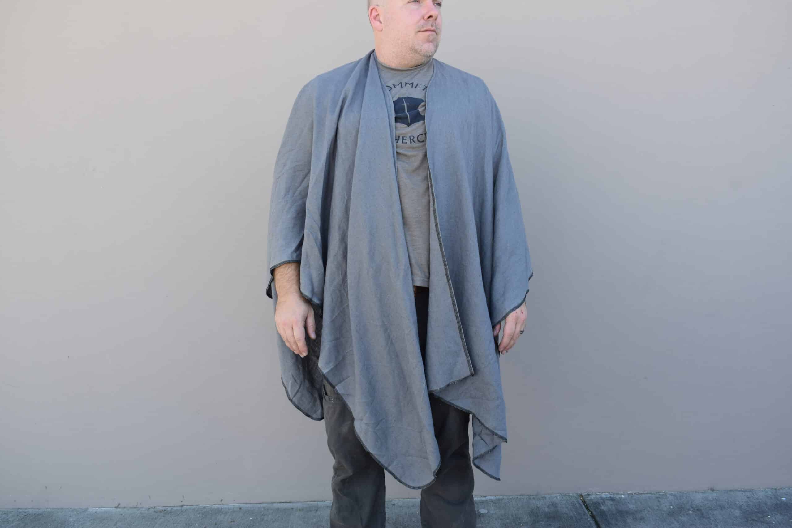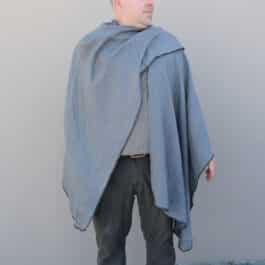 Each cloak is 36″ long in the front and back. As shown in the photos, they are an extremely versatile cloak that can be worn a number of different ways.